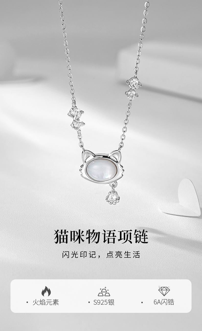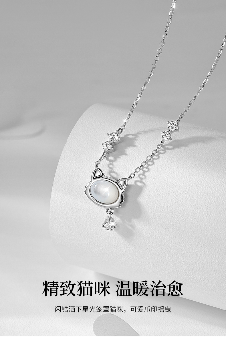 卡蒂罗/KADER 猫咪物语项链 俏皮可爱少女精致小猫闪钻镶嵌轻奢原创设计可调节锁骨链#好运 日常百搭简约百搭