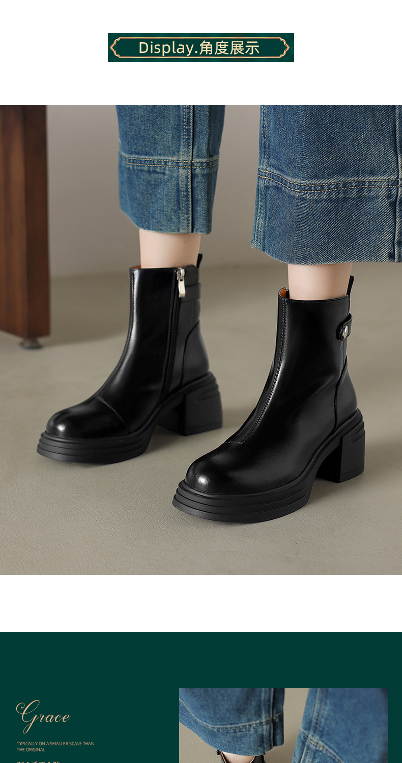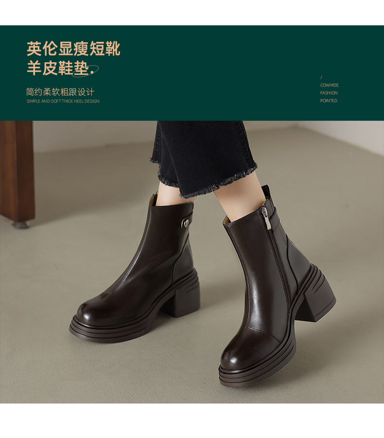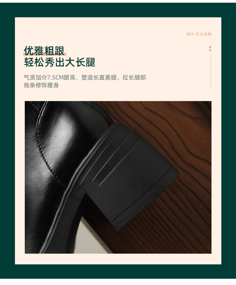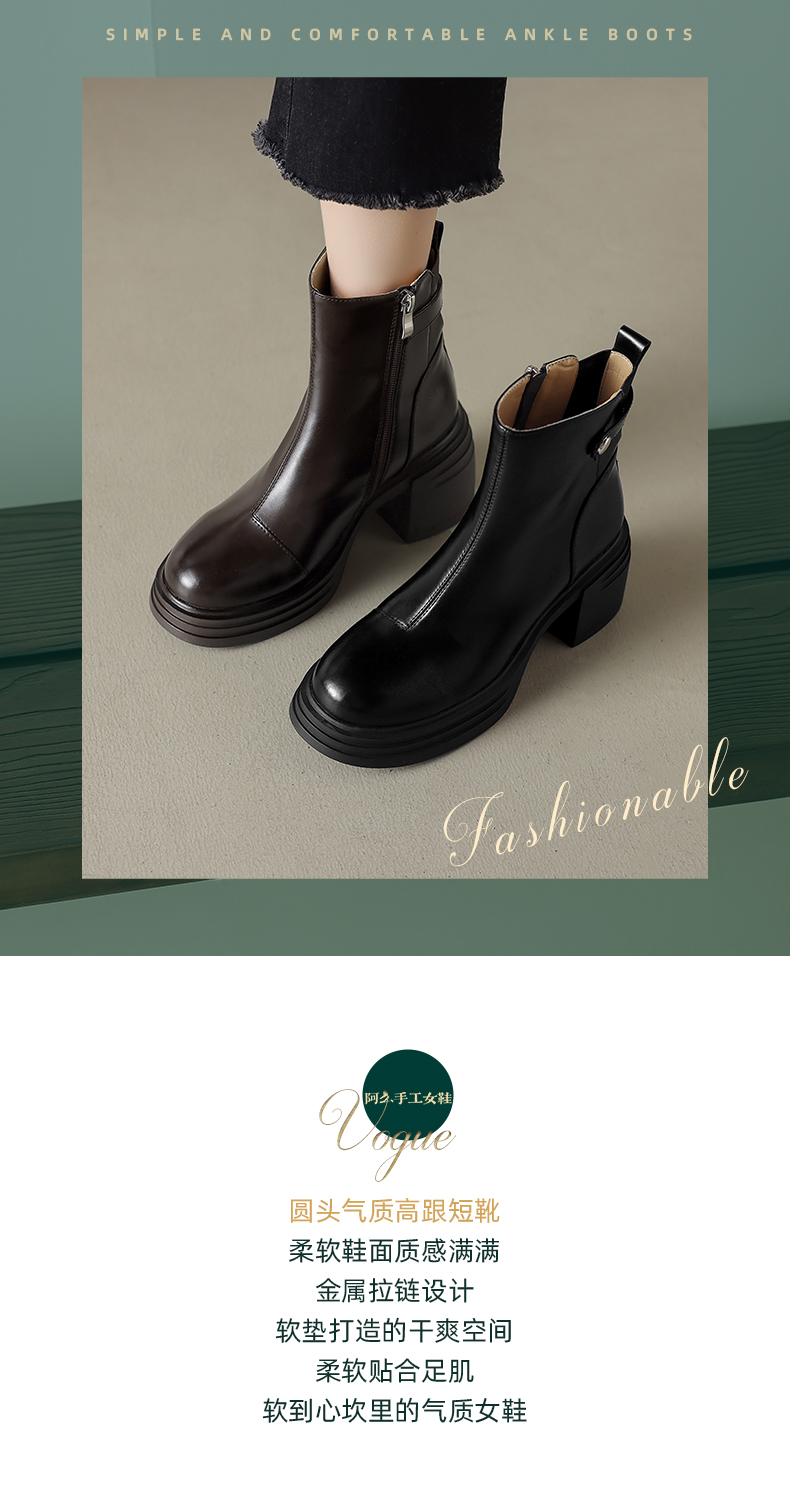 阿么手工女鞋新款小个子高跟真皮短靴2025新款纯色英伦单靴7.5CM