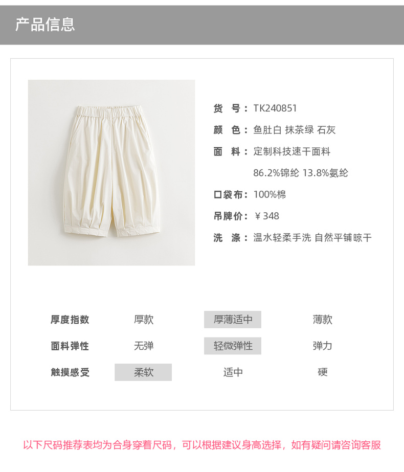 【马克珍妮 芦芙】2024年夏装女童吸湿速干宽松七分灯笼裤240851