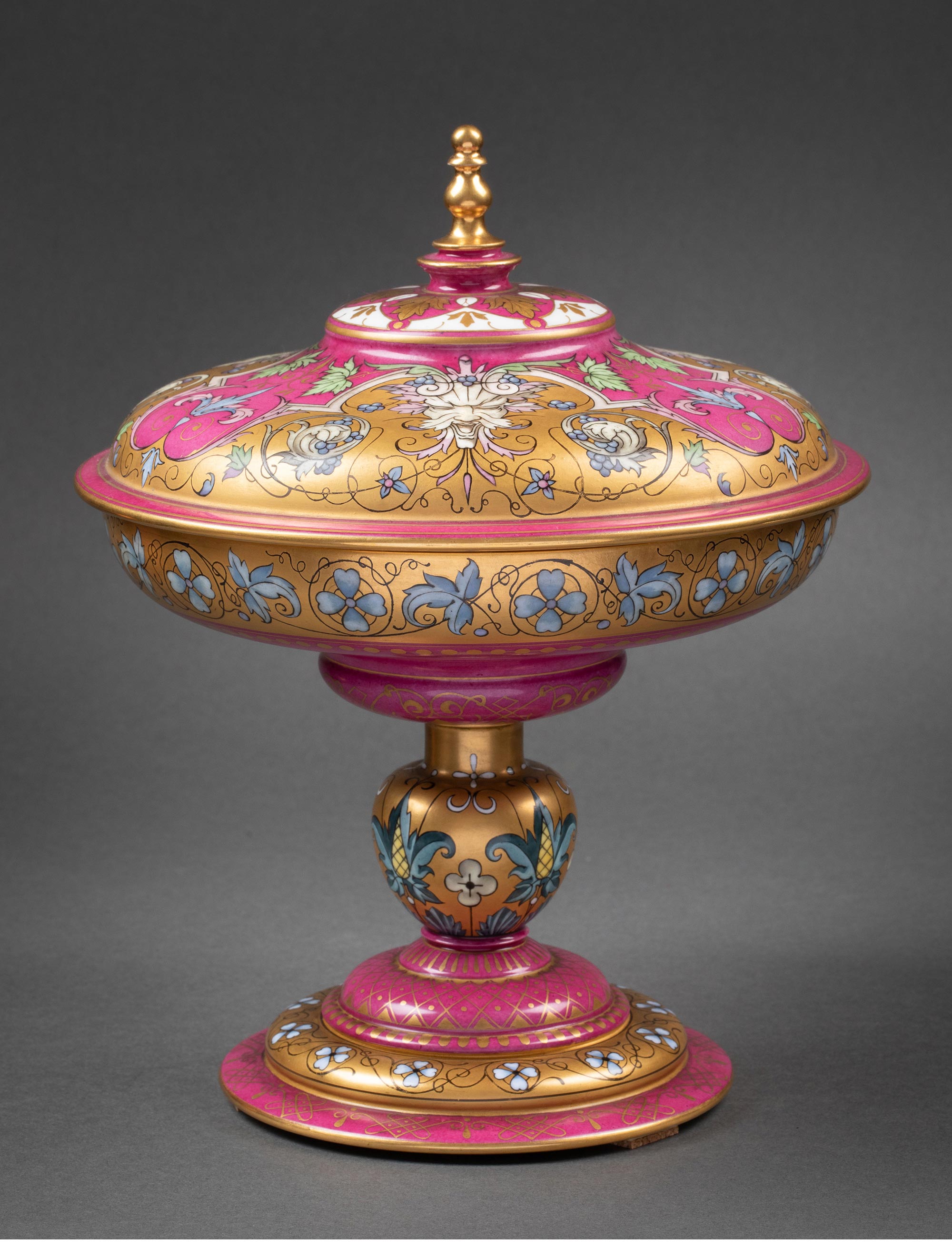 1851-1861年代法国御窑出品新文艺复兴风格手绘描金怪面卷叶主题Coupe Henri II器形带盖樽
