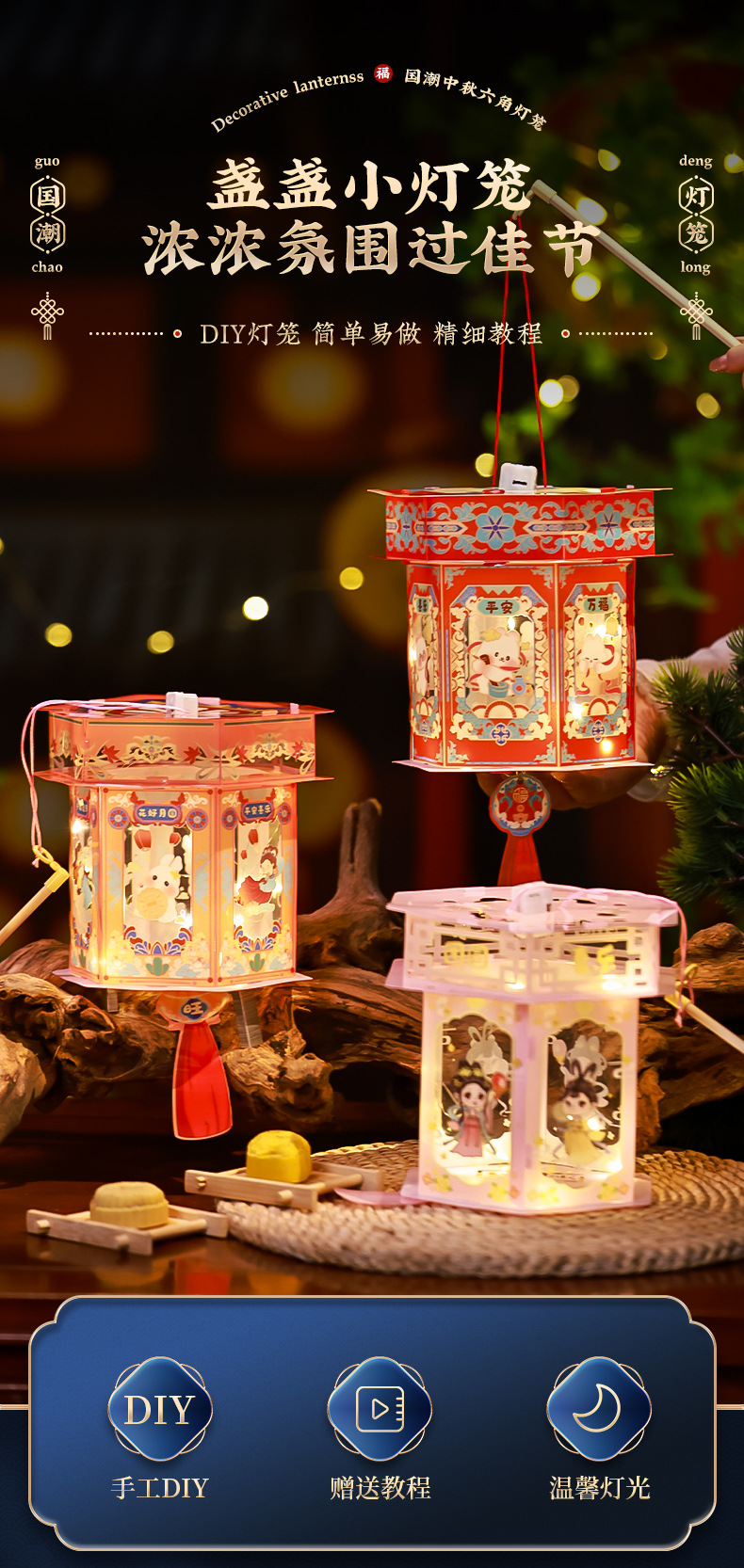 【19.9元2个!超划算发光投影花灯】儿童手提花灯挂饰 手工DIY古风宫灯 新年花灯