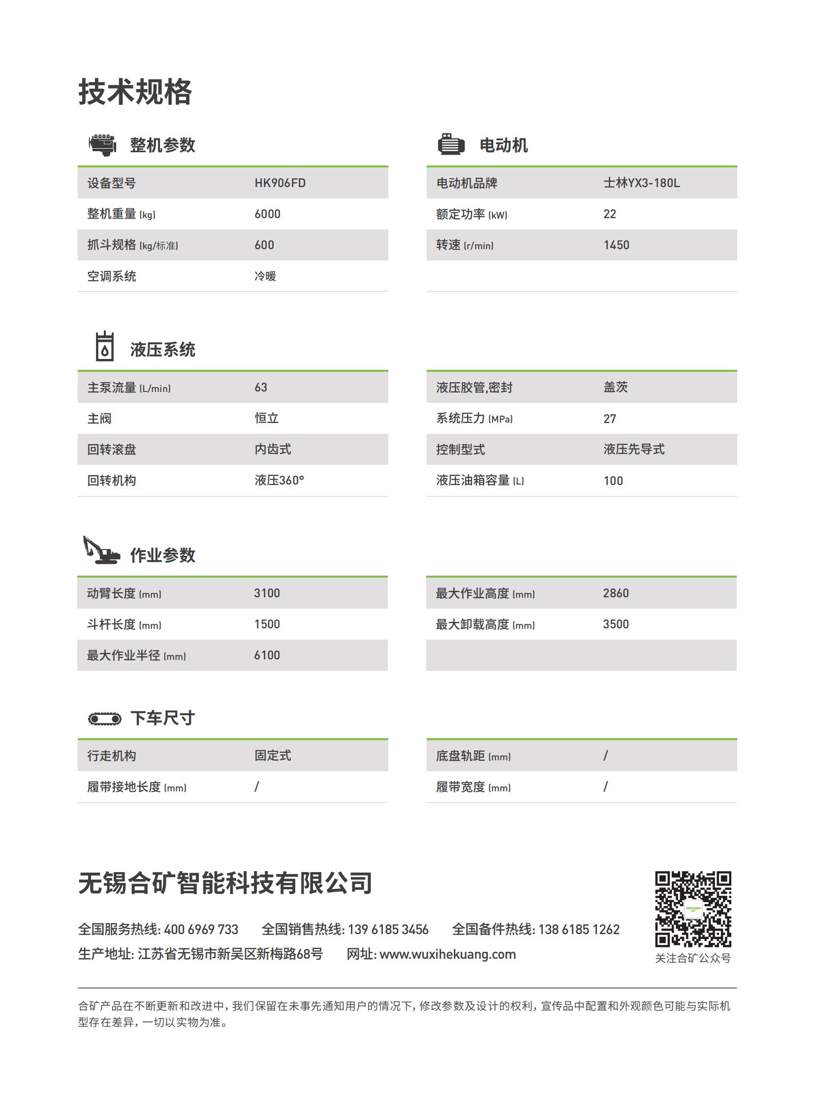 HK906FD合矿抓料机 | 固定式型纯电作业