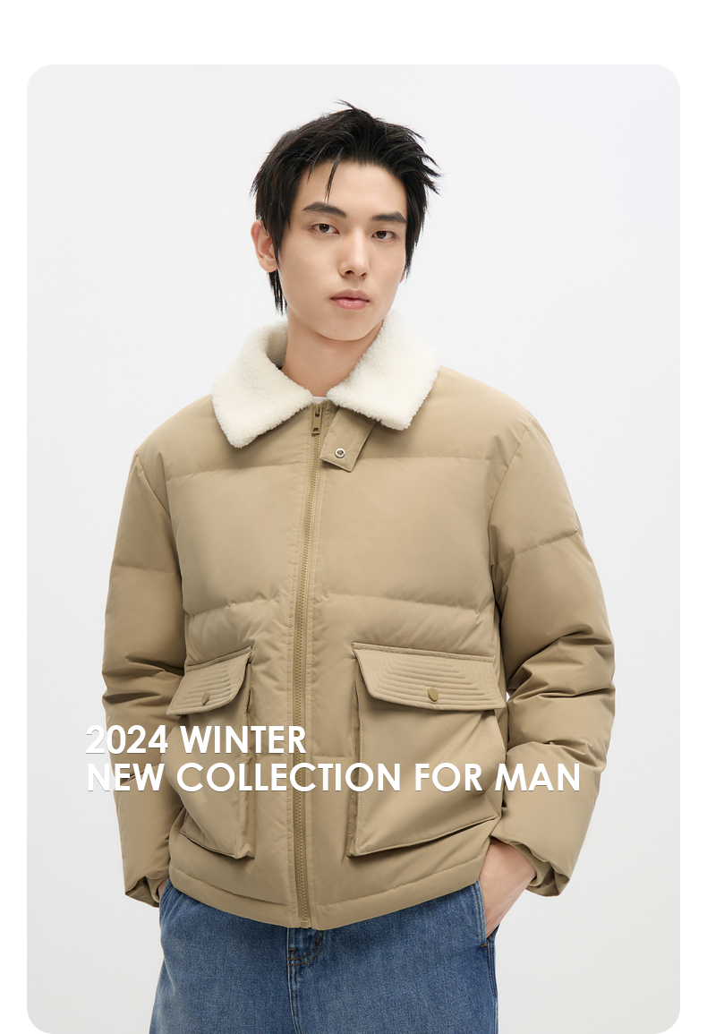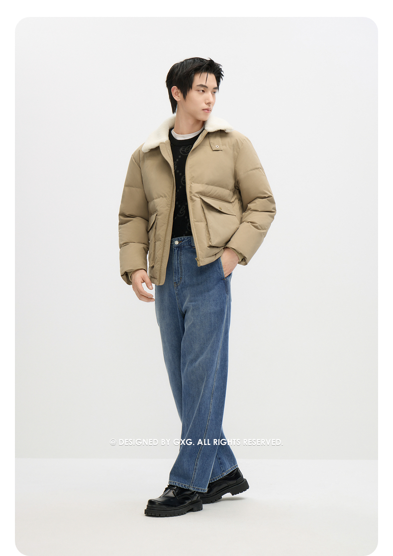 GXG男装 夹克羽绒服男2024冬热卖短款仿羊羔毛领外套#G24DY24006