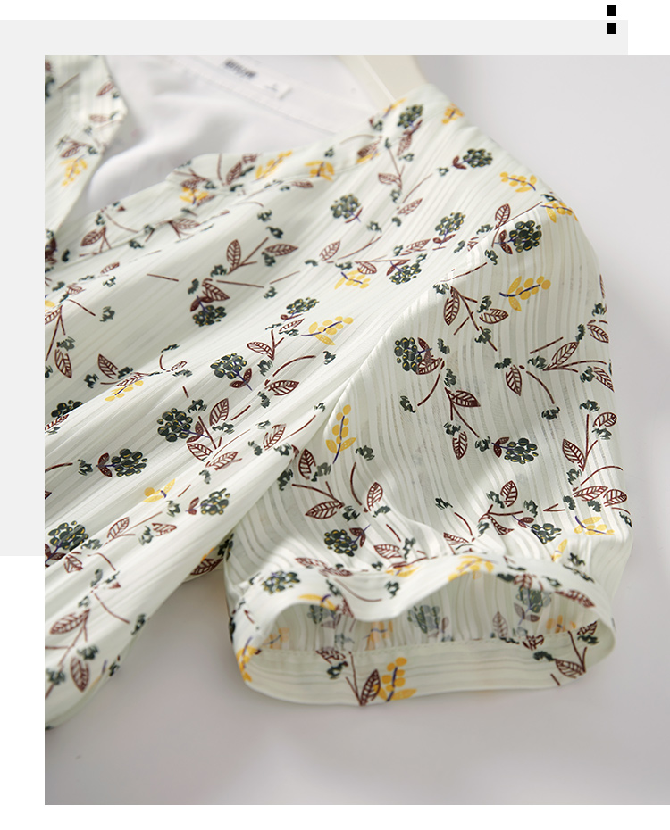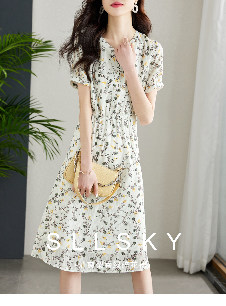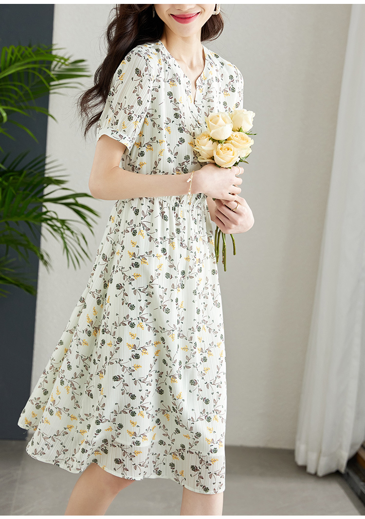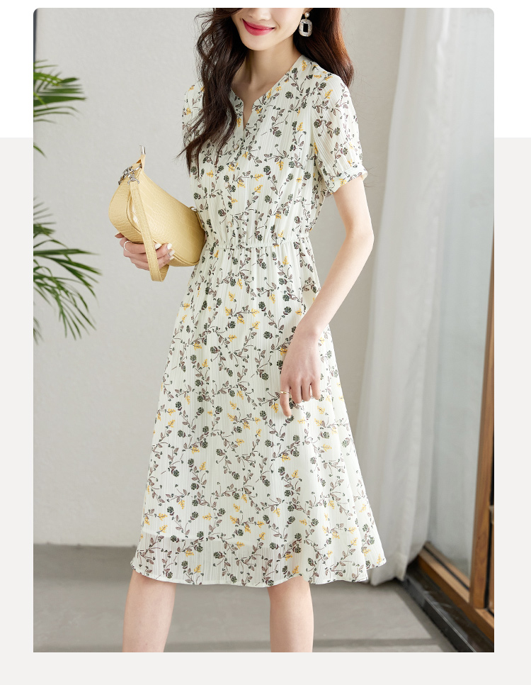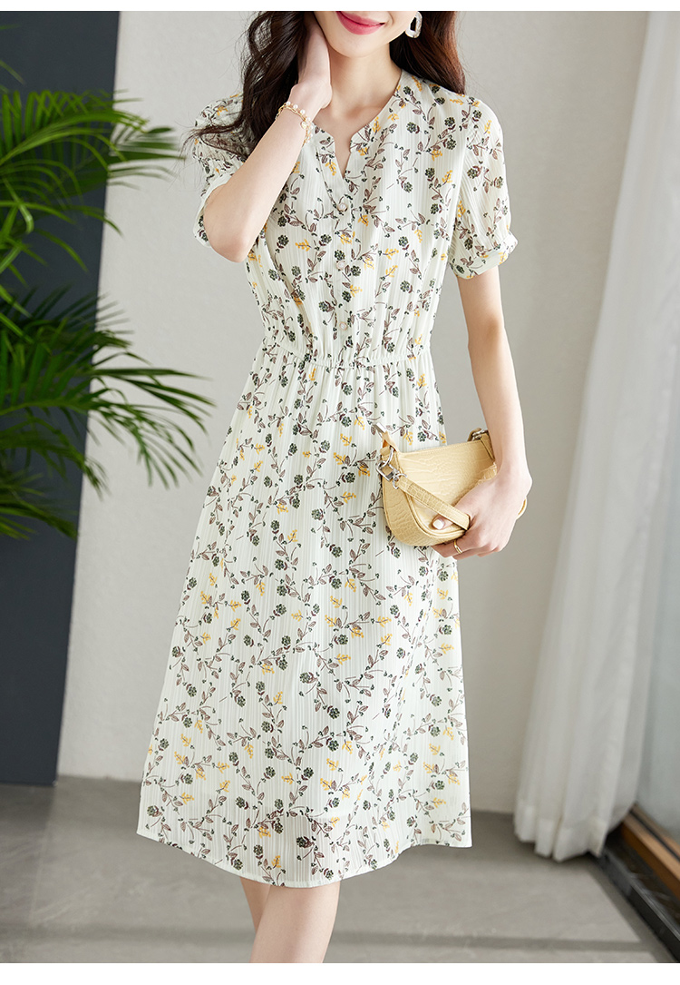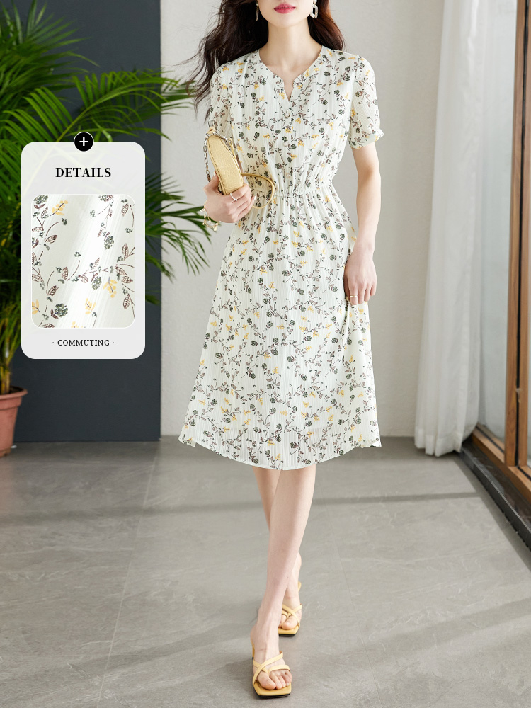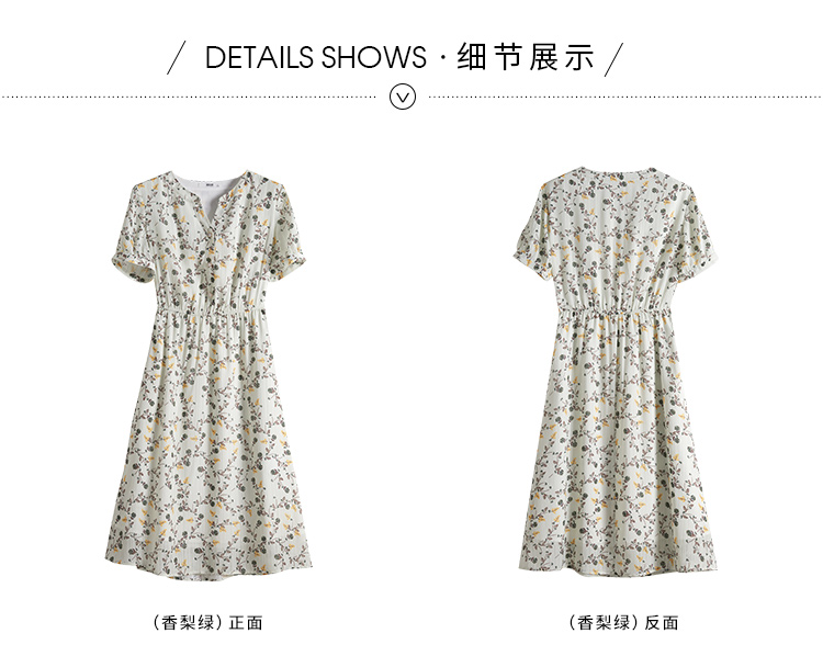 【79元福袋,不支持退换】熙世界连衣裙女气质短袖V领雪纺收腰显瘦夏碎花裙子