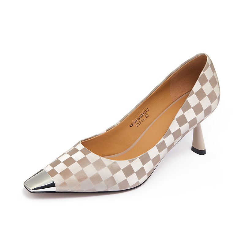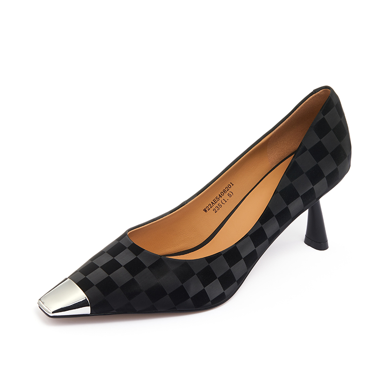 westory早春细跟真皮高跟鞋棋盘格暗纹简约通勤女鞋职场ol单鞋W22AE54082
