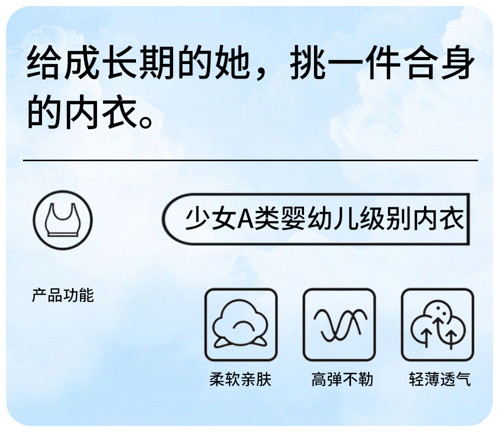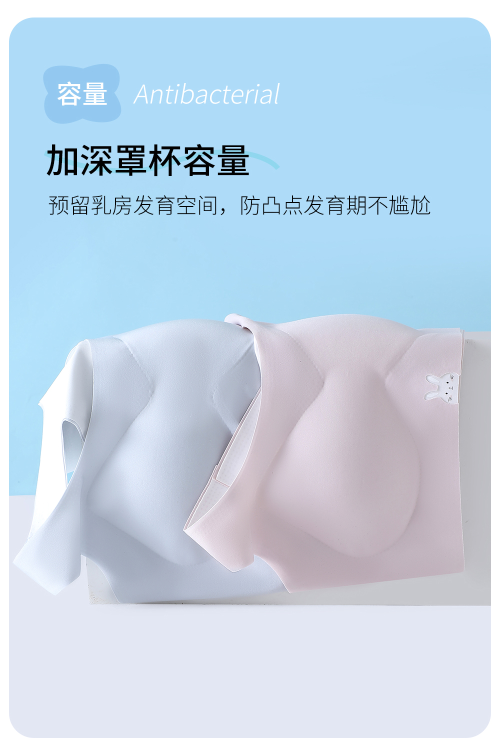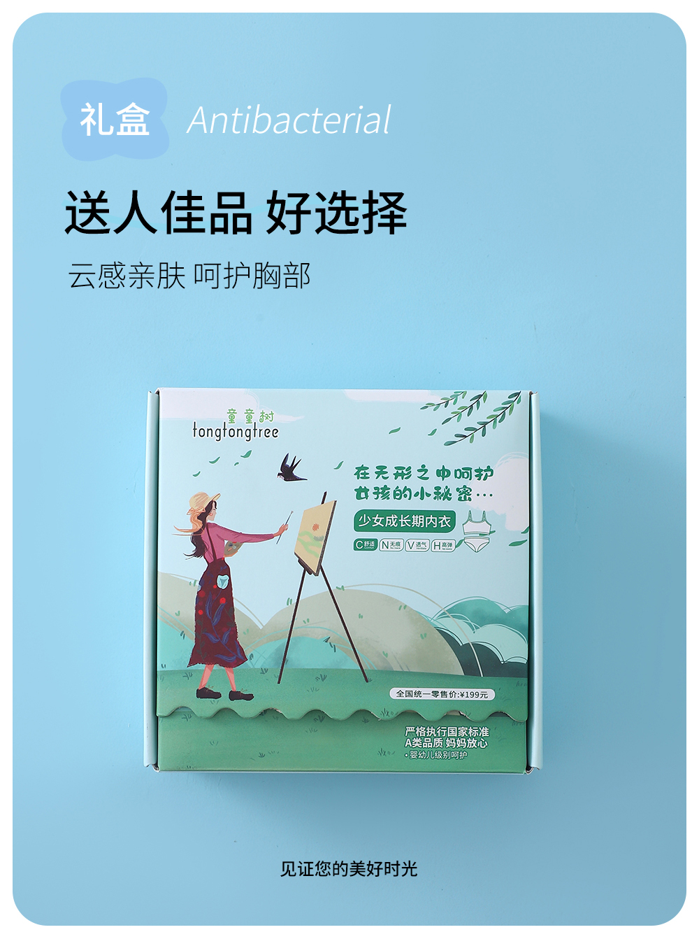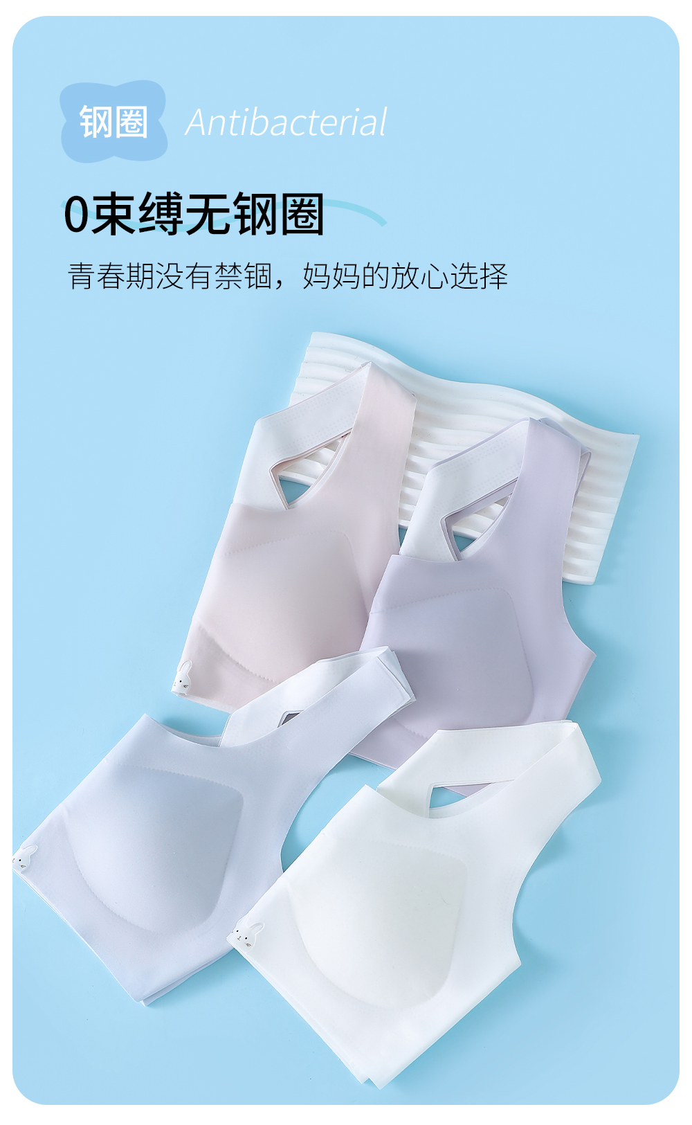 童童树 2件礼盒装7A抑菌少女弹弹纱X+防凸点舒适透气亲肤成长内衣N-1115