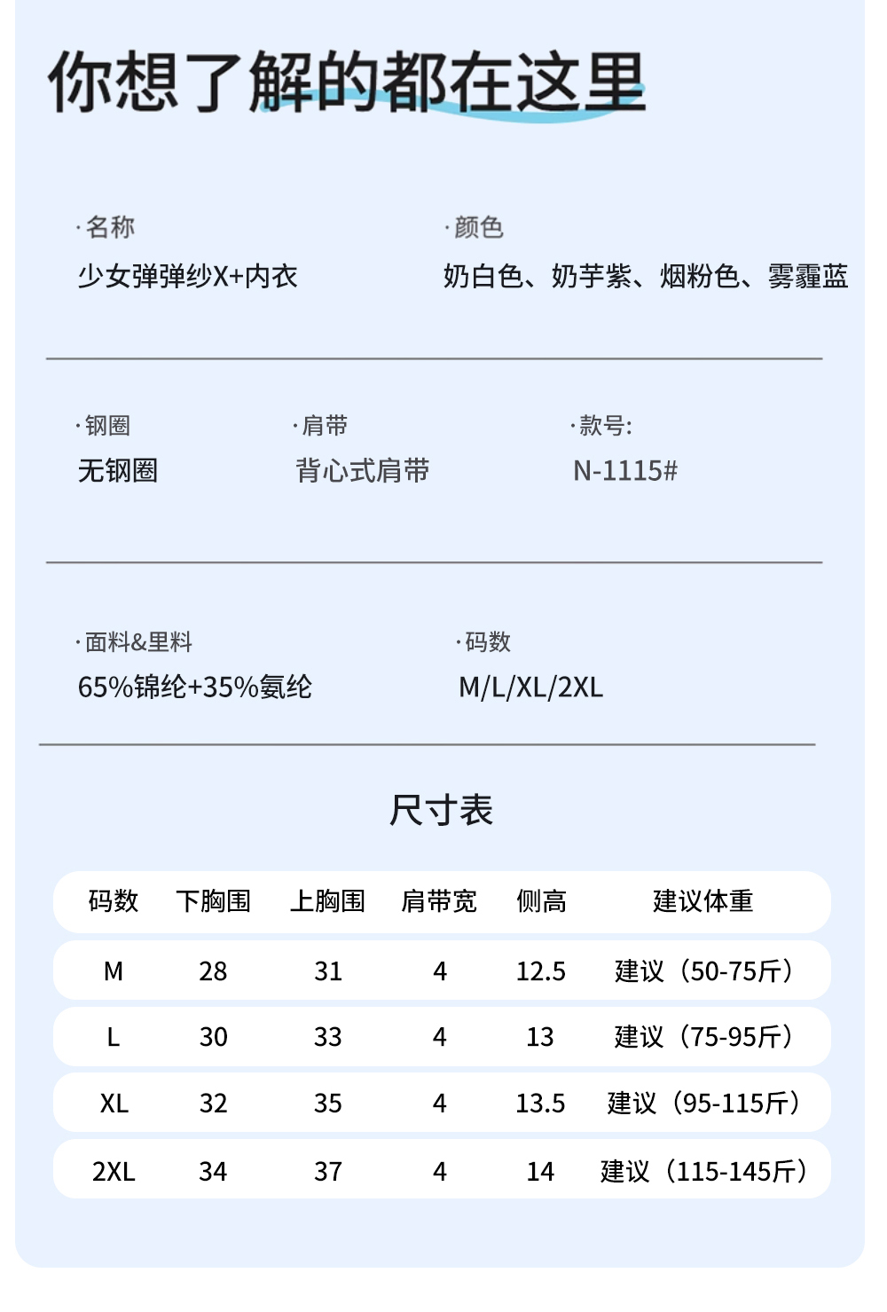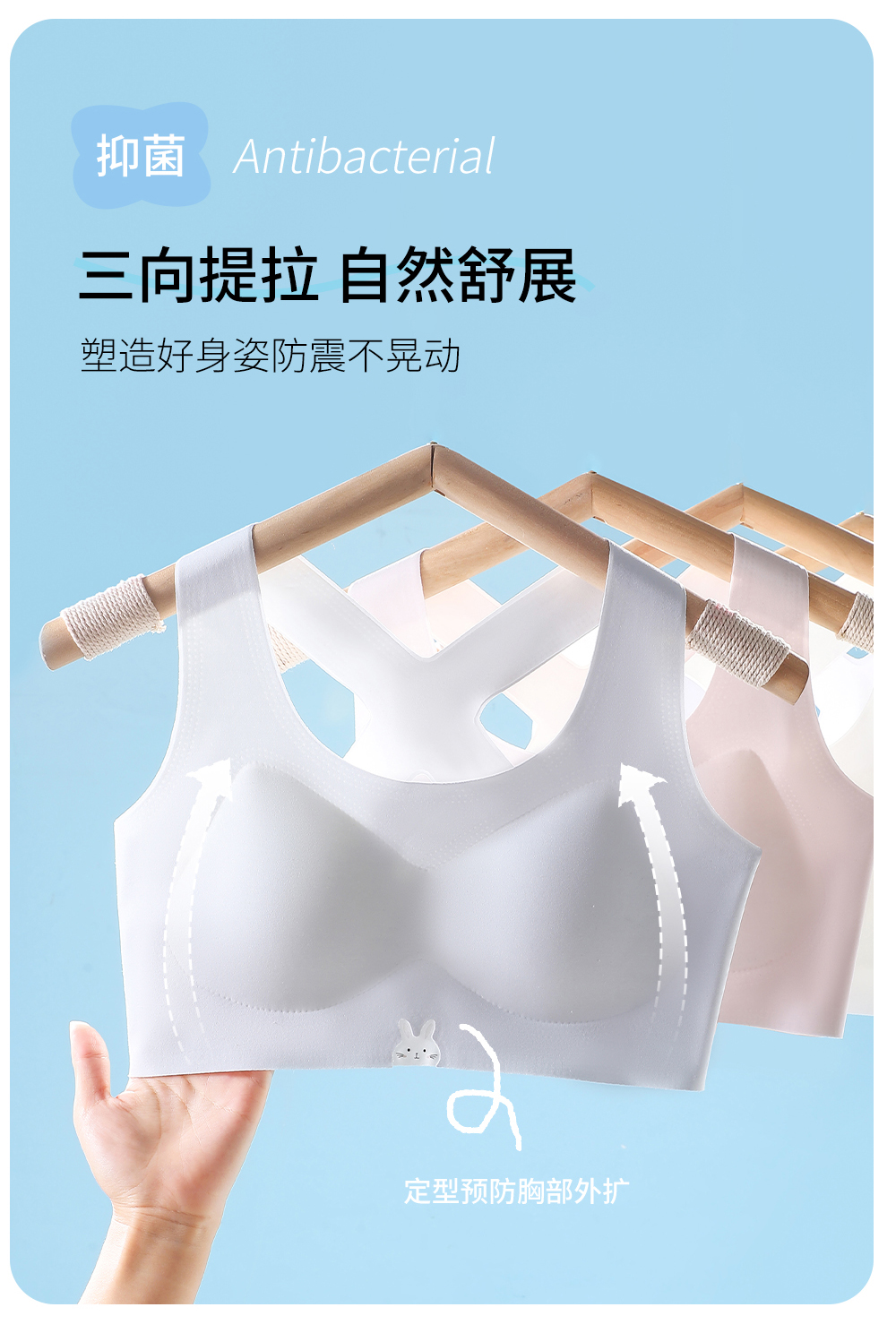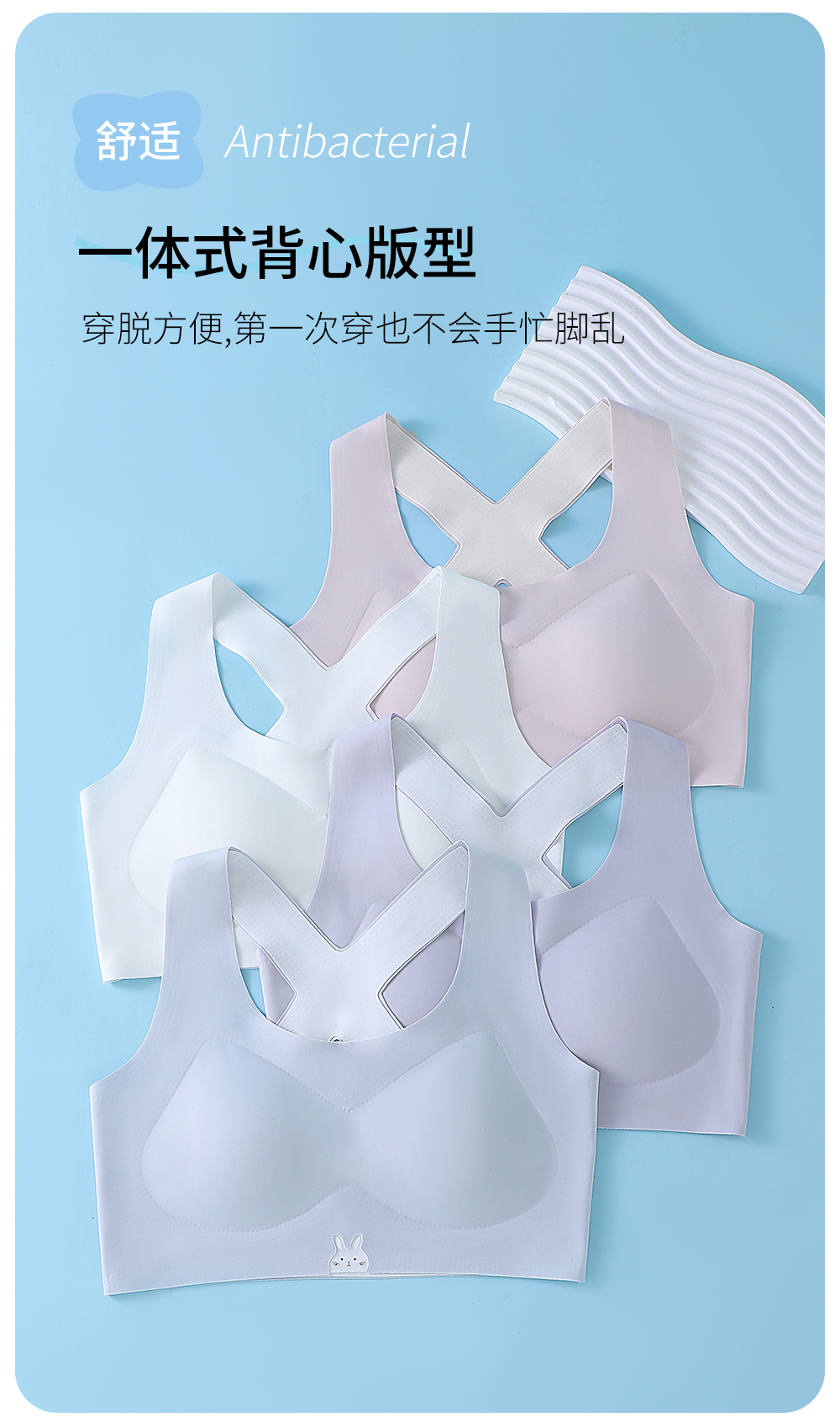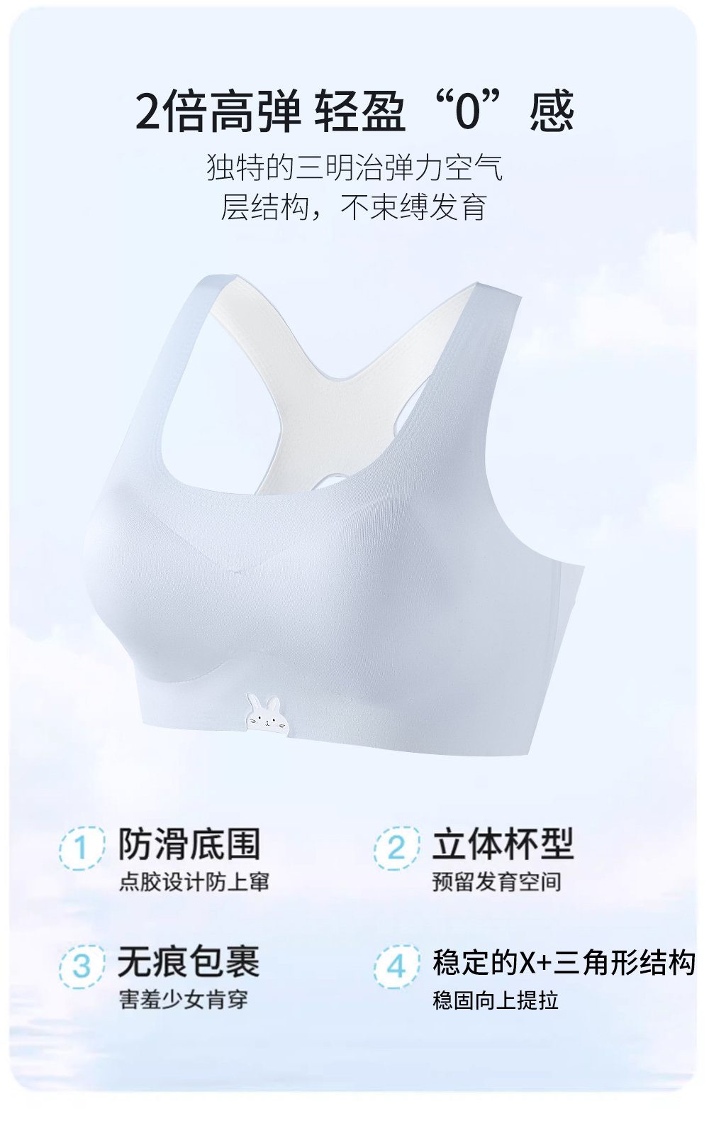 童童树 2件礼盒装7A抑菌少女弹弹纱X+防凸点舒适透气亲肤成长内衣N-1115