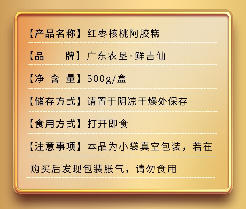 【分仓直发包邮】25年鲜吉仙红枣核桃阿胶糕礼盒500g