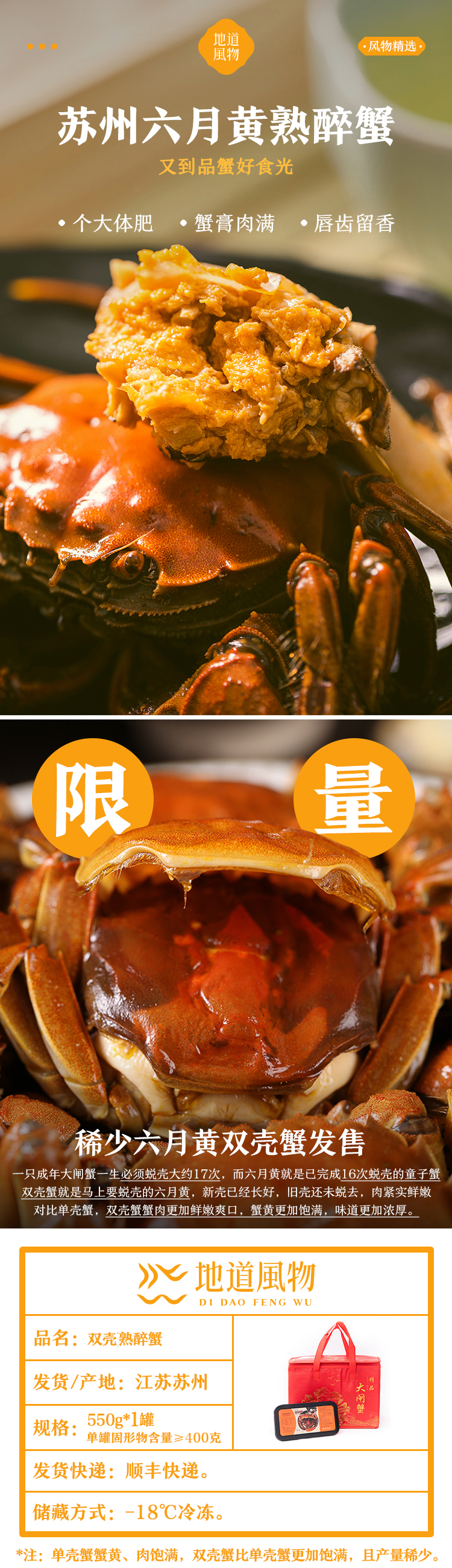 【肉质饱满 蟹黄丰腴】双壳熟醉蟹550g/罐*1罐