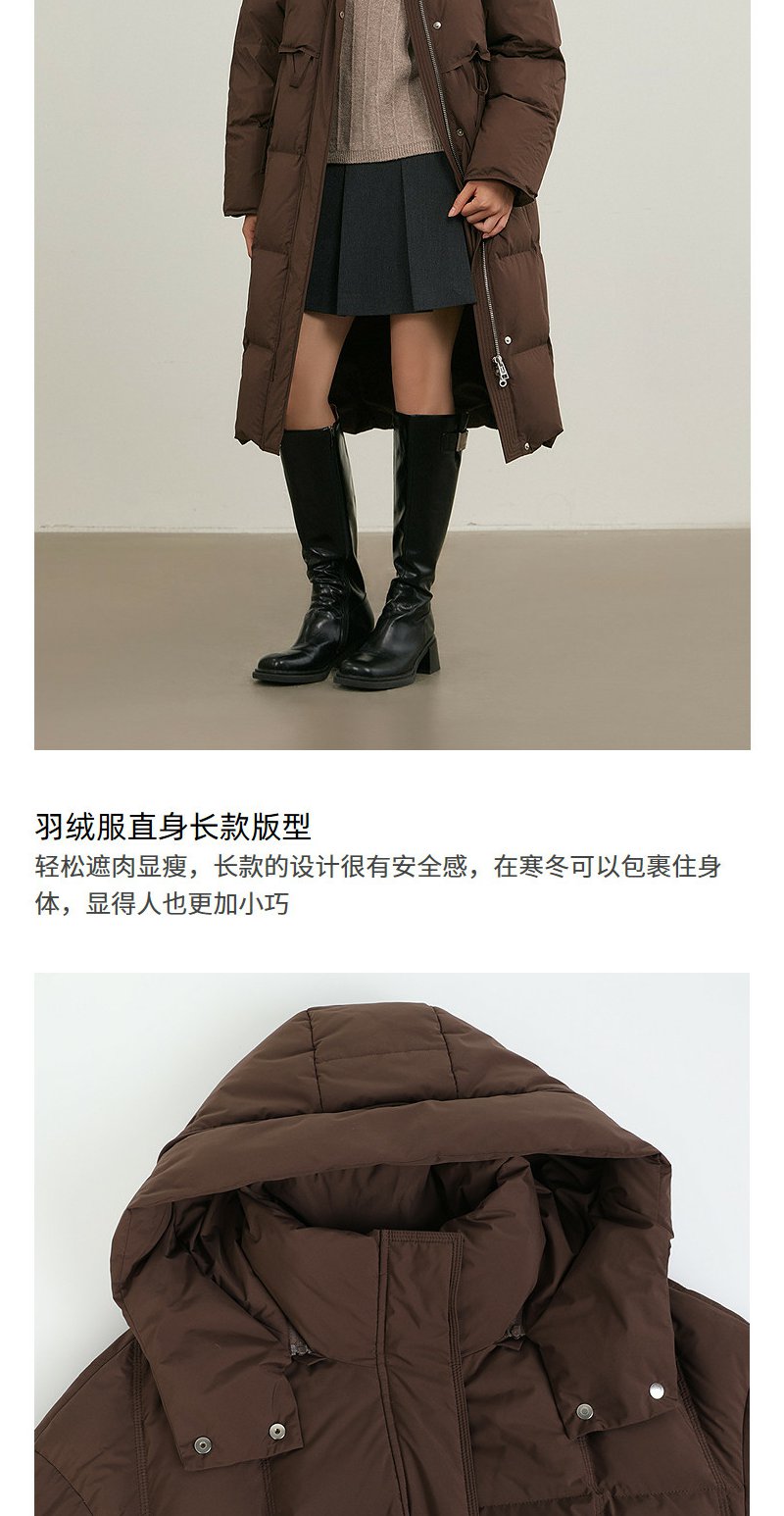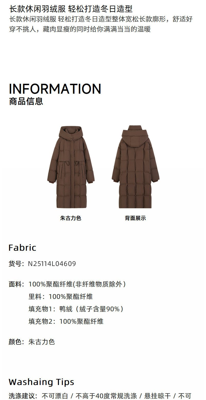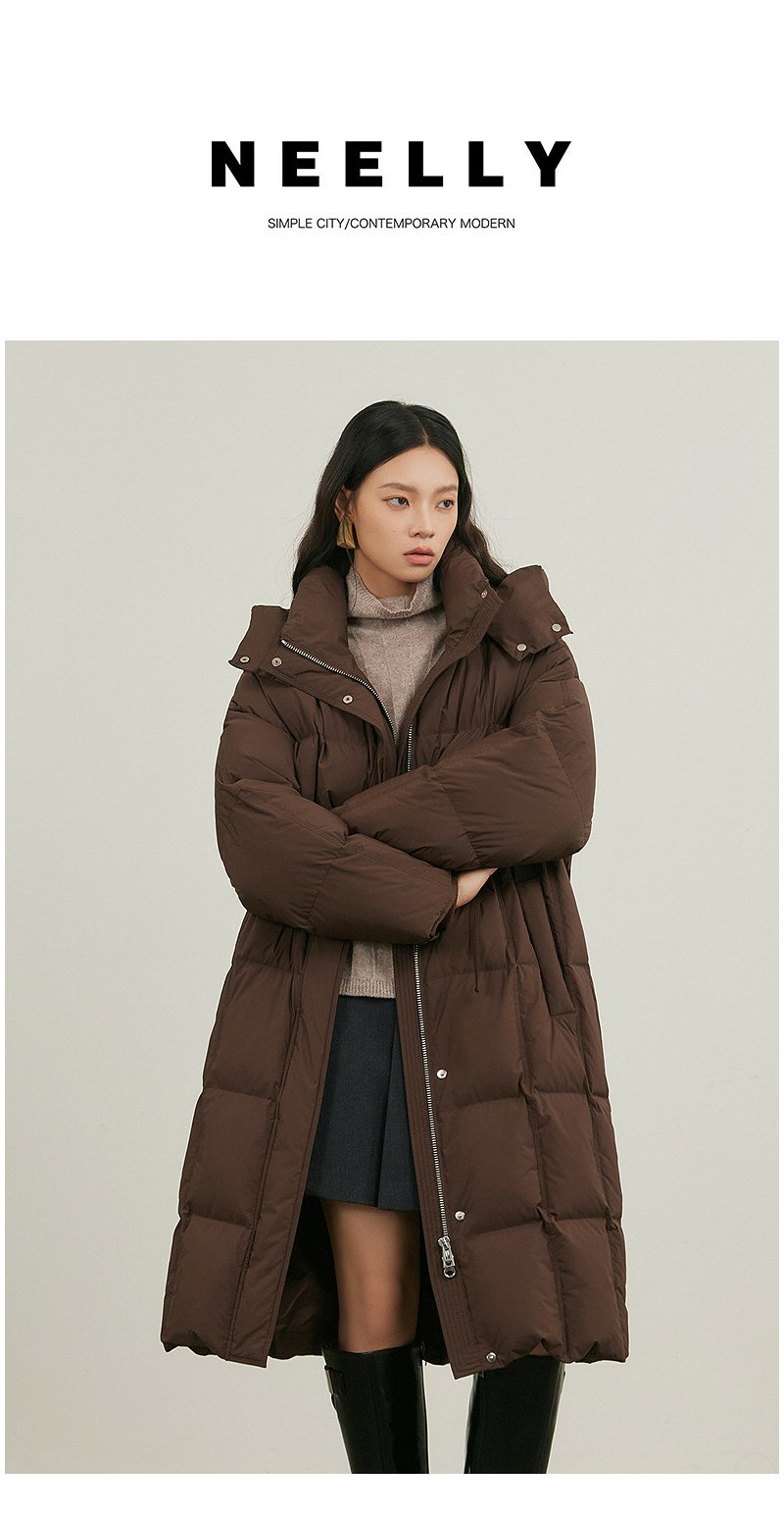 NEELLY纳俪商场同款冬新款休闲通勤长款连帽羽绒服女保暖显瘦外套N25114L04609