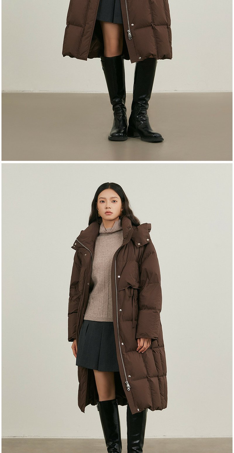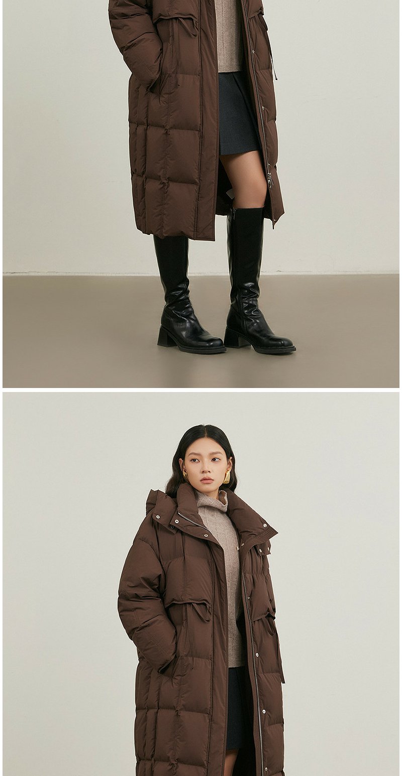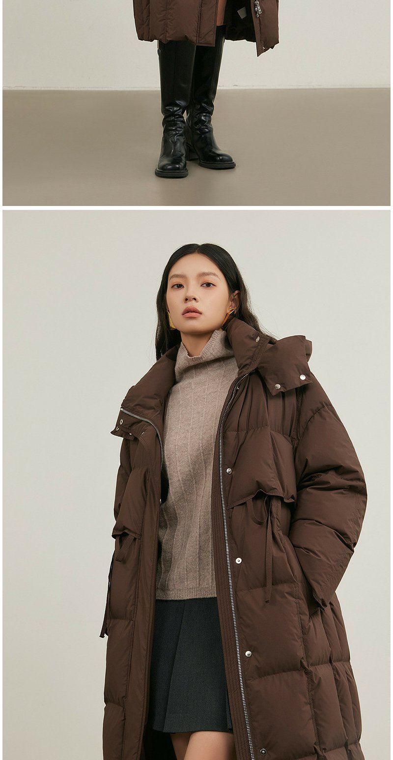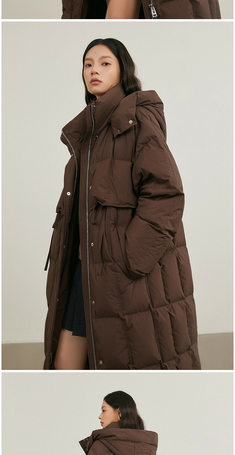 NEELLY纳俪商场同款冬新款休闲通勤长款连帽羽绒服女保暖显瘦外套N25114L04609