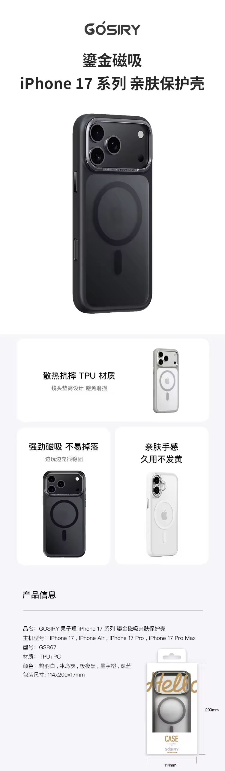 GOSIRY果子理 iPhone 系列 鎏金磁吸 亲肤保护壳-17 Pro 系列