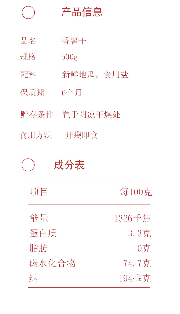 【三蒸三晒 软糯香甜】地瓜干 500g/袋 农家自制 外皮嚼劲感十足 里面软软糯糯 大人小孩都爱 无添加更好吃 (独立小包装)