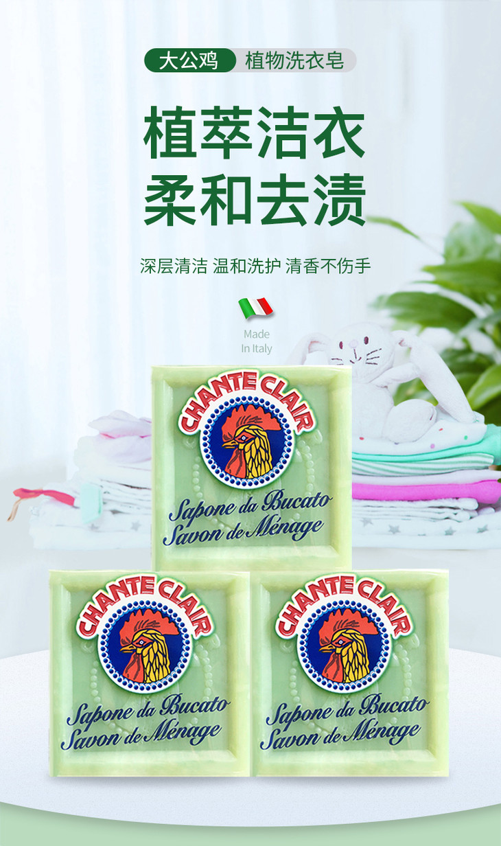 【1件包邮】大公鸡管家植物洗衣皂300g*3块/118124 植萃洁衣柔和去渍 新疆西藏港澳台不发货