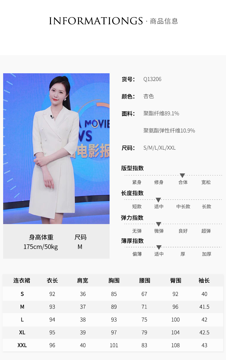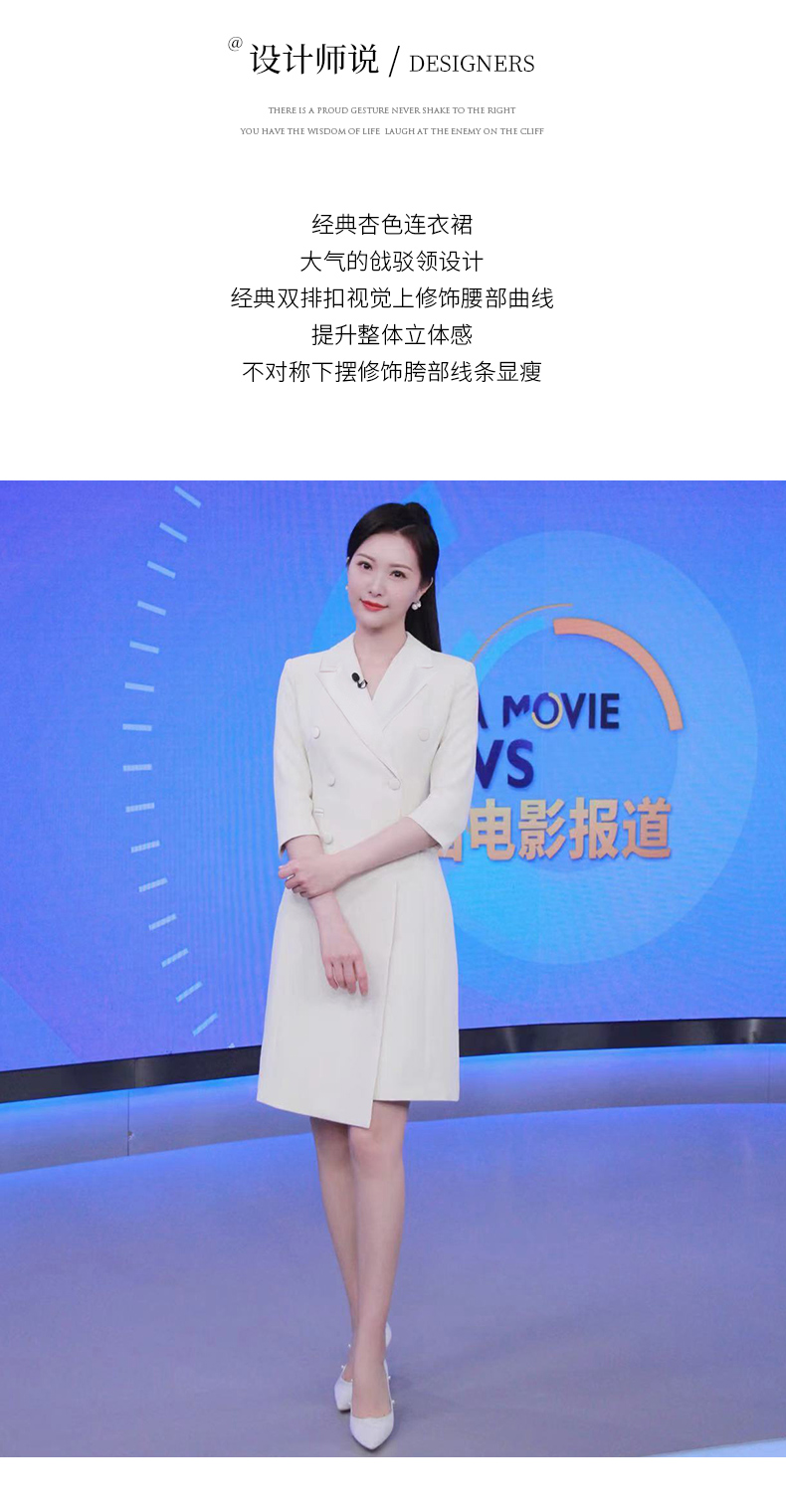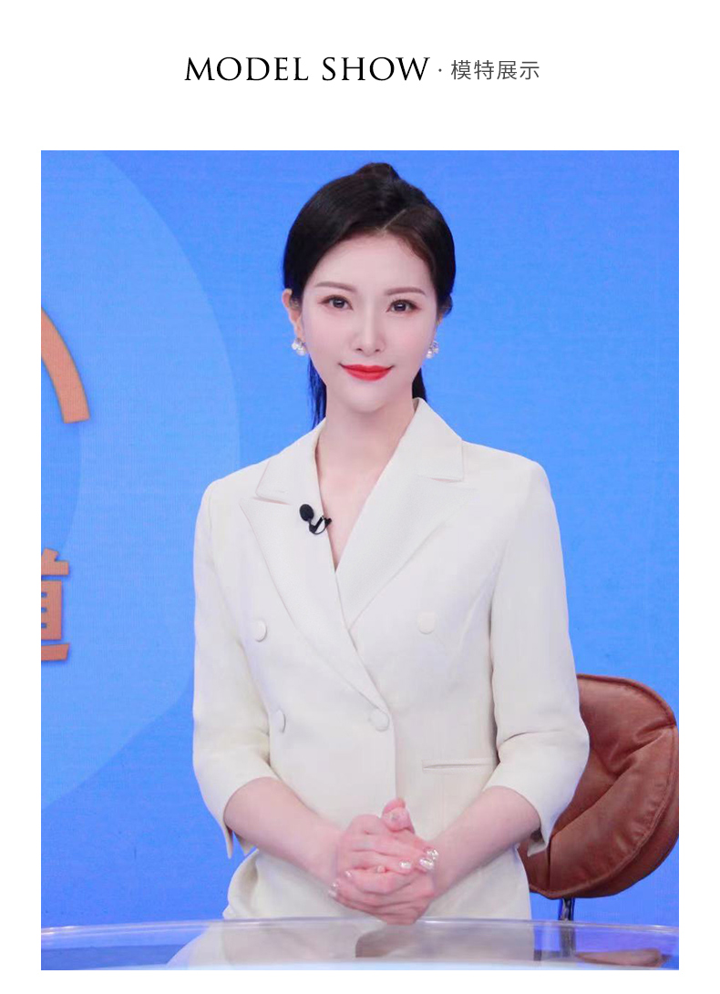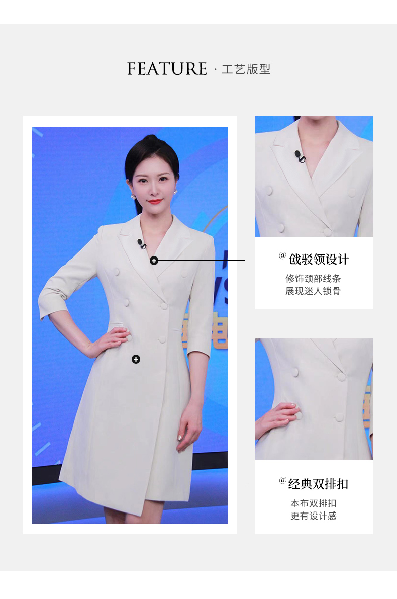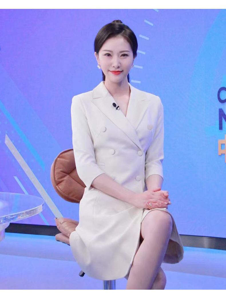 IWY/冯琳同款七分袖西装连衣裙女职业装季艺考播音主持人上镜正装女OLQ13026