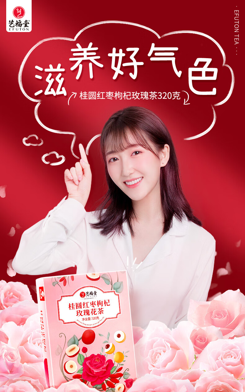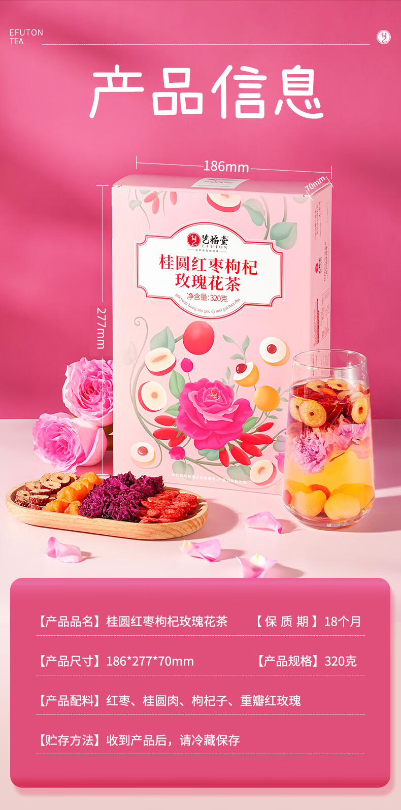 艺福堂桂圆红枣枸杞玫瑰花茶320g/盒