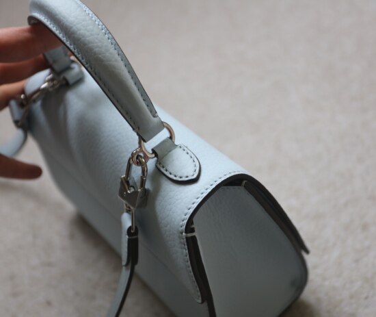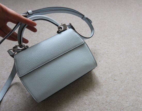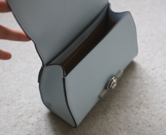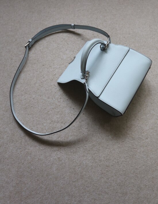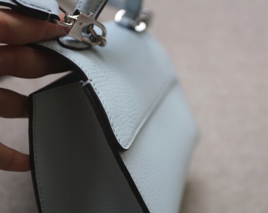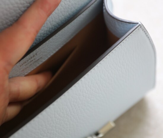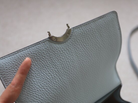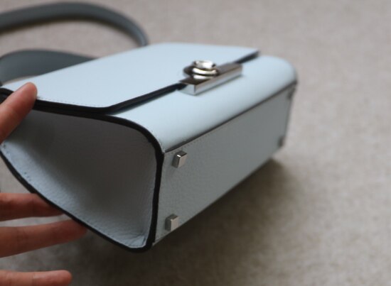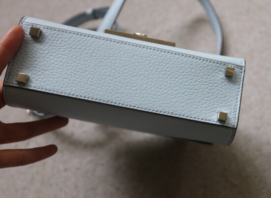 告诉大家一个小窍门 只是针对此款包包啊 看侧面弧度 盖头和袋底的距离