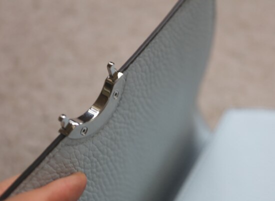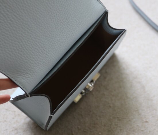 包底四角 有银色防磨钉 包内也是全皮料的 内无隔断 有个皮质的小贴袋