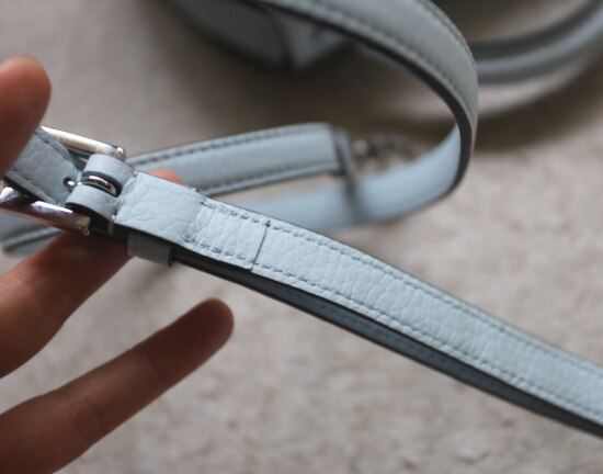 这种皮料的水染工艺 缩水非常严重 损耗极大 注意看四角 原货是不会皱的