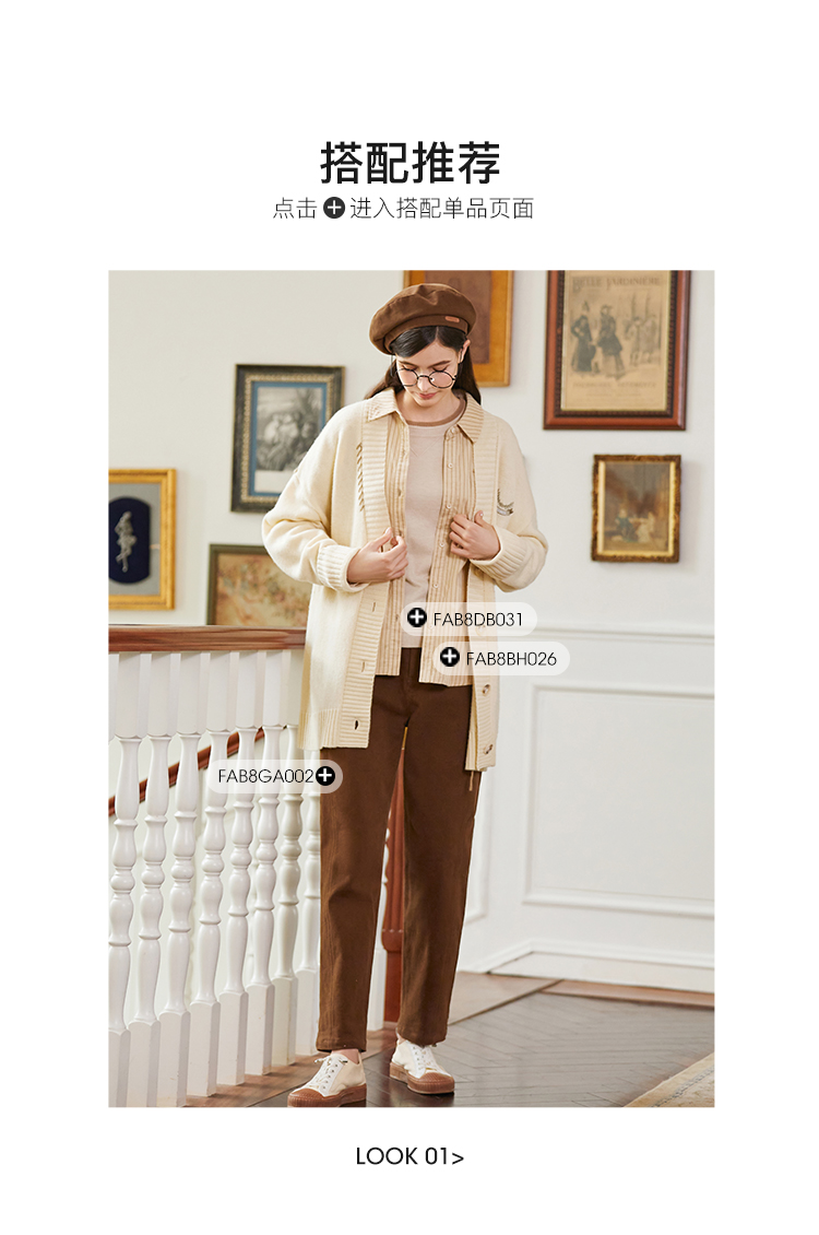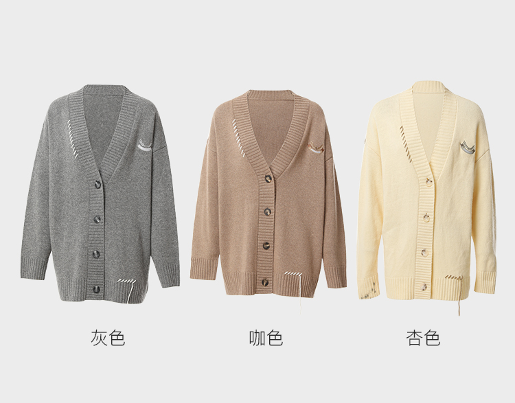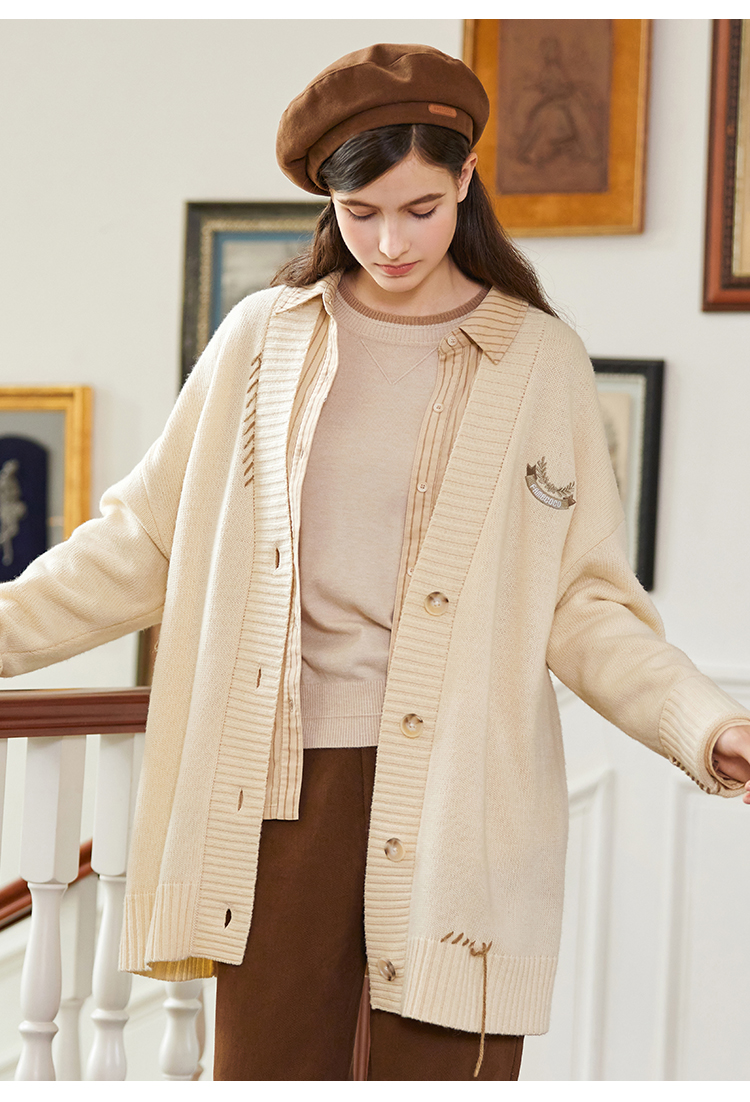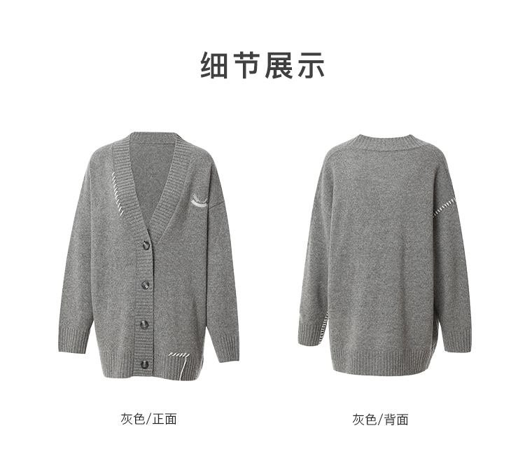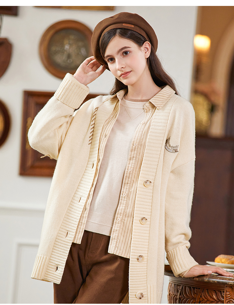 famecoco范可儿绣花徽章针织开衫中长款女FAB8DE030