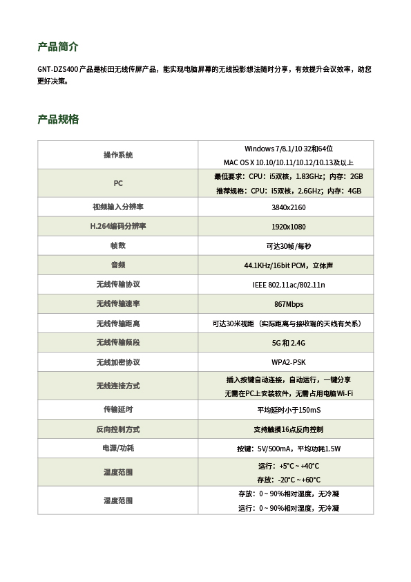 智慧屏4K/30Hz无线投屏器
