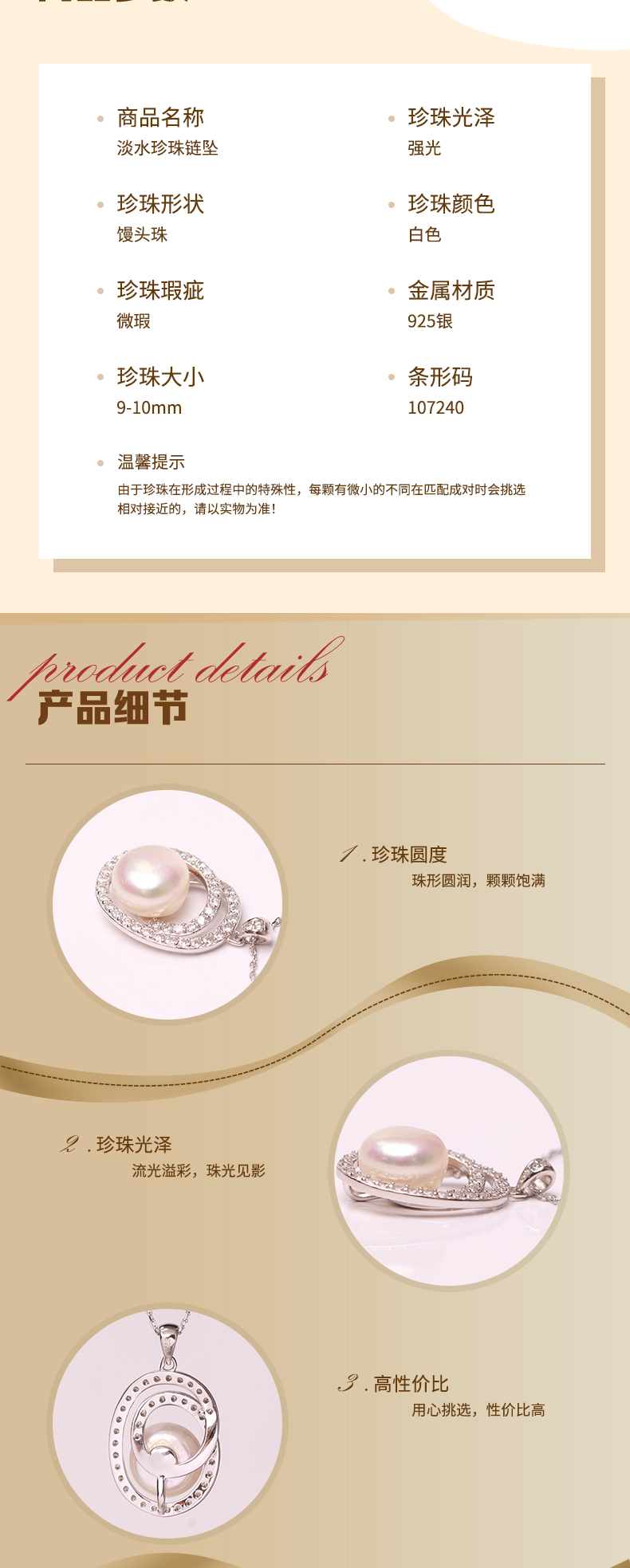 美裕 银925淡水珍珠链坠 9-10mm白 107240