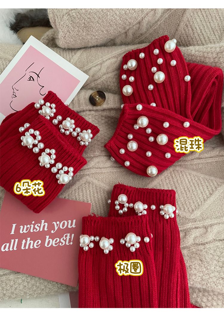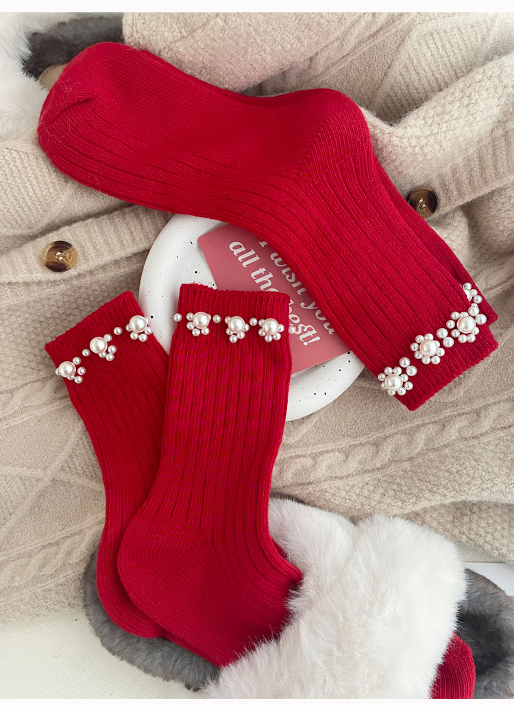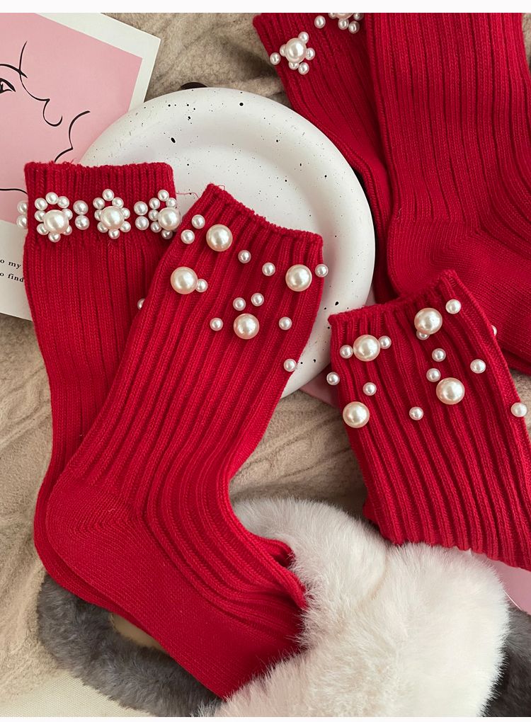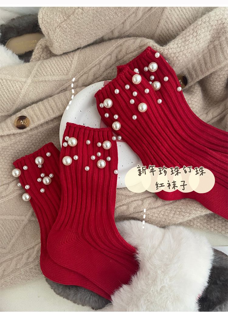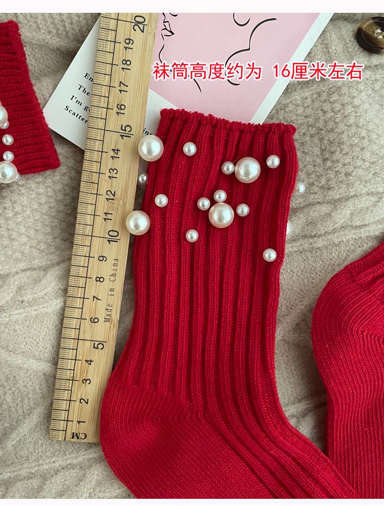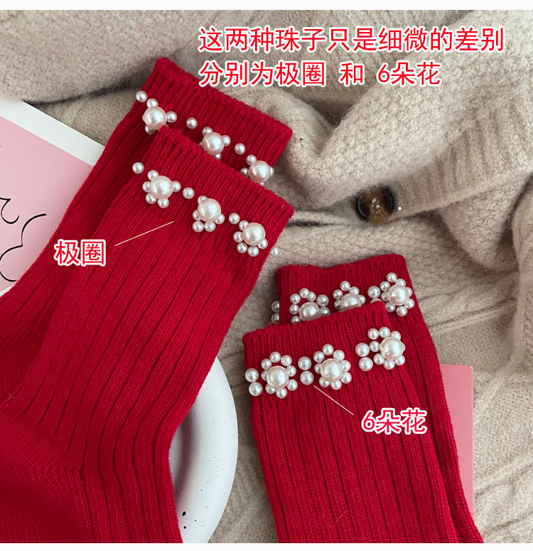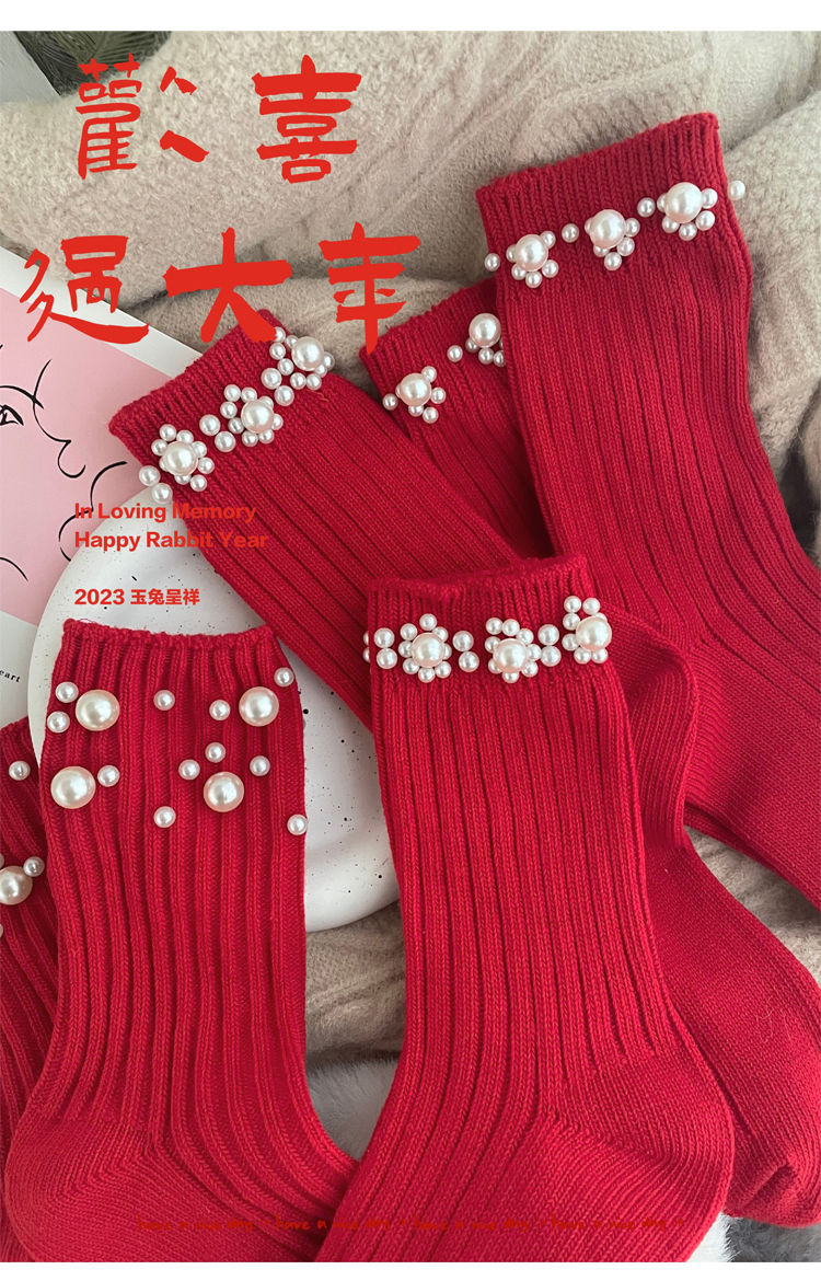 【爆款超低价预售 急单慎拍】本命年红袜子女秋冬纯棉网红ins潮流兔年珍珠好运转运新年中筒袜