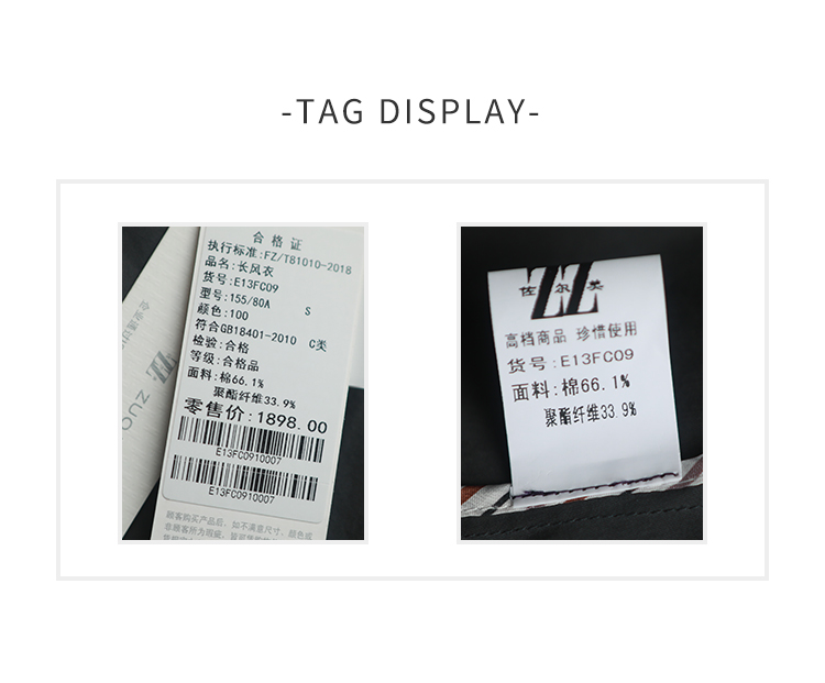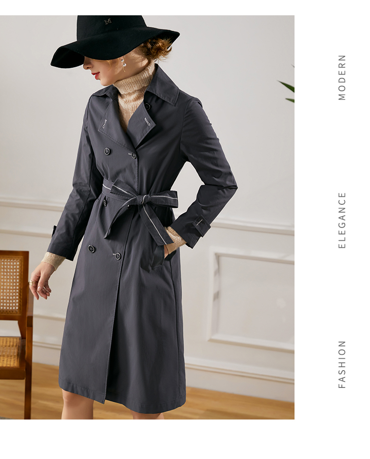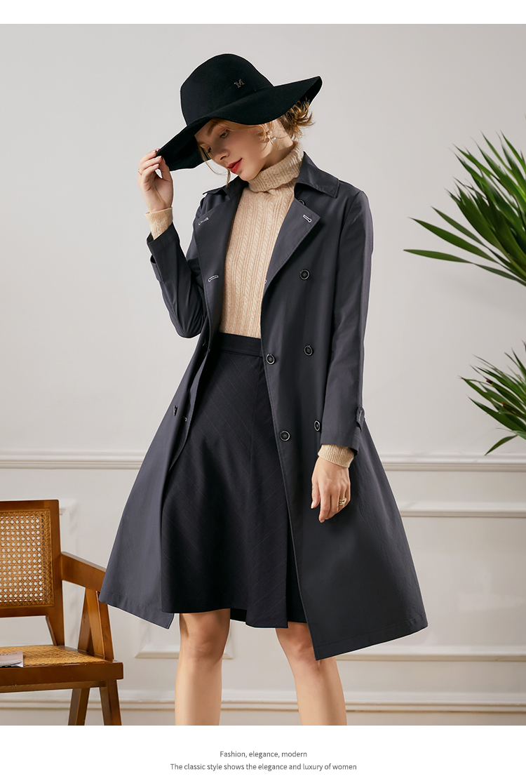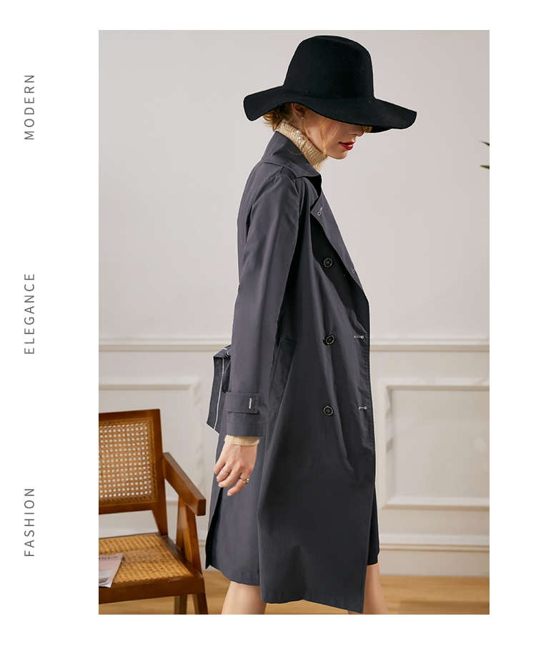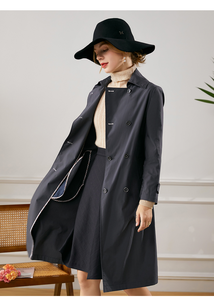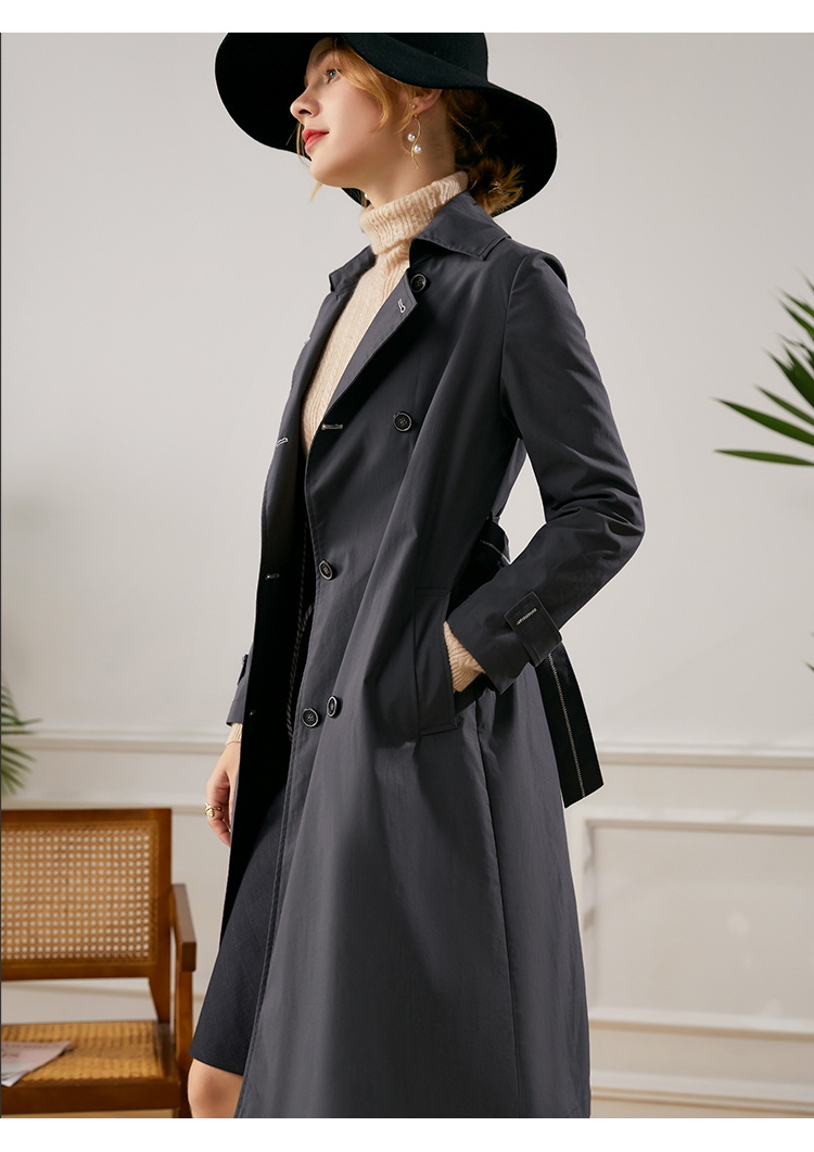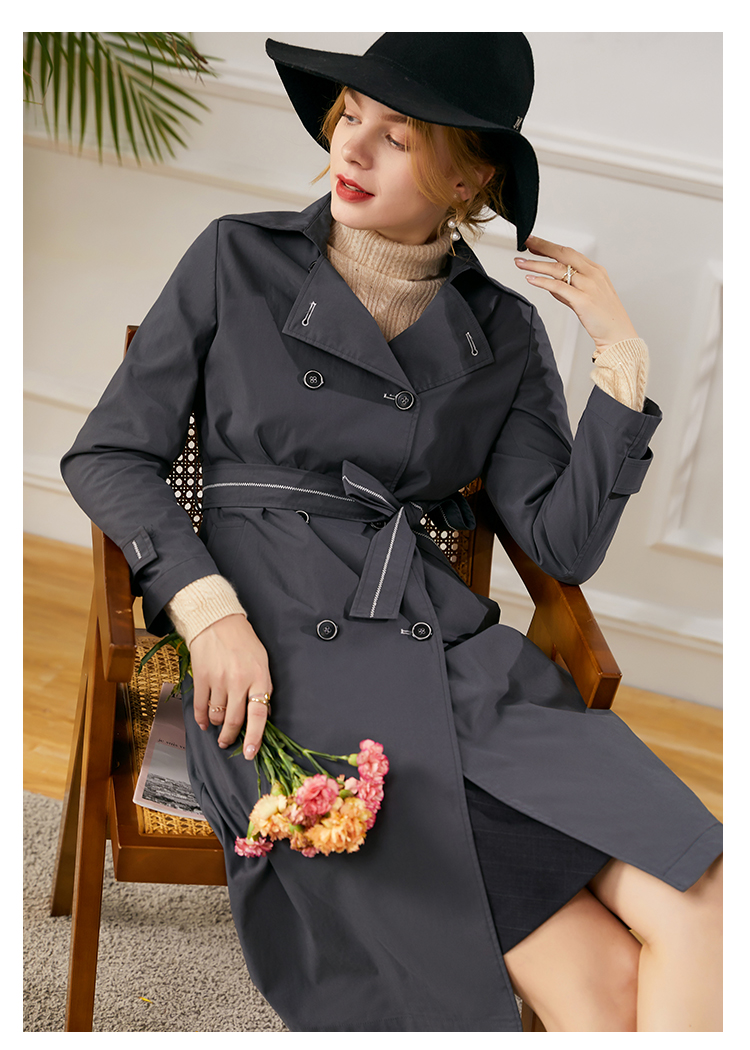 佐尔美2022春新款气质中长款经典束腰双排扣英伦长风衣E13FC09