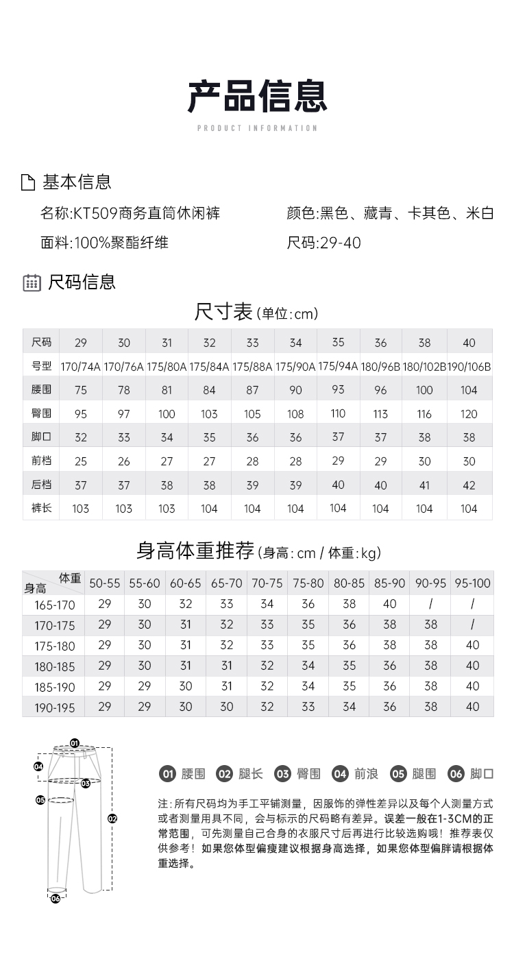 【商务直筒休闲裤】修身透气休闲西裤 显高显瘦通勤长裤子KT509