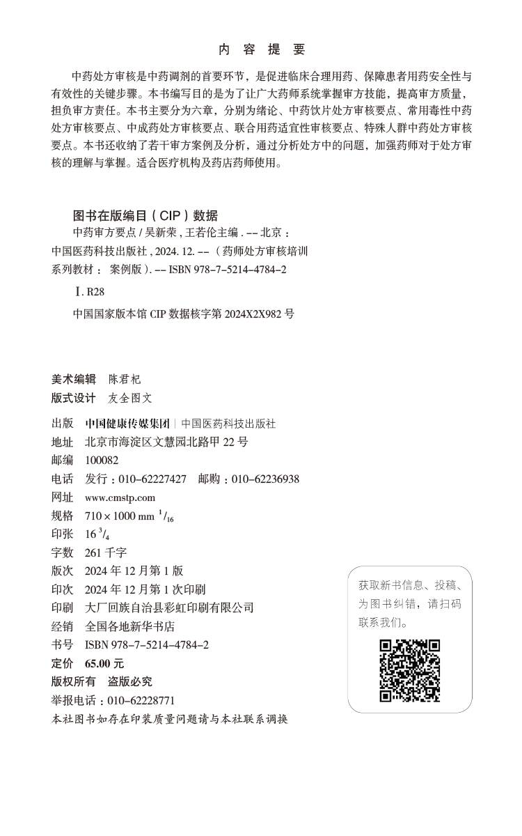 书名:中药审方要点(药师处方审核培训系列教材 案例版)