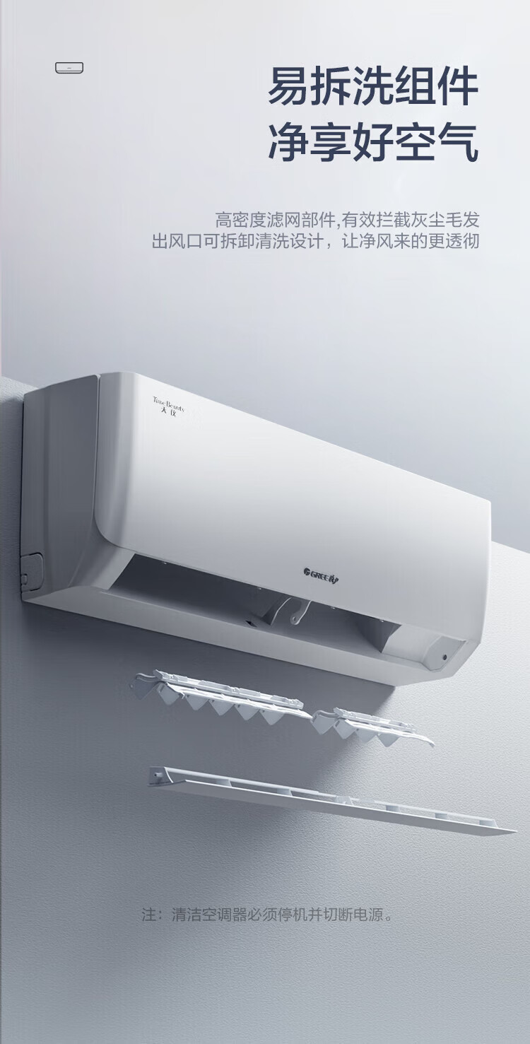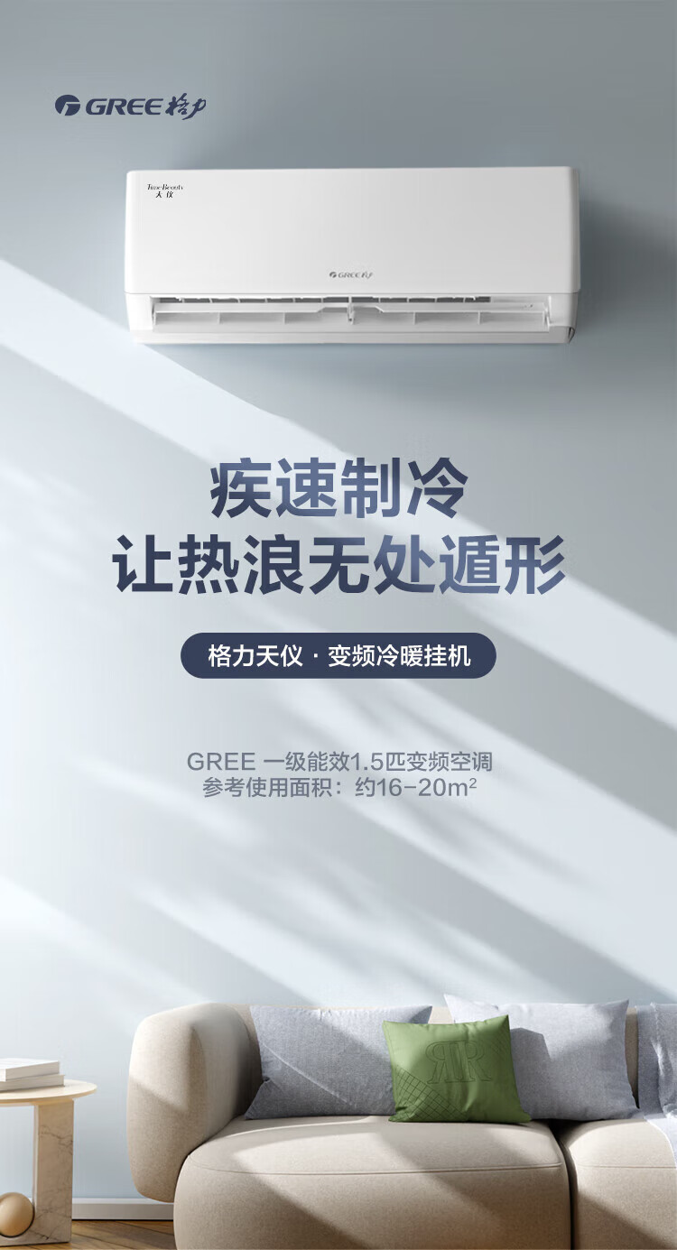 格力(GREE)1.5匹 天仪 一级能效 变频冷暖 净菌自洁 出风口可拆洗 壁挂式空调挂机 KFR-35GW/(35504)FNhAa-B1
