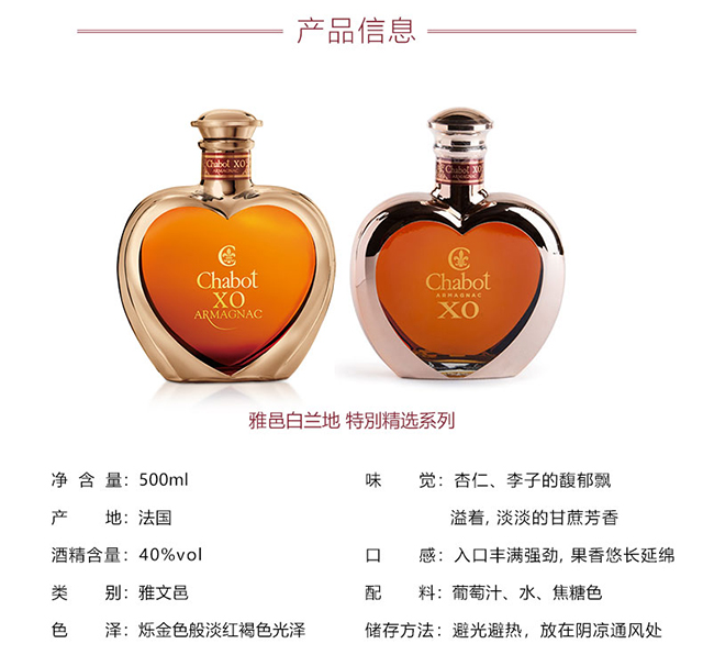 (500ml)戛堡 Chabot 经典XO雅邑白兰地 Coeur 500ml「48小时内发货」