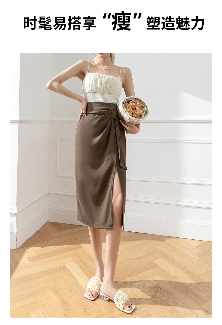Avann优雅系带开叉西装裙25010