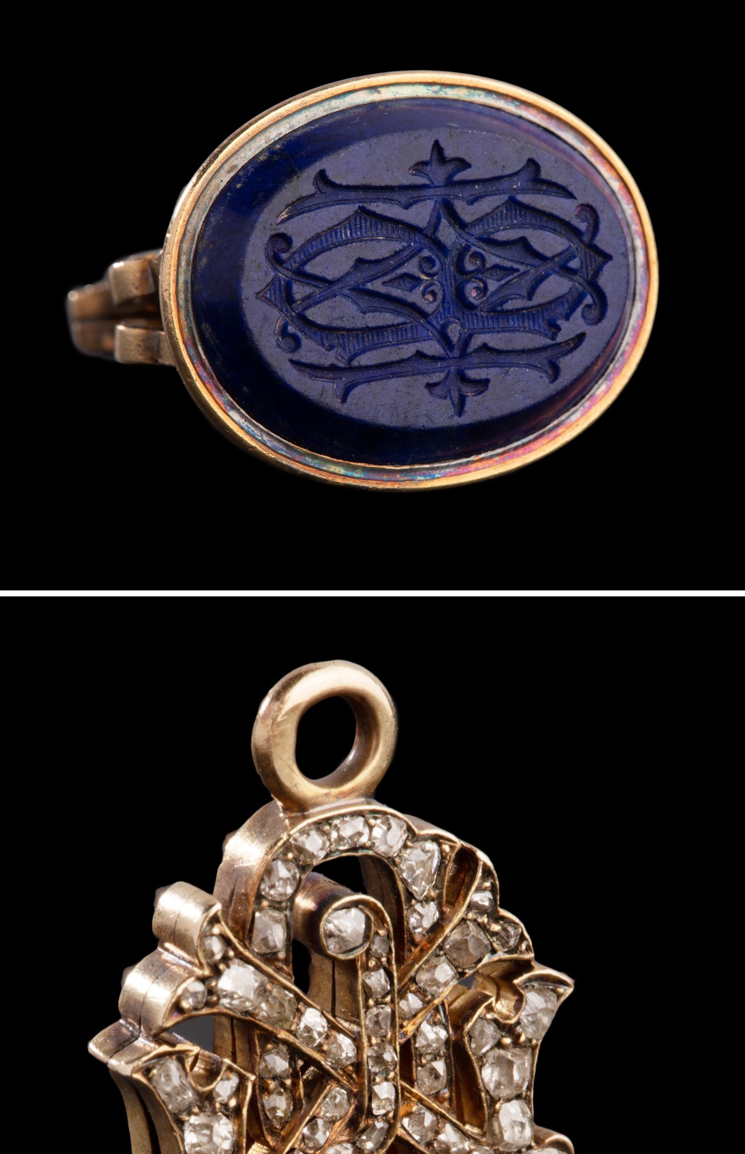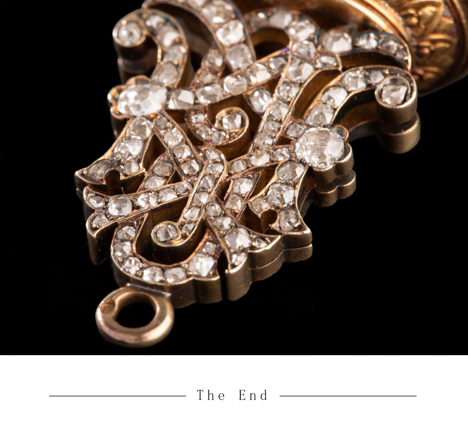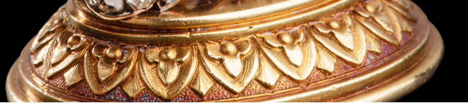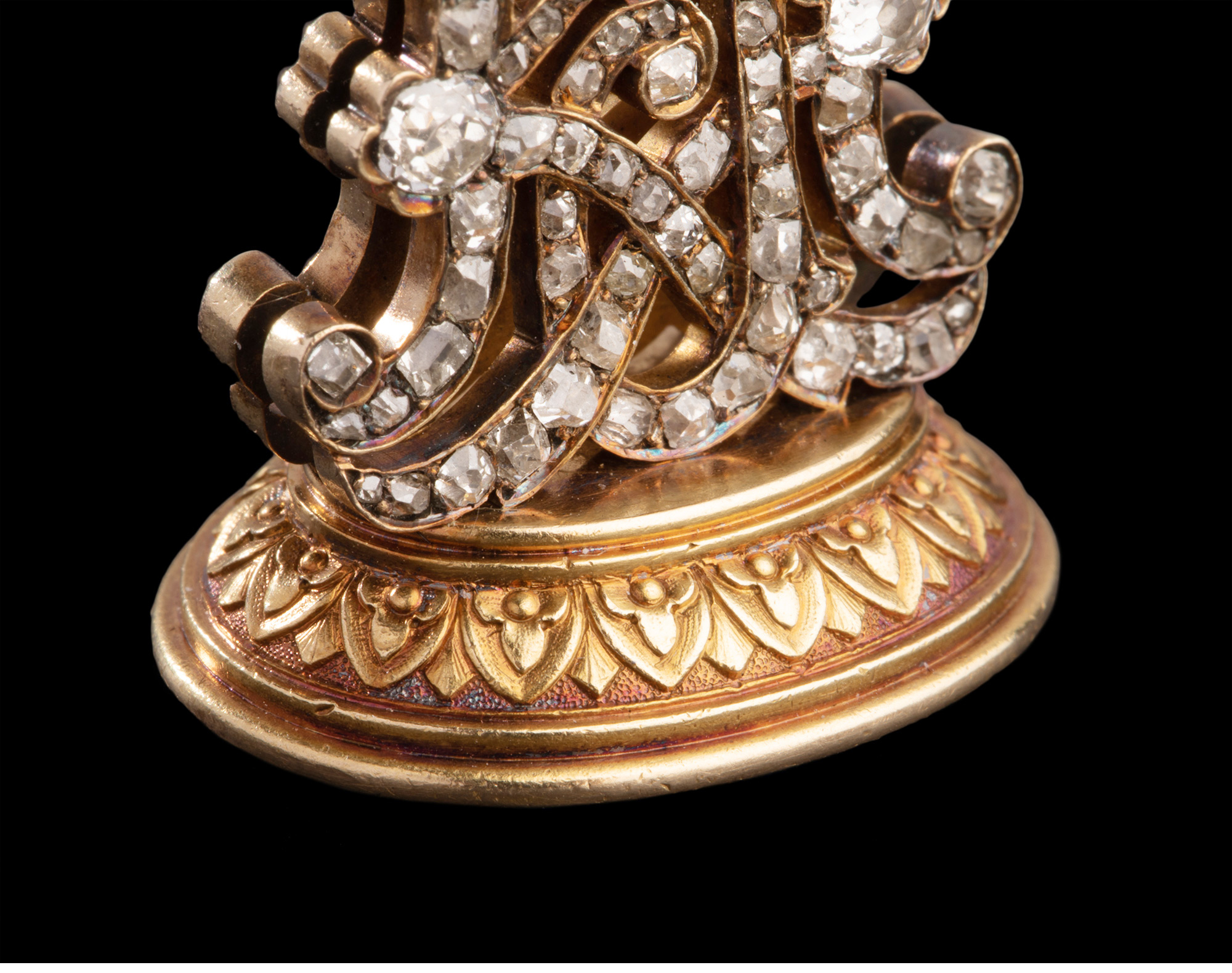 独角鹿西洋古董18K黄金镂雕花押字母镶嵌钻石青金石火漆印章吊坠