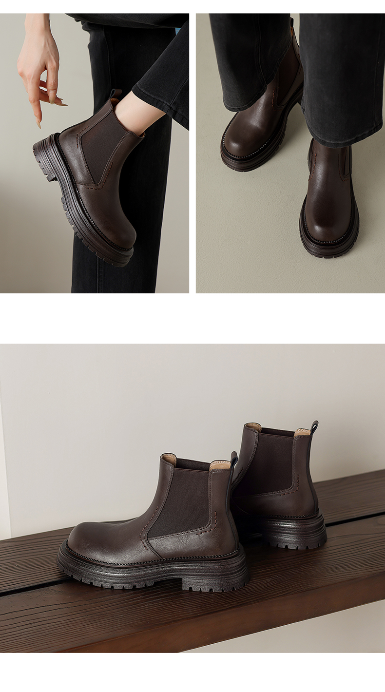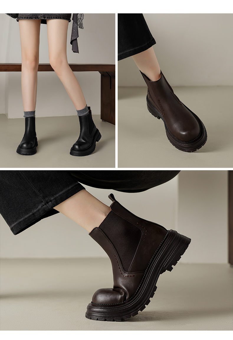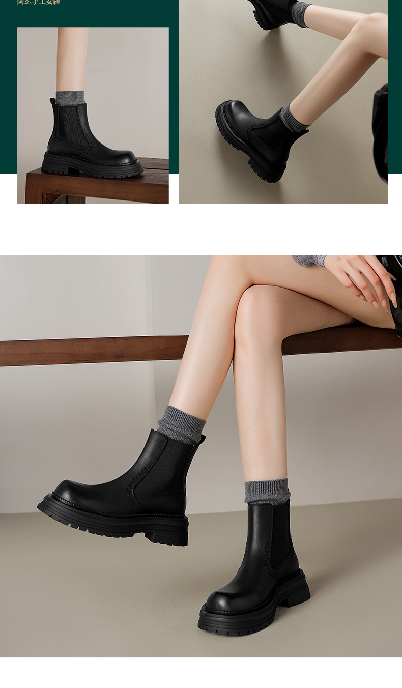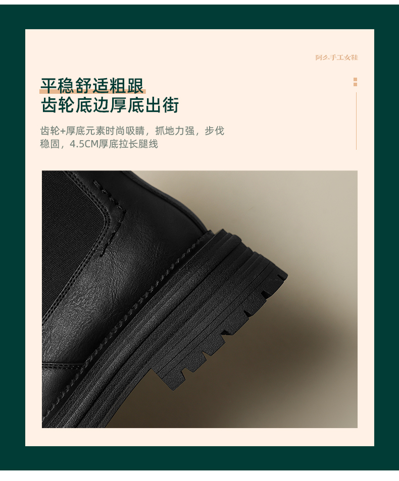 阿么手工女鞋学院风厚底切尔西靴4.5CM显瘦百搭2025新款真皮短靴
