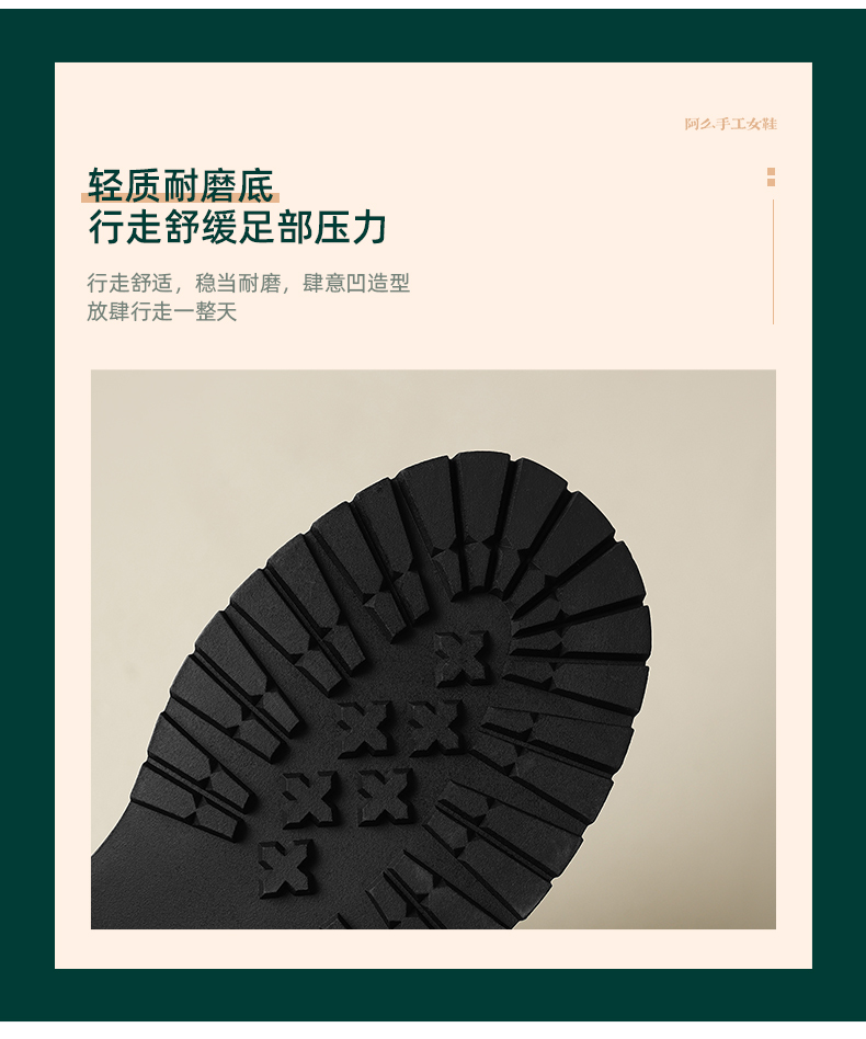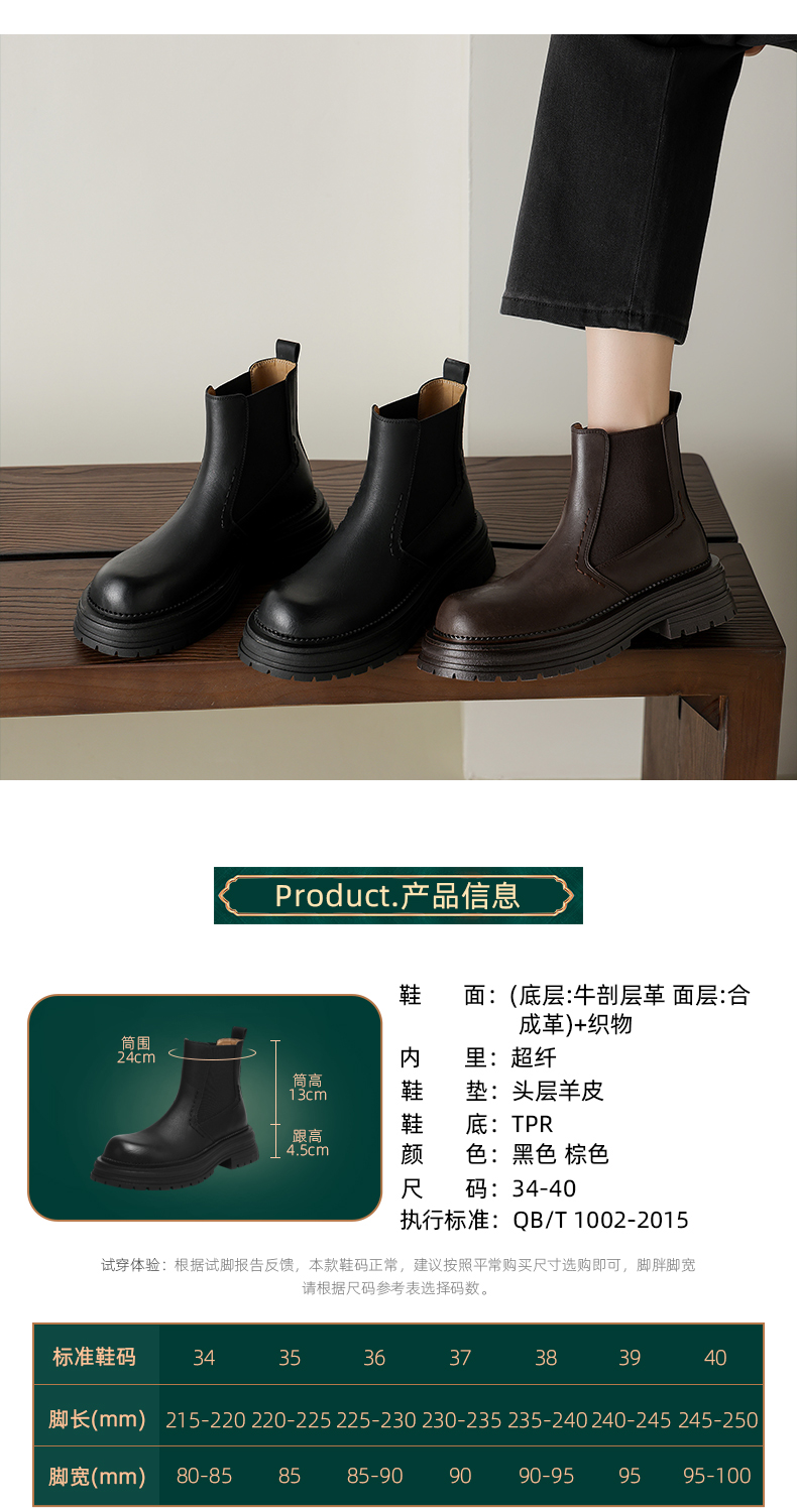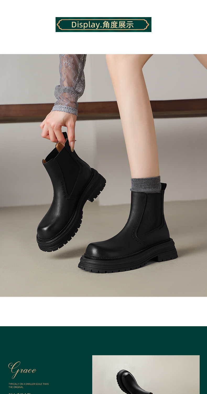 阿么手工女鞋学院风厚底切尔西靴4.5CM显瘦百搭2025新款真皮短靴
