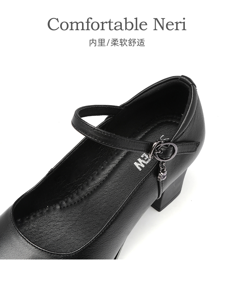 信诺牛皮旗袍模特走秀鞋女高跟鞋防水台女软底皮鞋一字扣粗跟单鞋20C3153-1