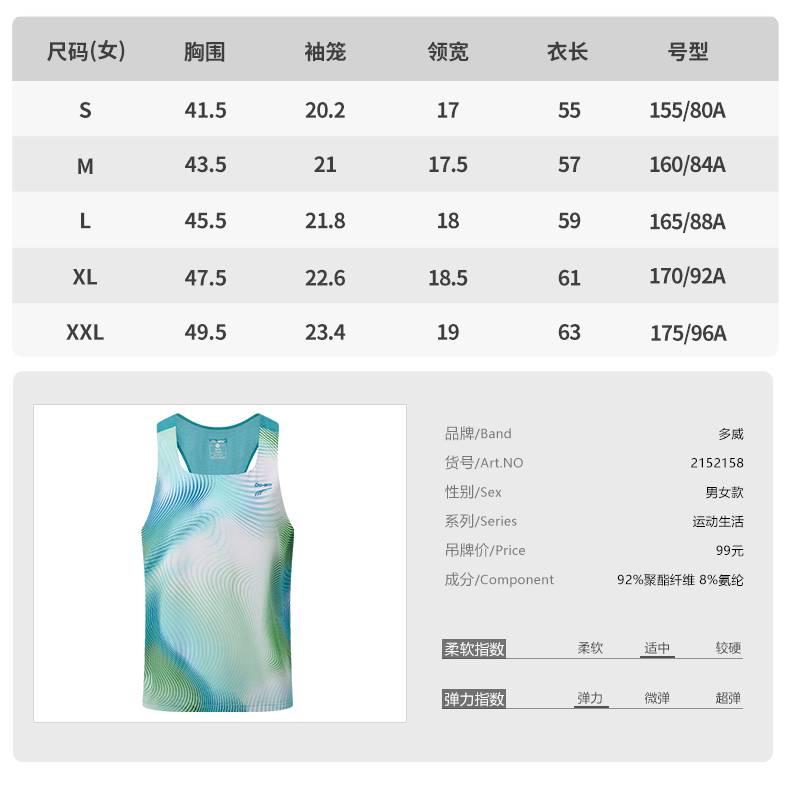 多威新款运动吸湿排汗速干男女跑步背心