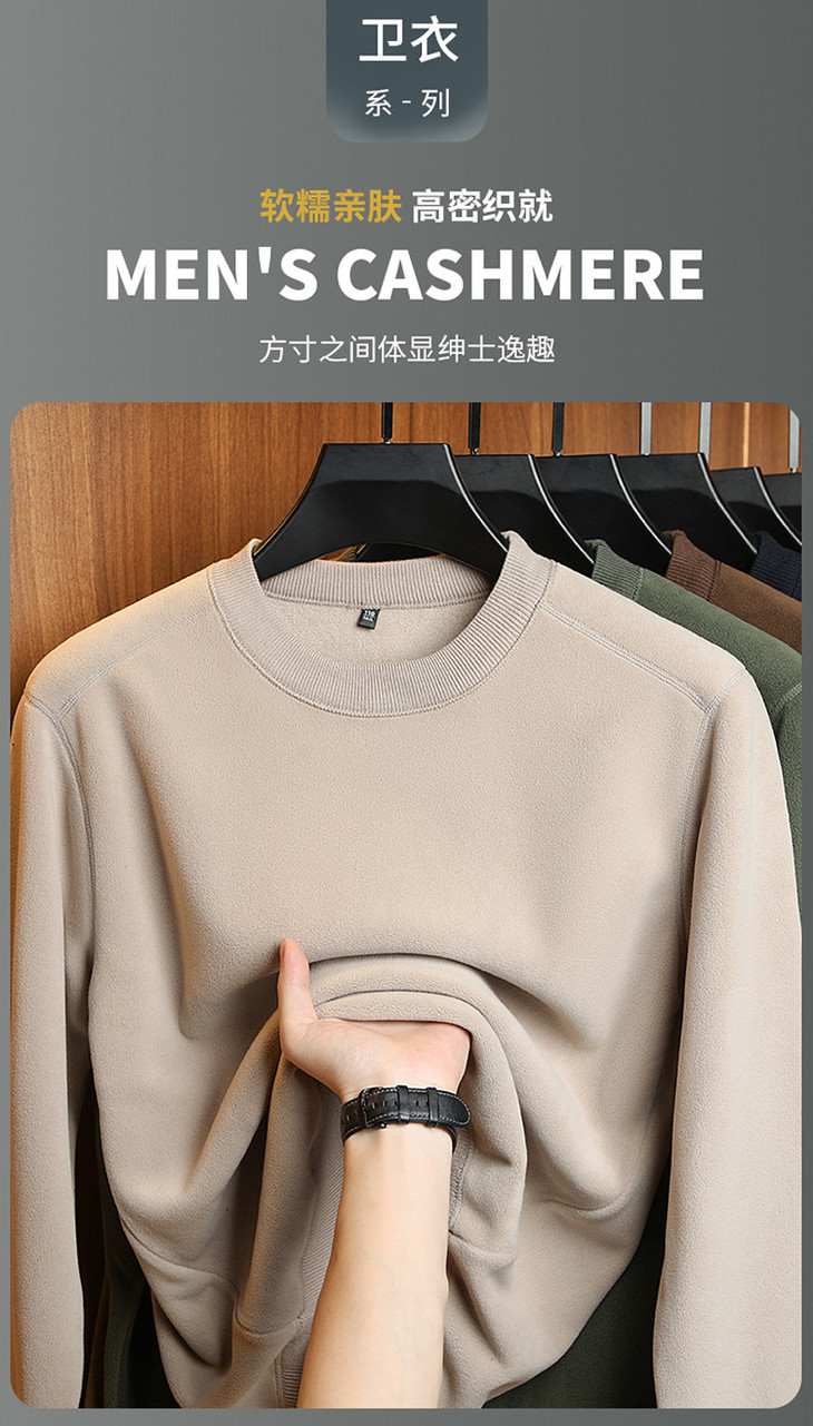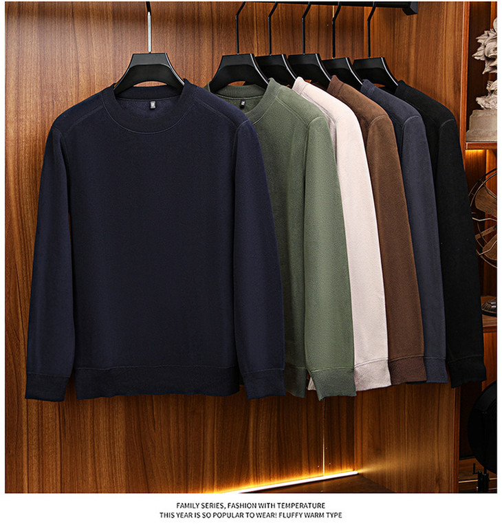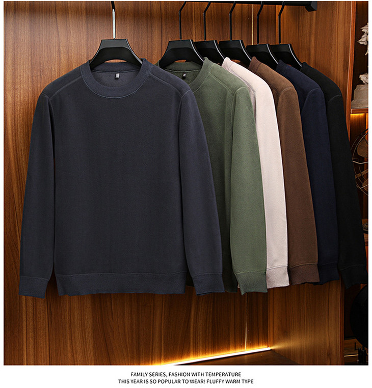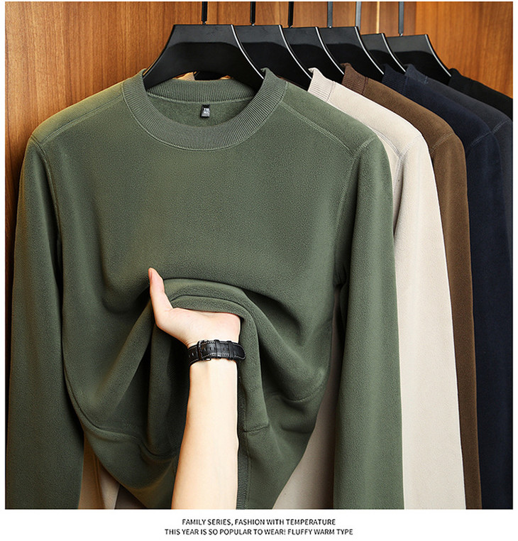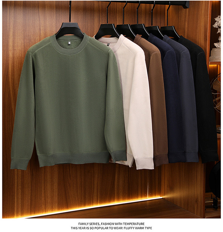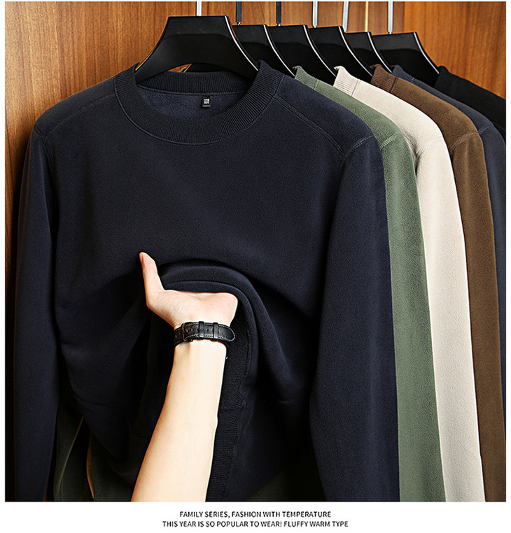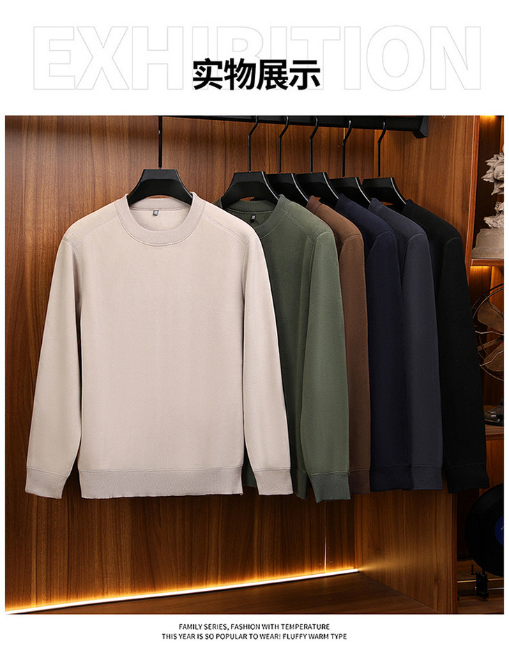 买1送1 男秋冬款纯色加绒加厚保暖打底衫380克双面奥粒绒圆领卫衣