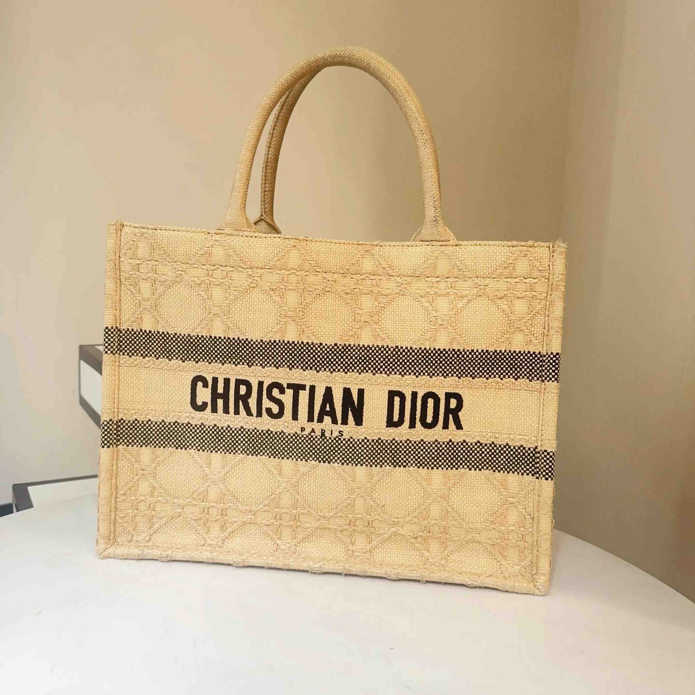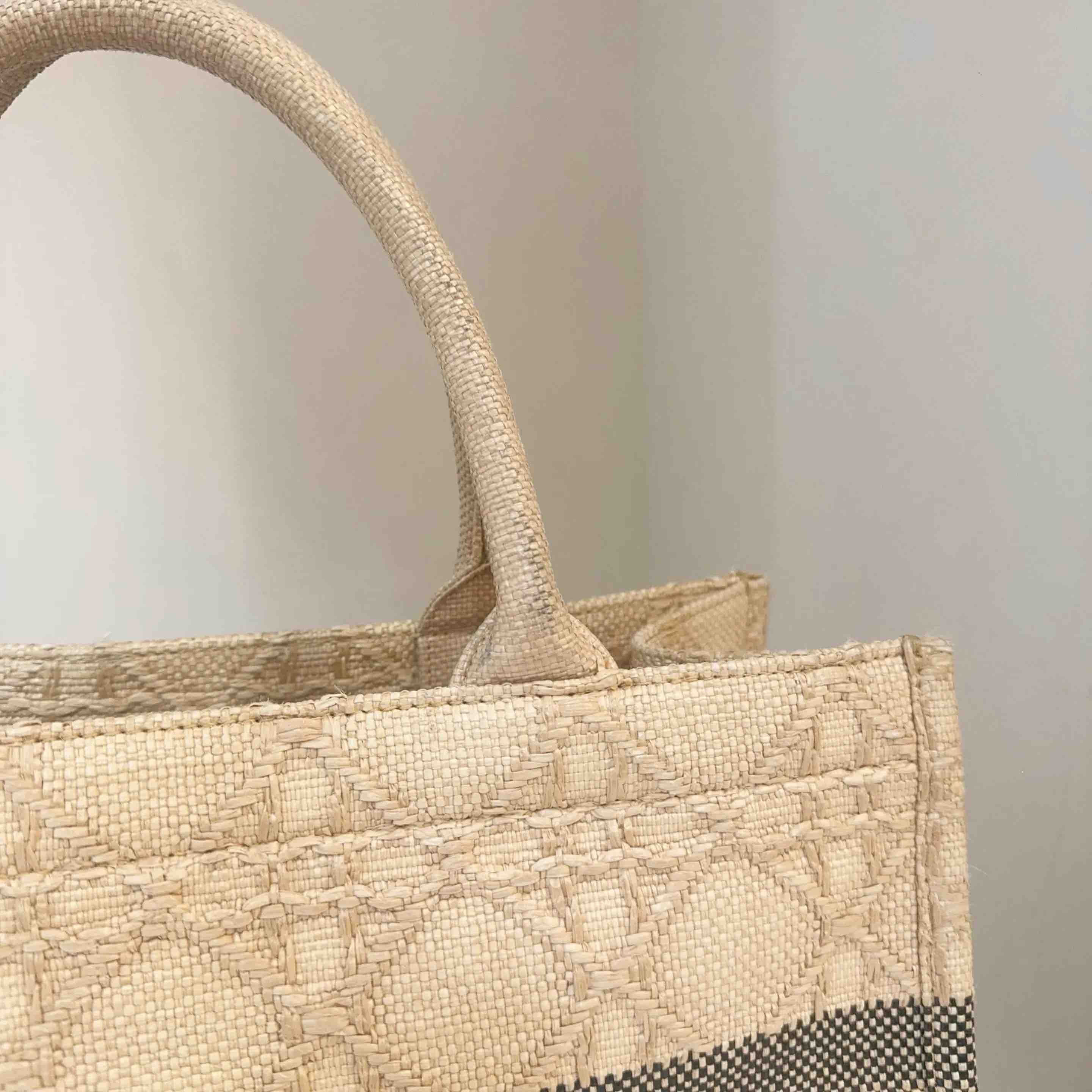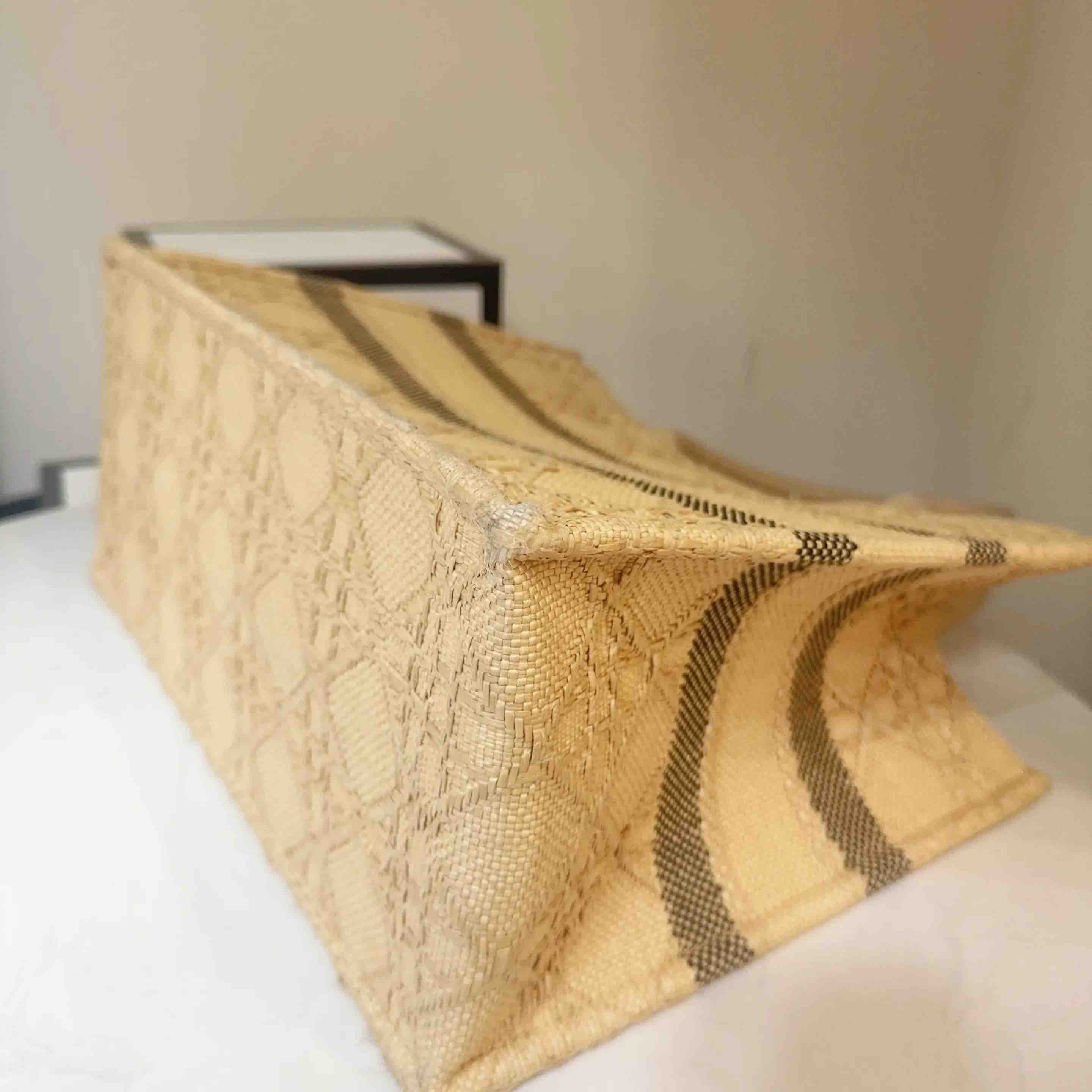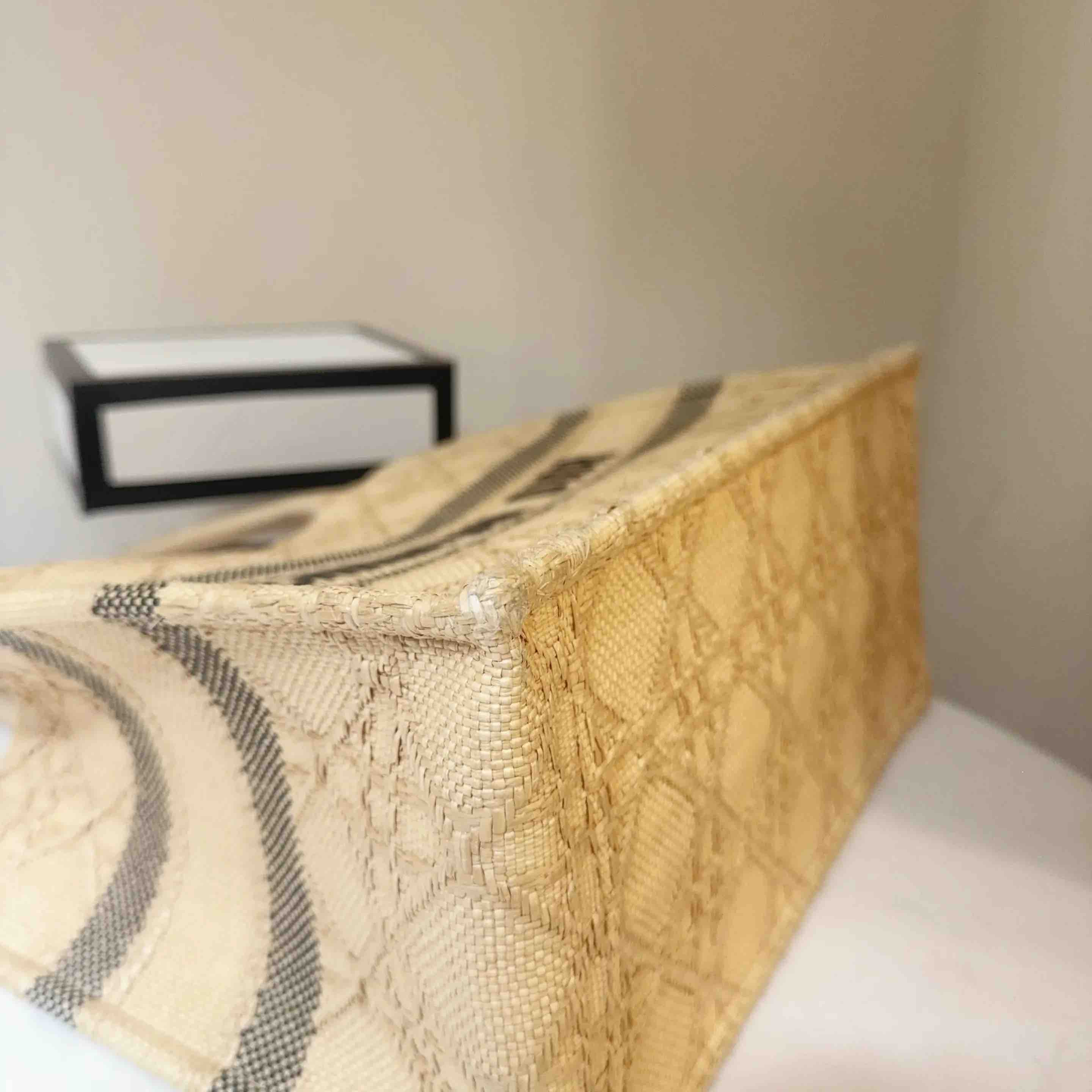【商品详情】正品二手 Dior booktote 中号 棕色 拉菲草 藤编 托特包🎣95新 26*27。边角正常使用感。度假风