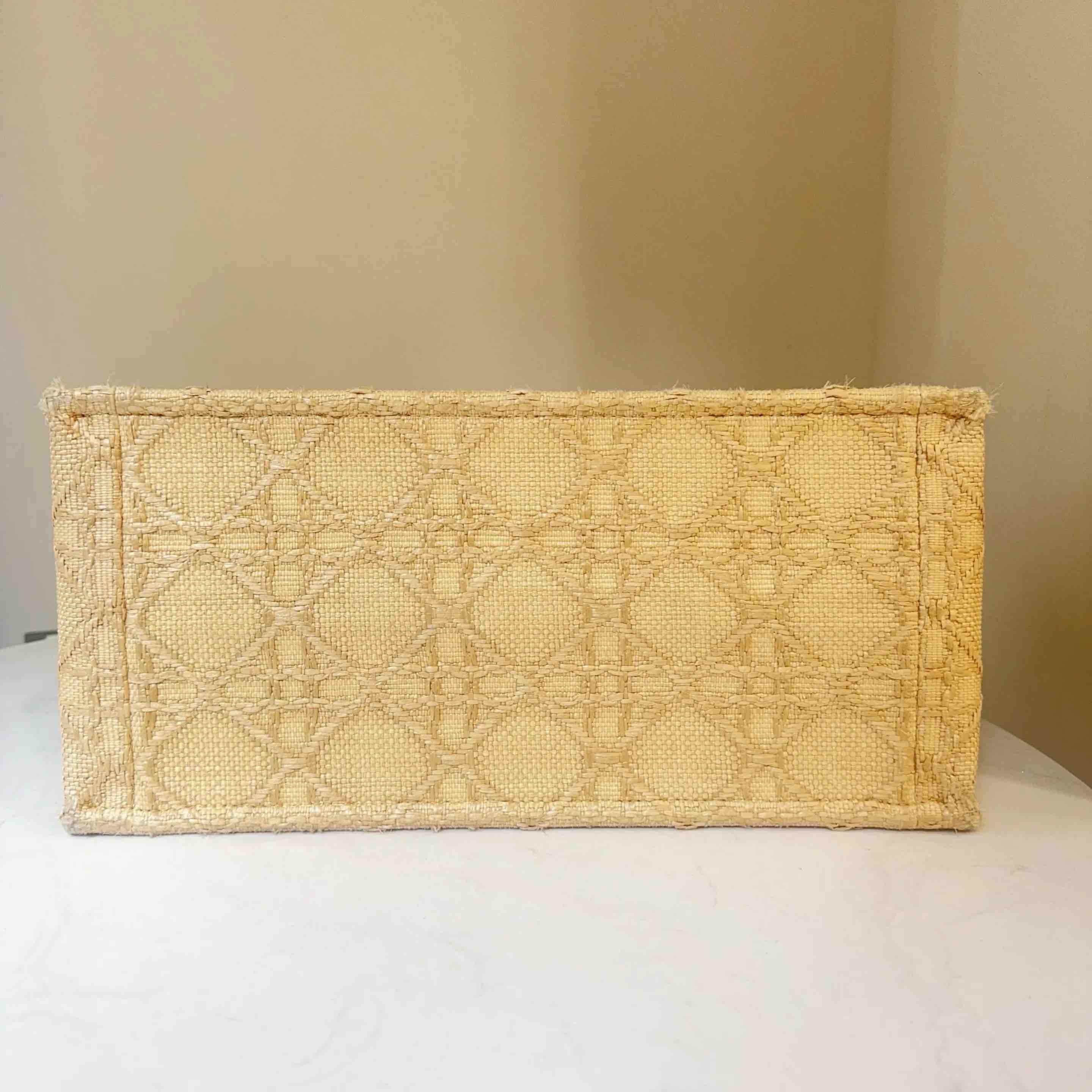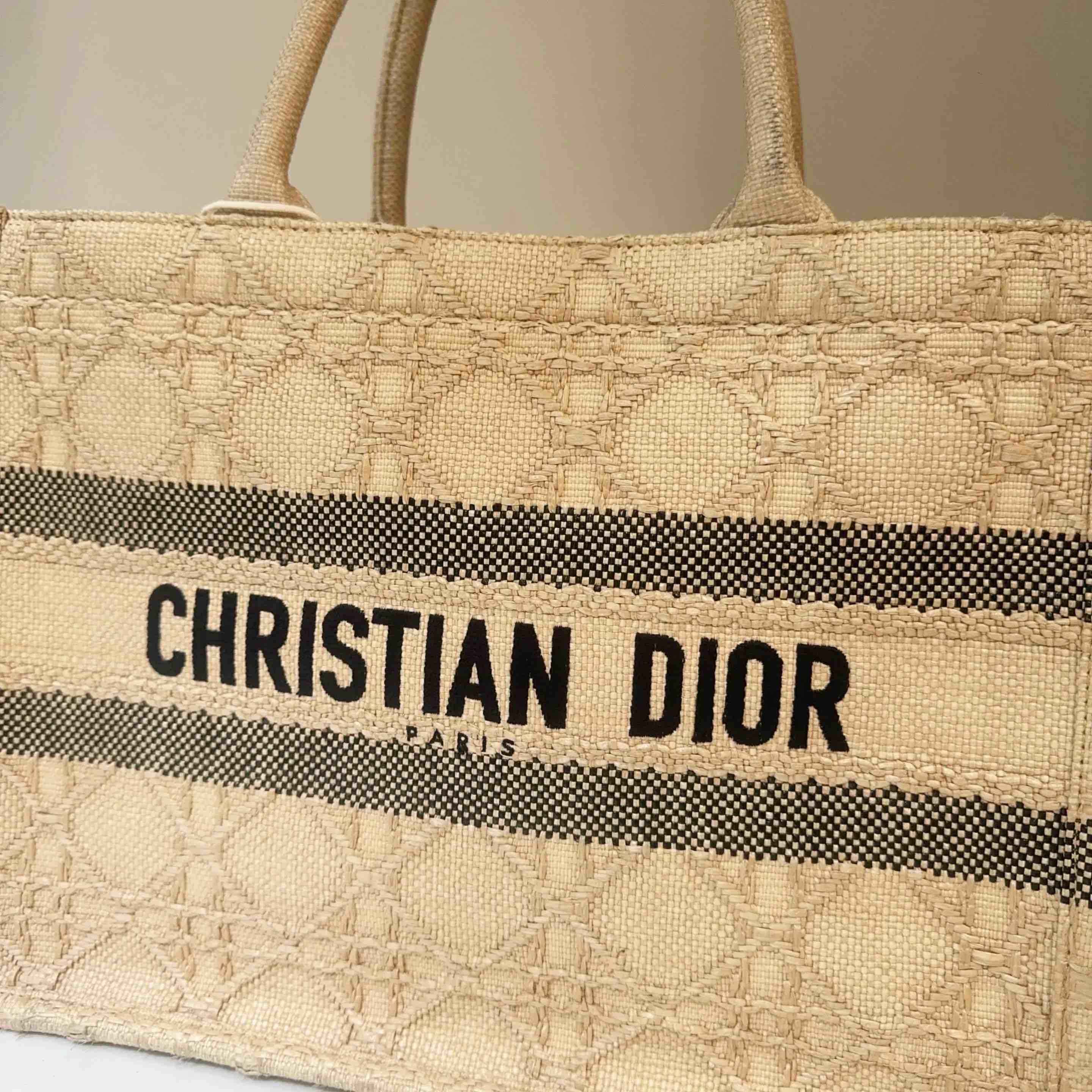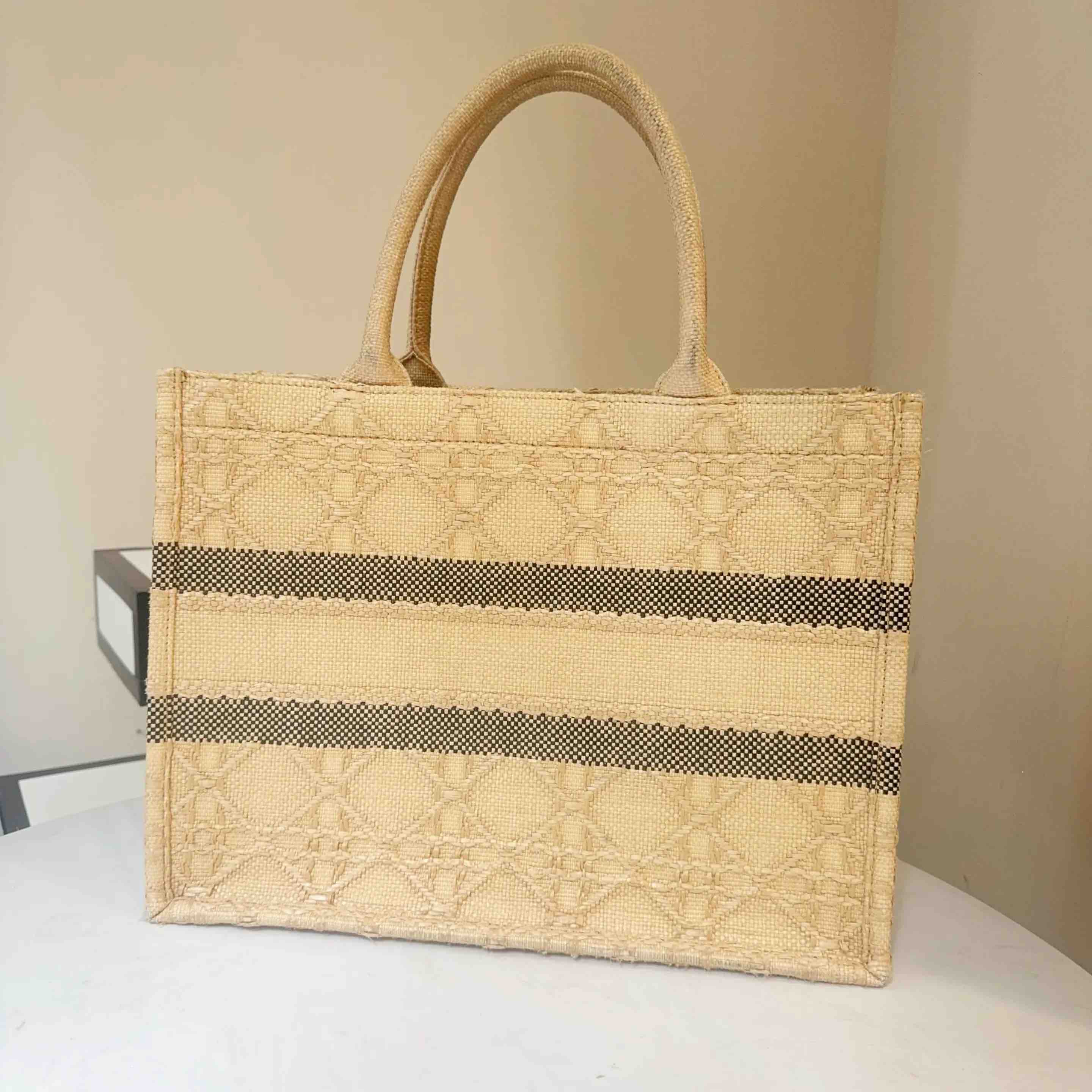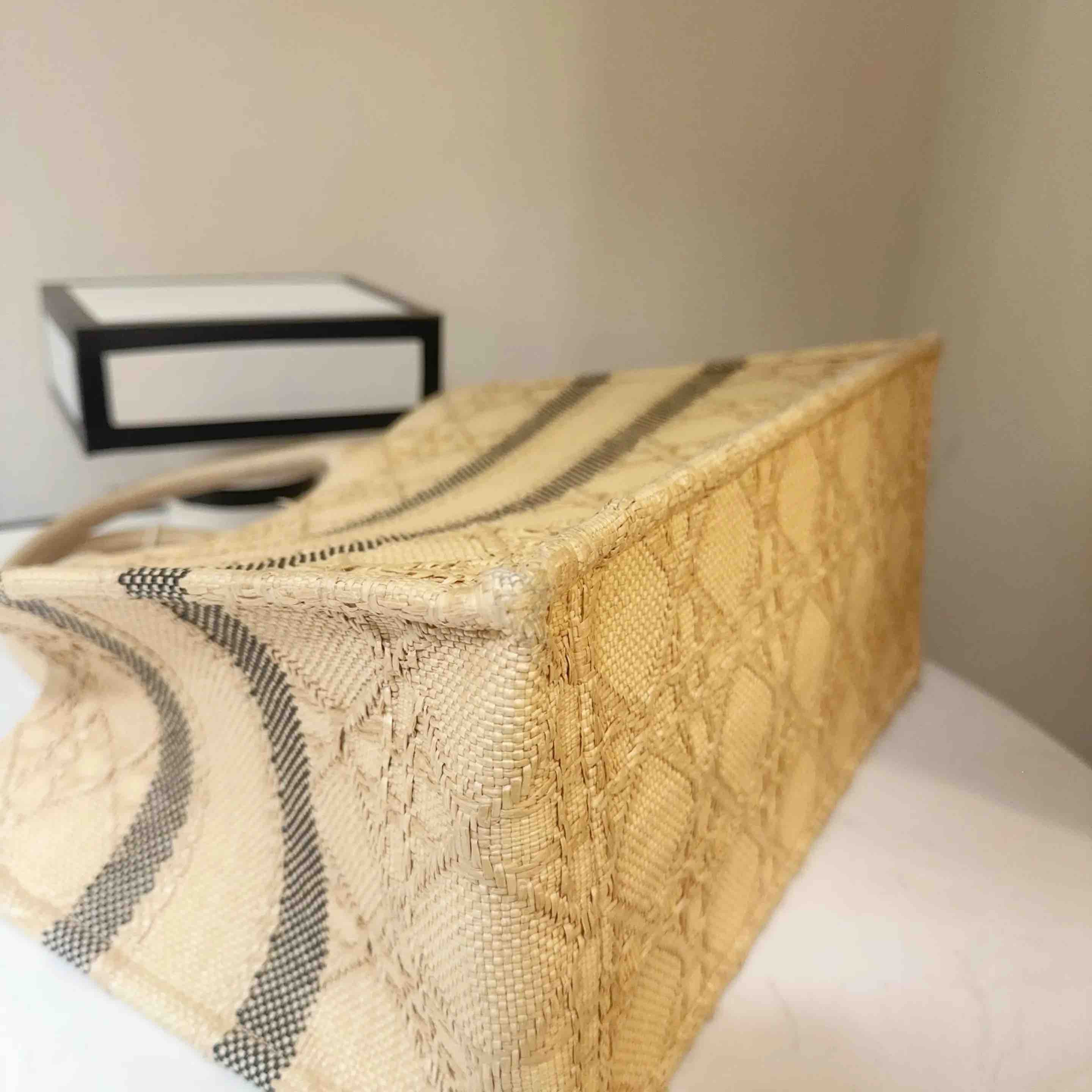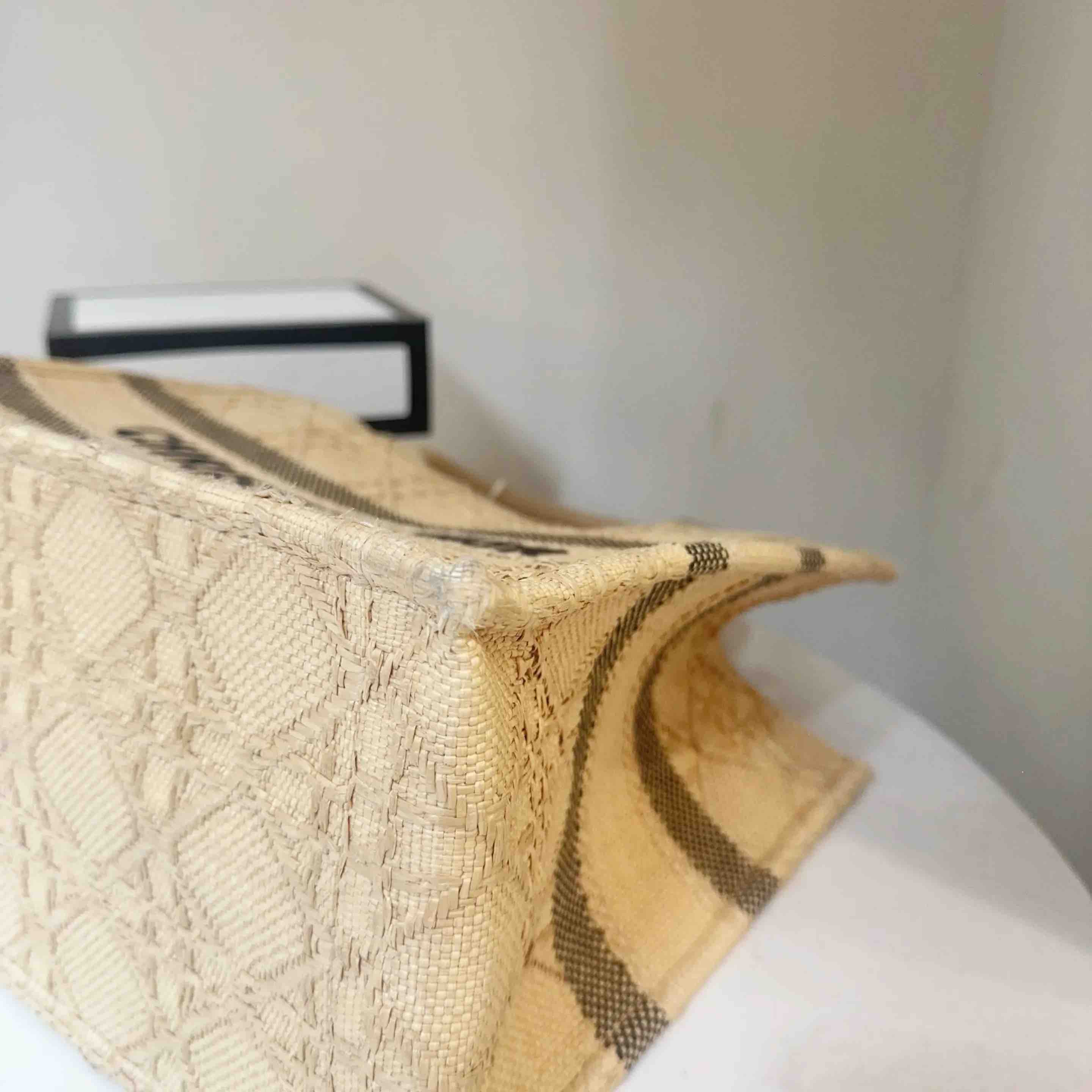 【商品详情】正品二手 Dior booktote 中号 棕色 拉菲草 藤编 托特包🎣95新 26*27。边角正常使用感。度假风