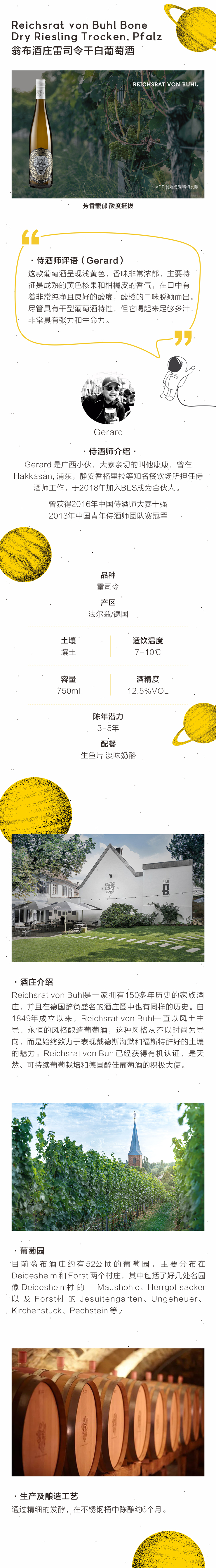 德国翁布酒庄雷司令干白葡萄酒 2020 Reichsrat von Buhl Bone Dry Riesling Trocken, Pfalz
