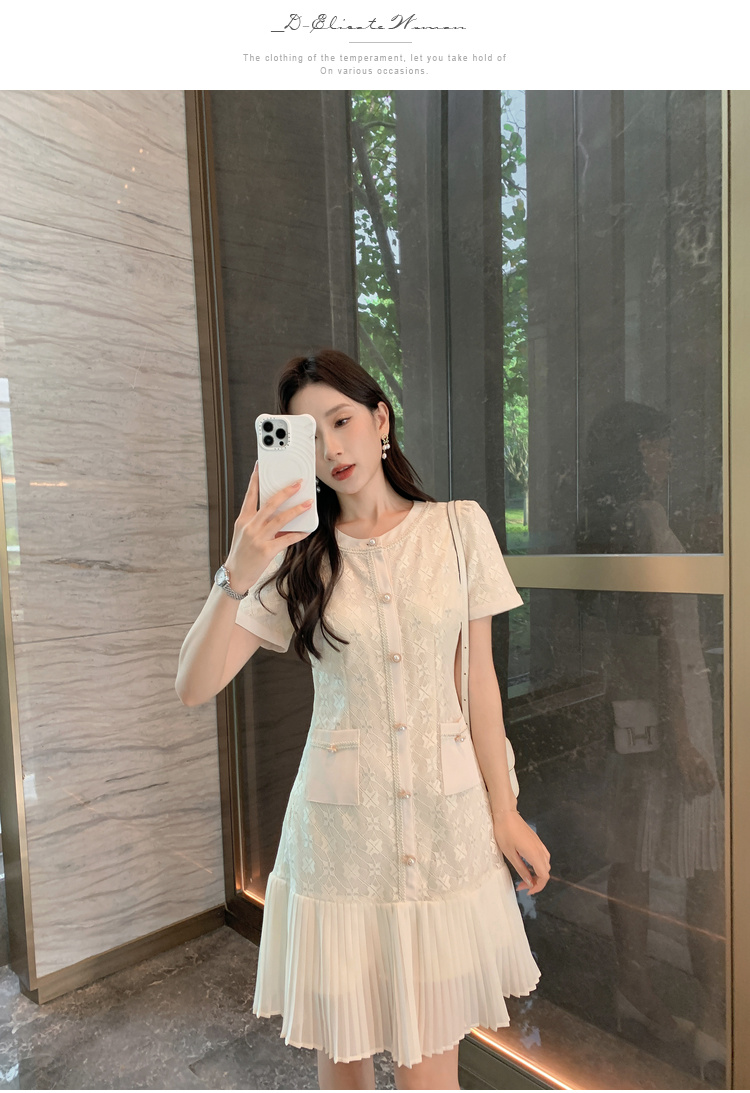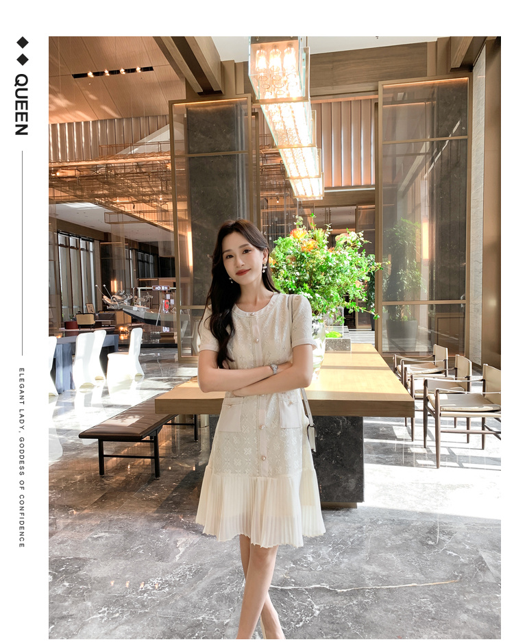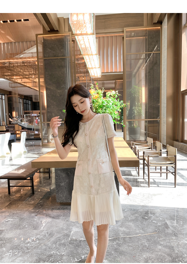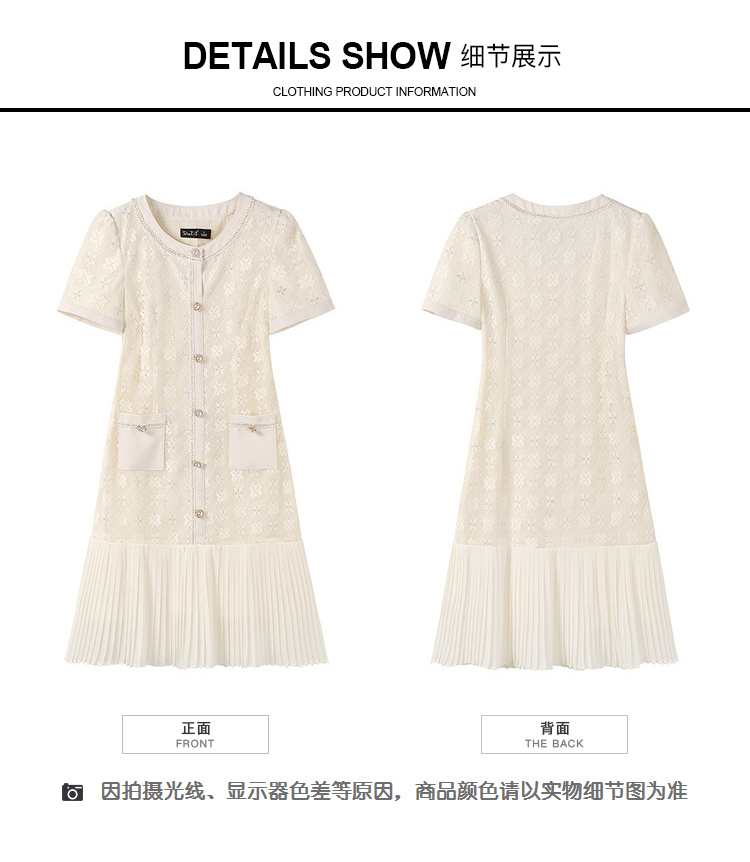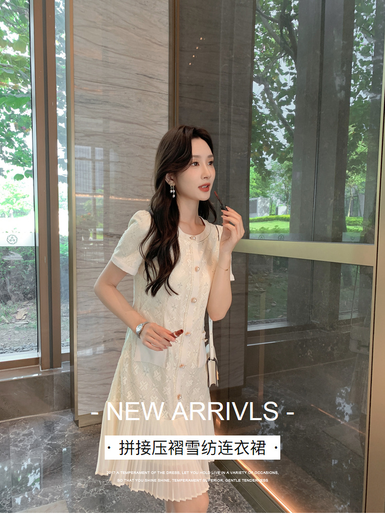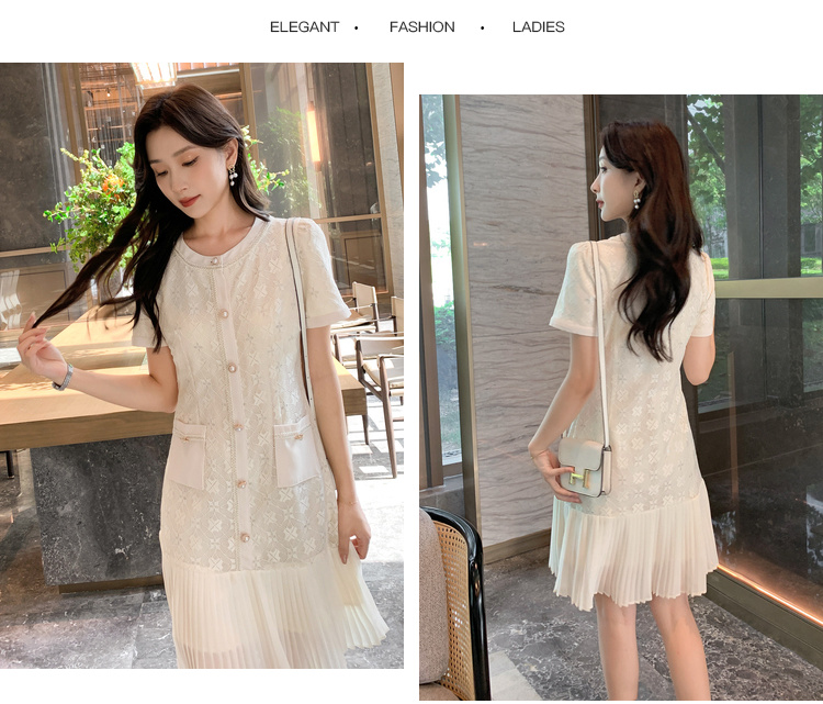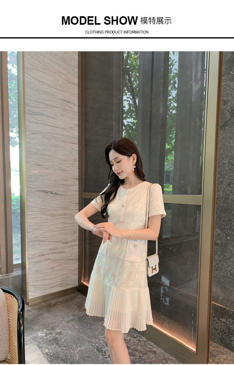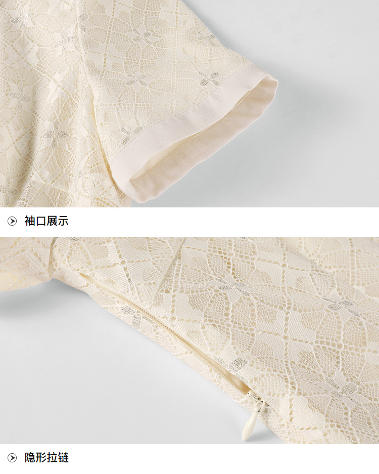 [奢姿轻奢系列]压褶雪纺连衣裙大码女装夏季新款胖妹妹蕾丝裙子8942890058【1】