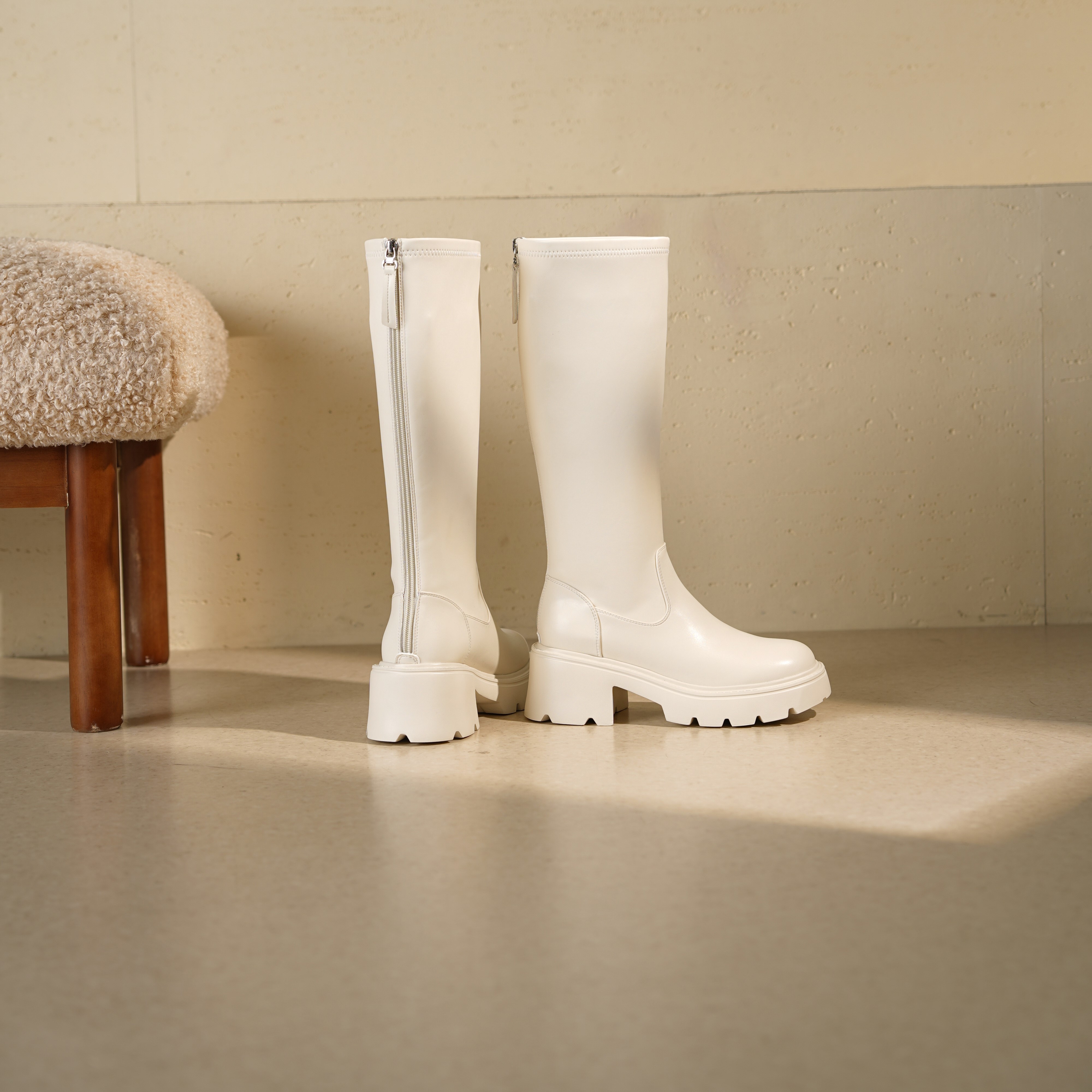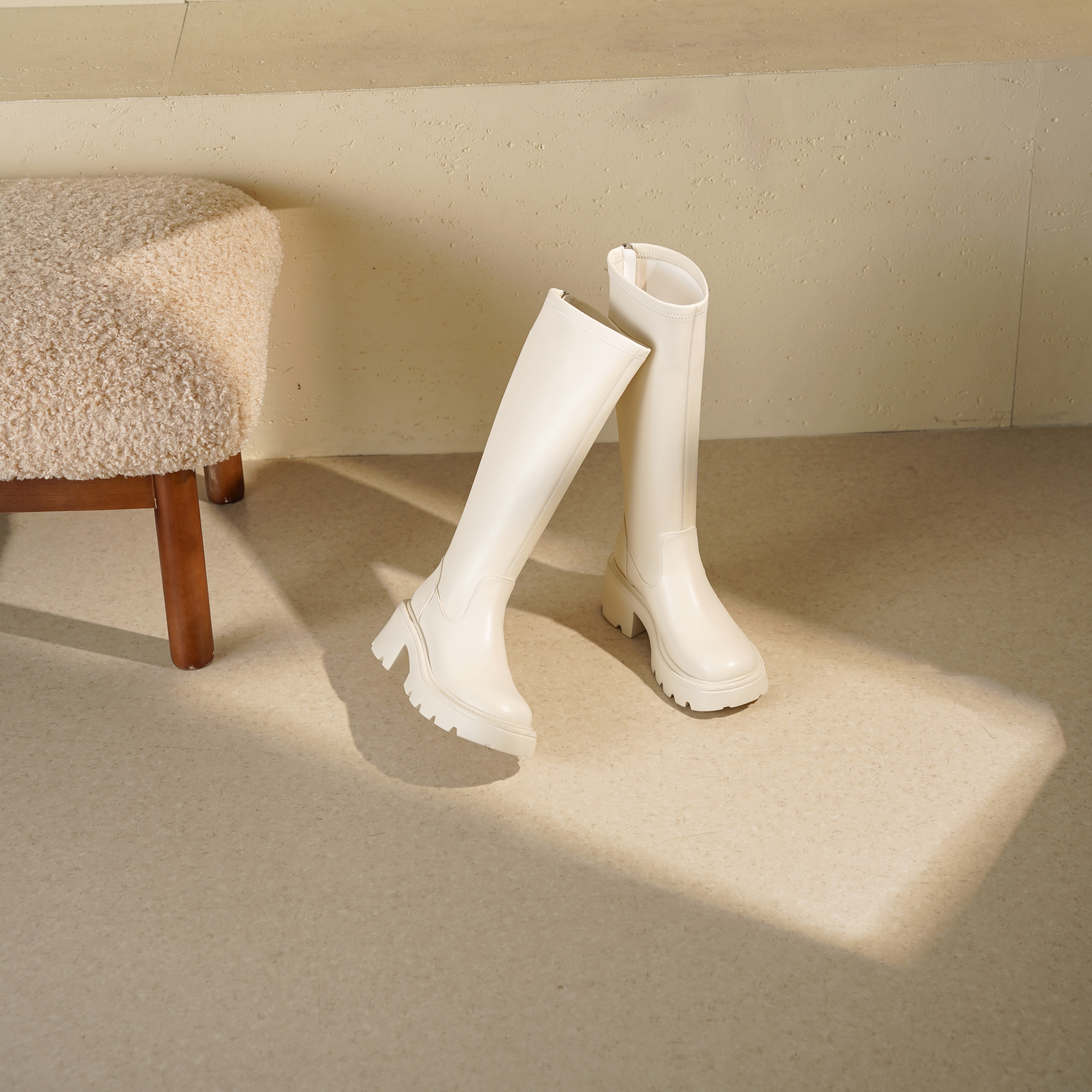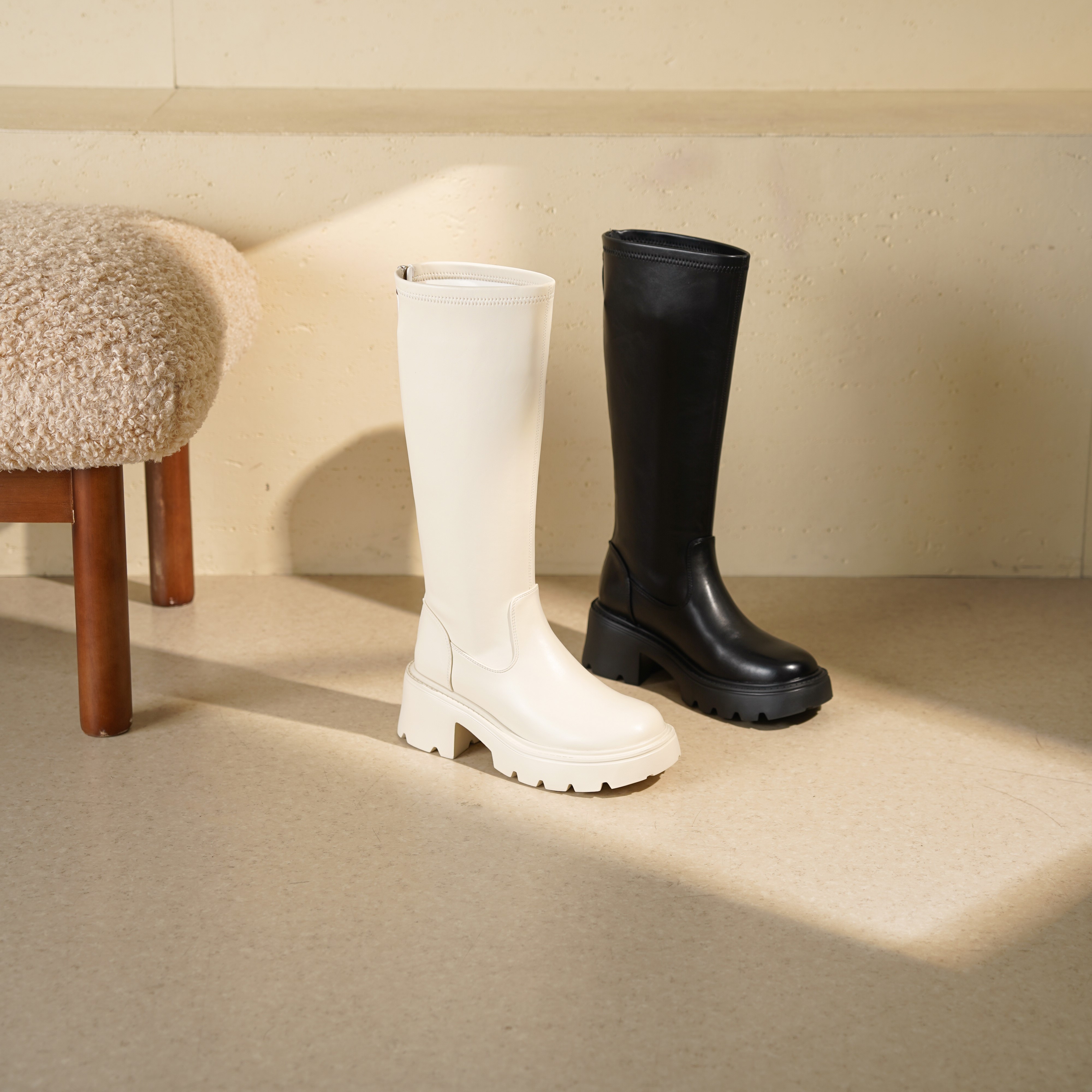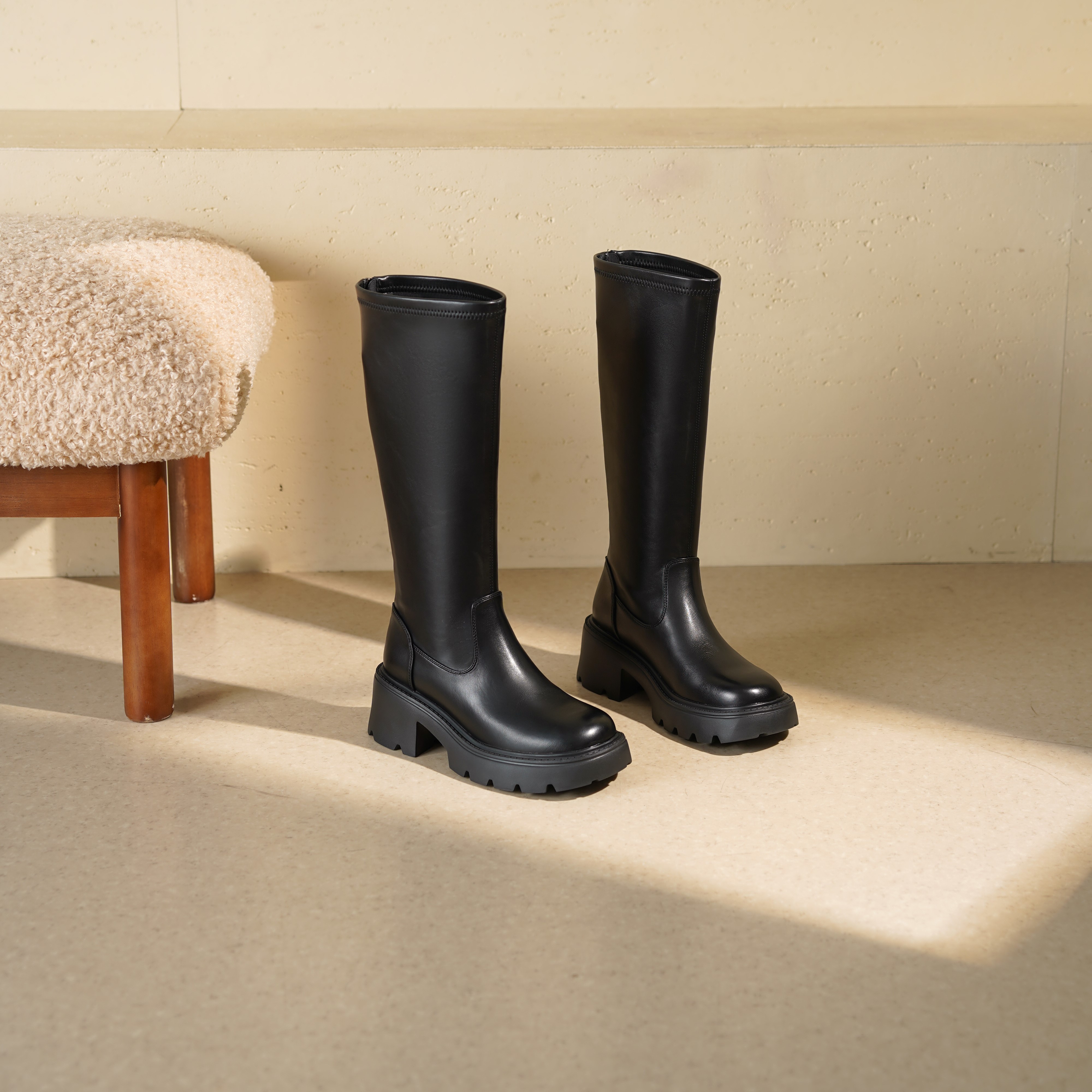西村名物2025年冬季新款舒适百搭粗跟显高骑士靴不过膝高筒靴T25DQ49601