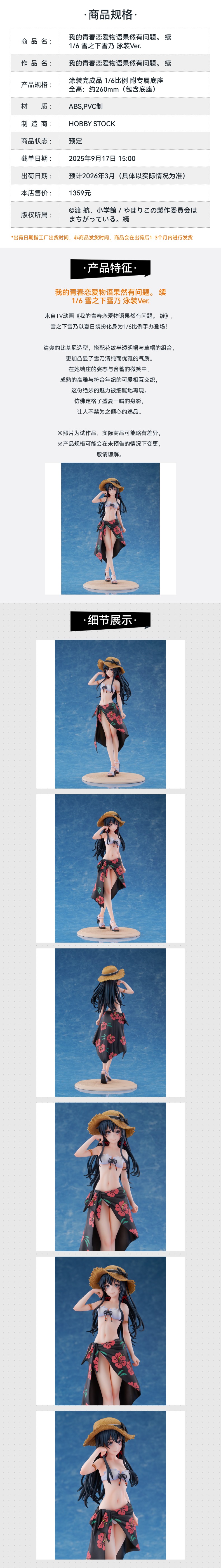 【GSC预售定金】 1/6标准比例 雪之下雪乃 泳装Ver. 手办模玩 我的青春恋爱物语果然有问题。 续