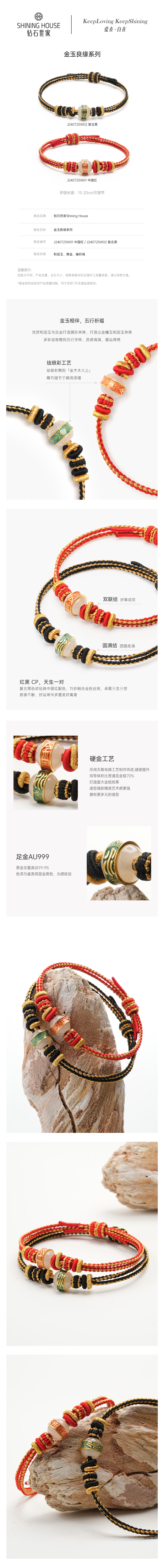 【定价黄金】【限时8折】【现货】钻石世家 足金和田玉手绳 情侣手绳 金玉良缘520手串手绳手链