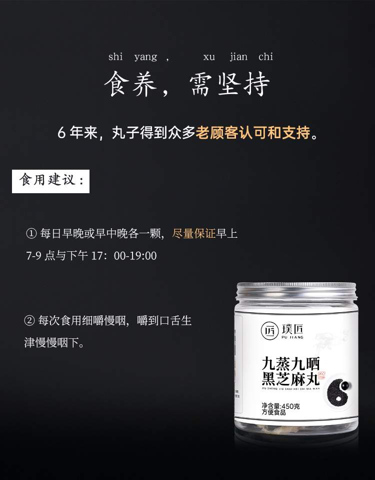 九蒸九晒黑芝麻丸子道家辟谷手工制作男女蜂蜜丸子45粒*10g装正品