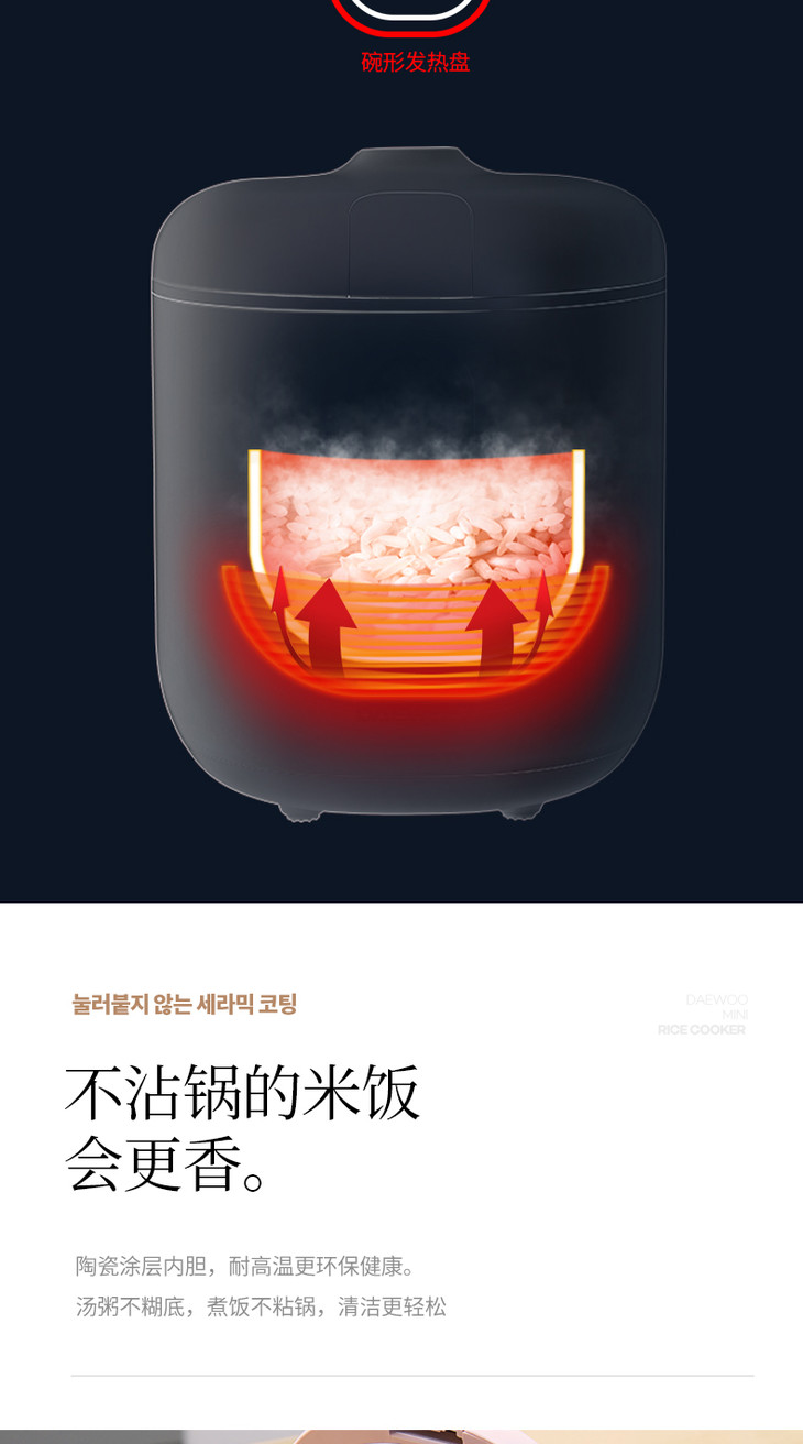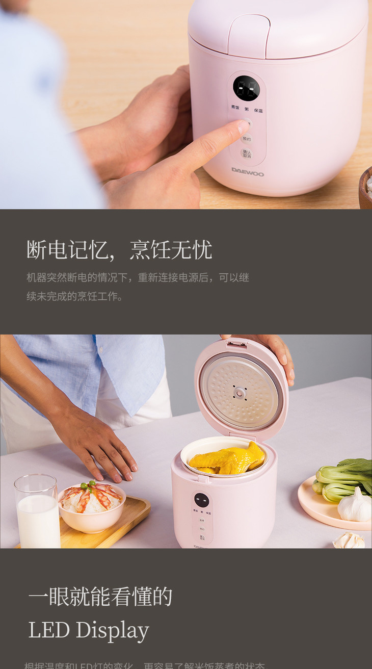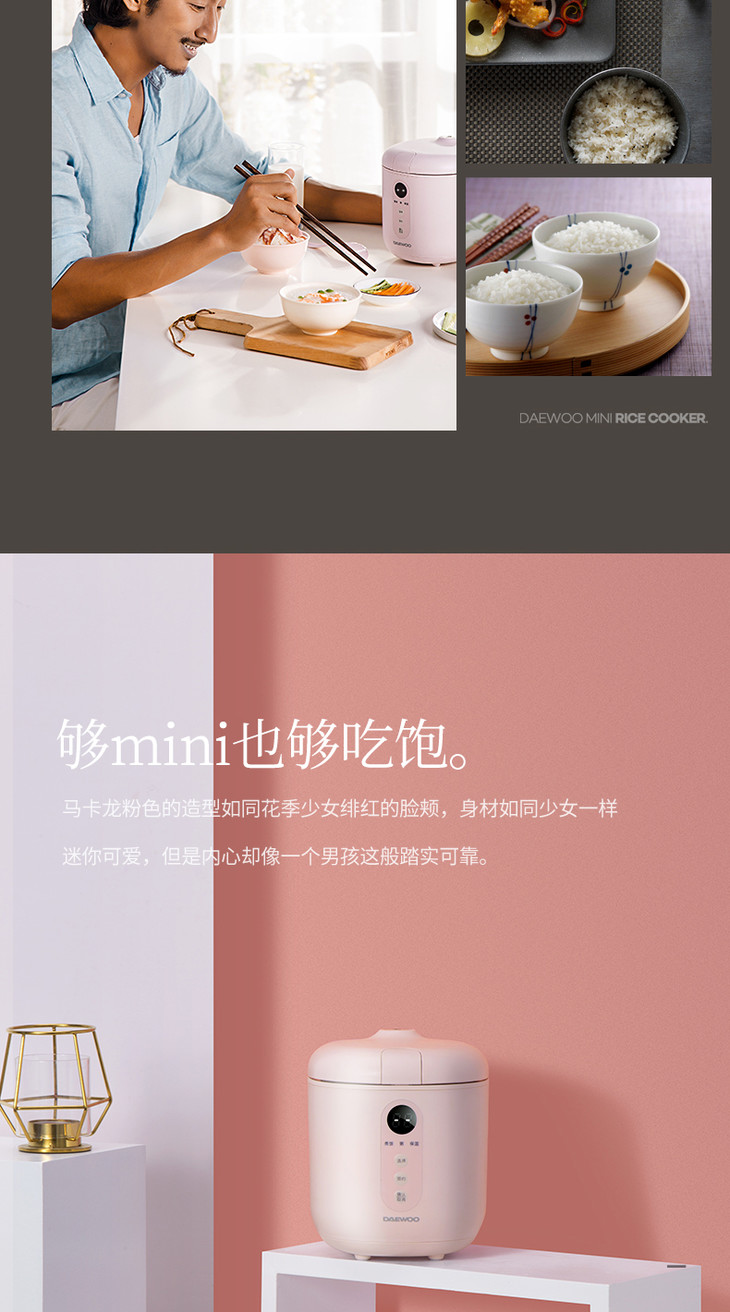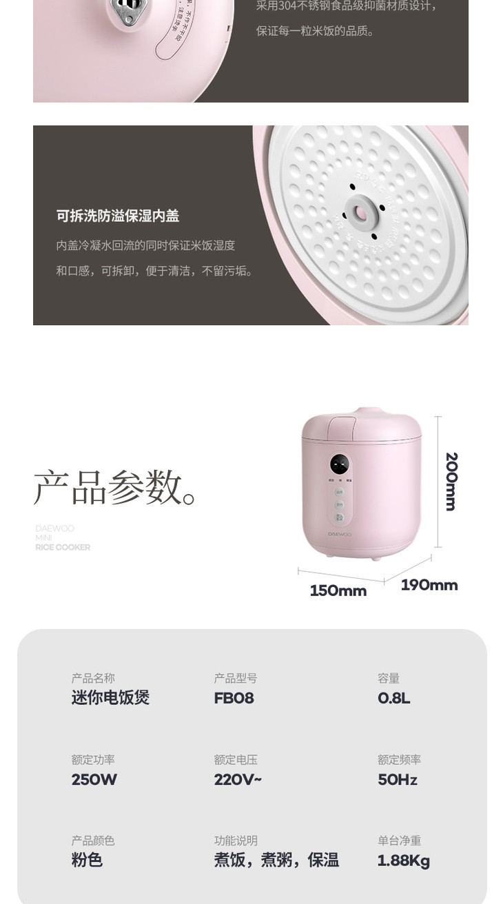 【大宇】韩国大宇0.8升迷你电饭煲小型家用单人母婴便携宿舍1人宝宝粥锅FB08