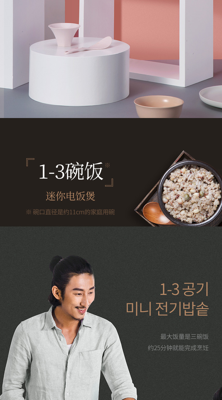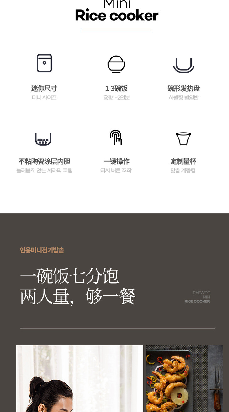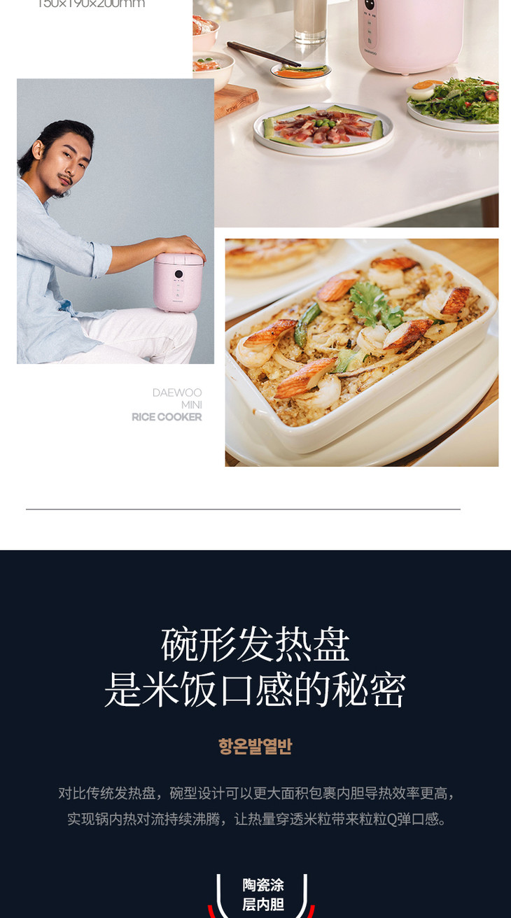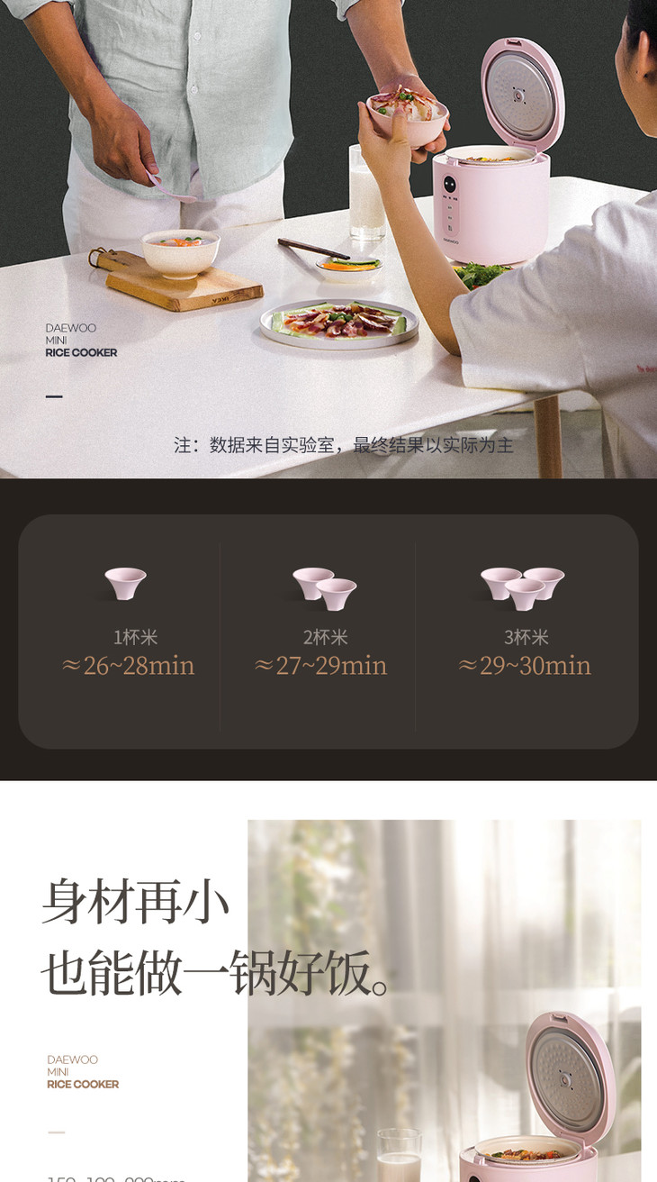 【大宇】韩国大宇0.8升迷你电饭煲小型家用单人母婴便携宿舍1人宝宝粥锅FB08