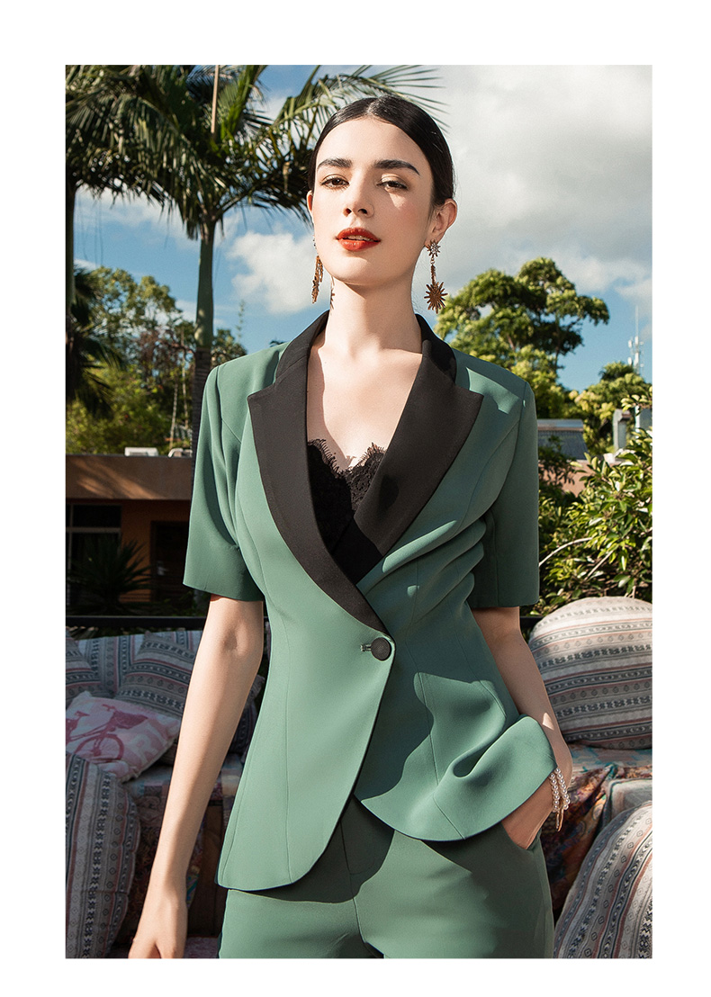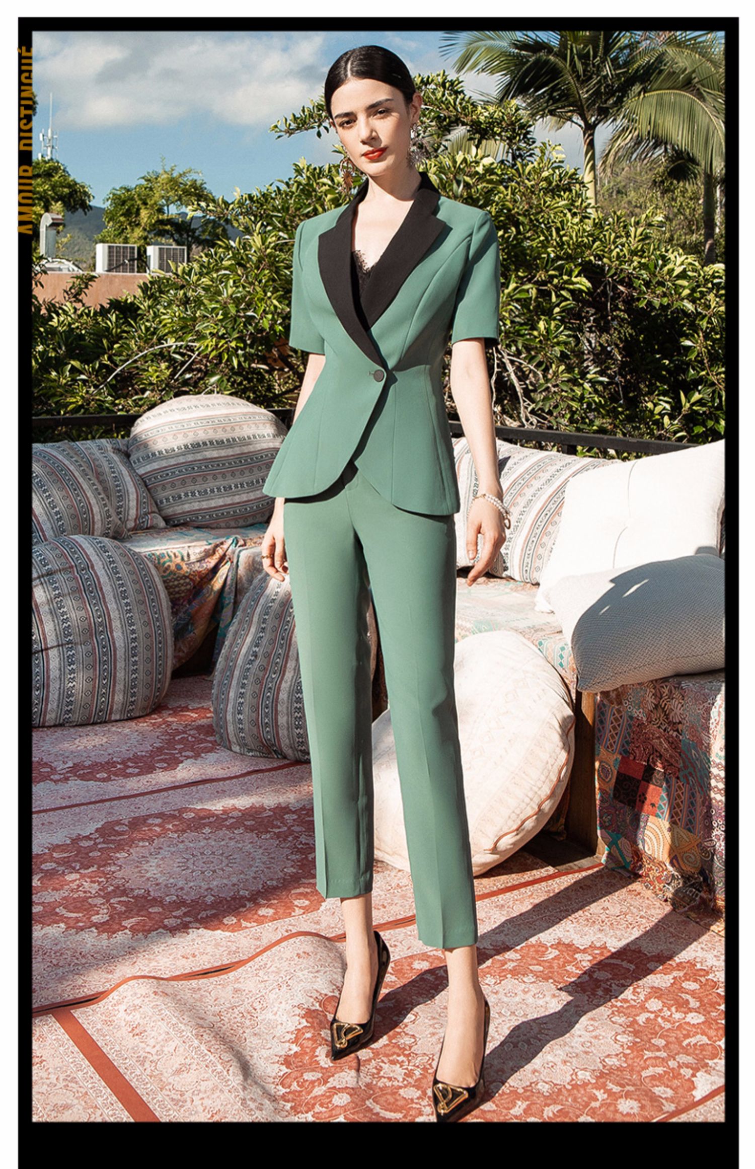 IWY/直播福利款 新品绿色短袖西装裤子半裙套装CP1305
